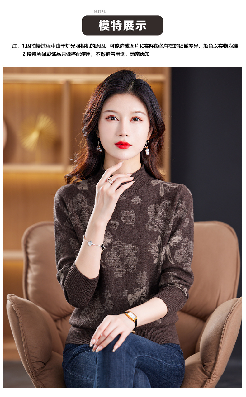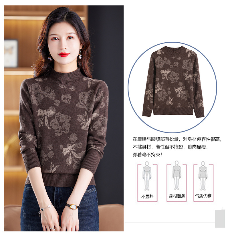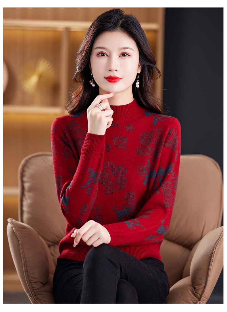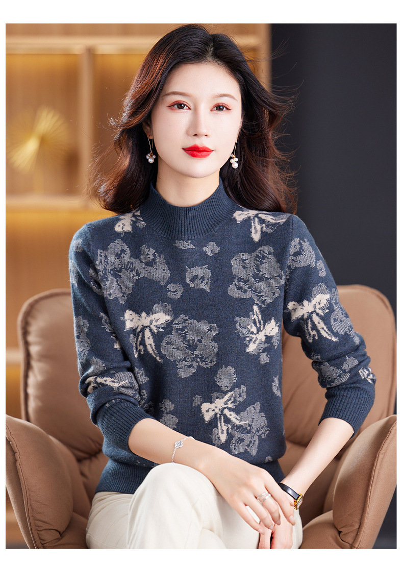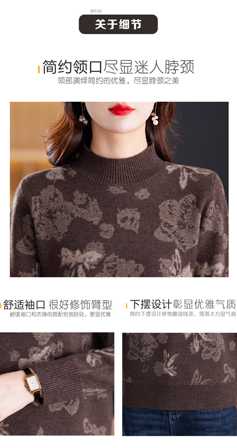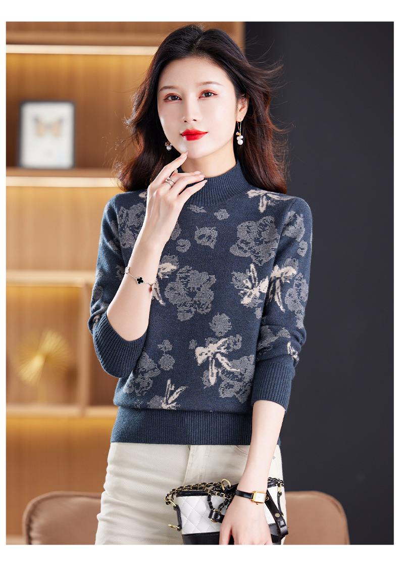 半高领国风印花女士毛衣,秋冬新款时尚简约内搭针织打底衫上衣CC-89-62001
