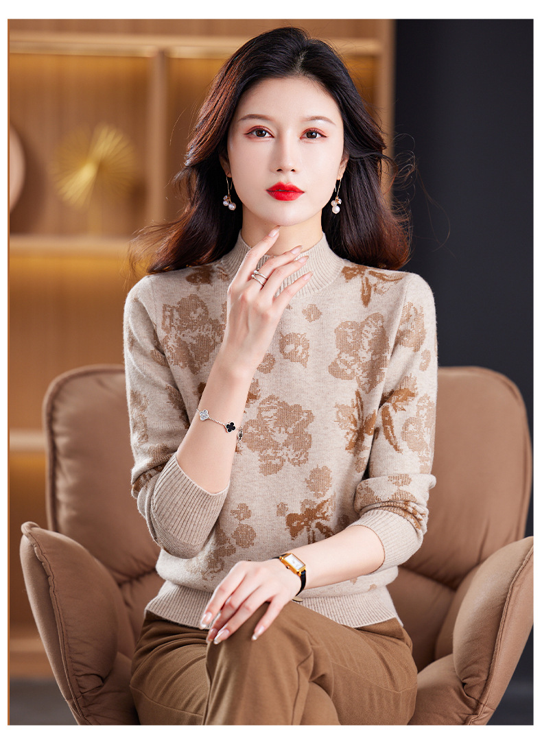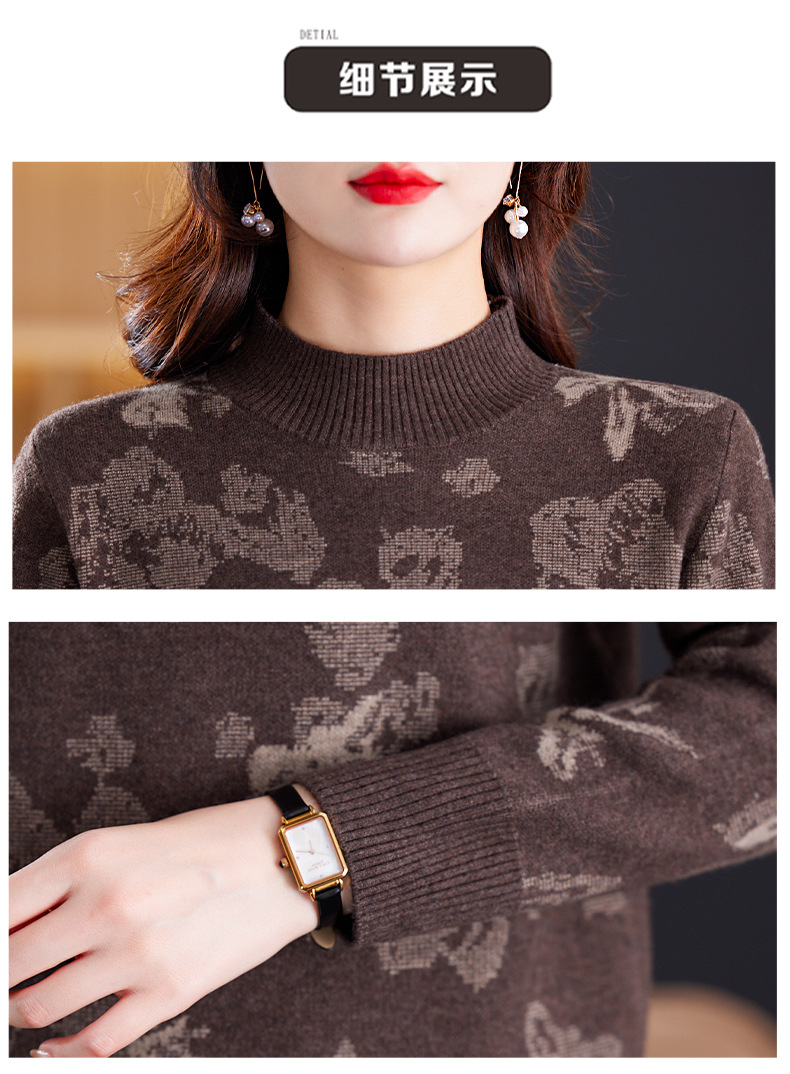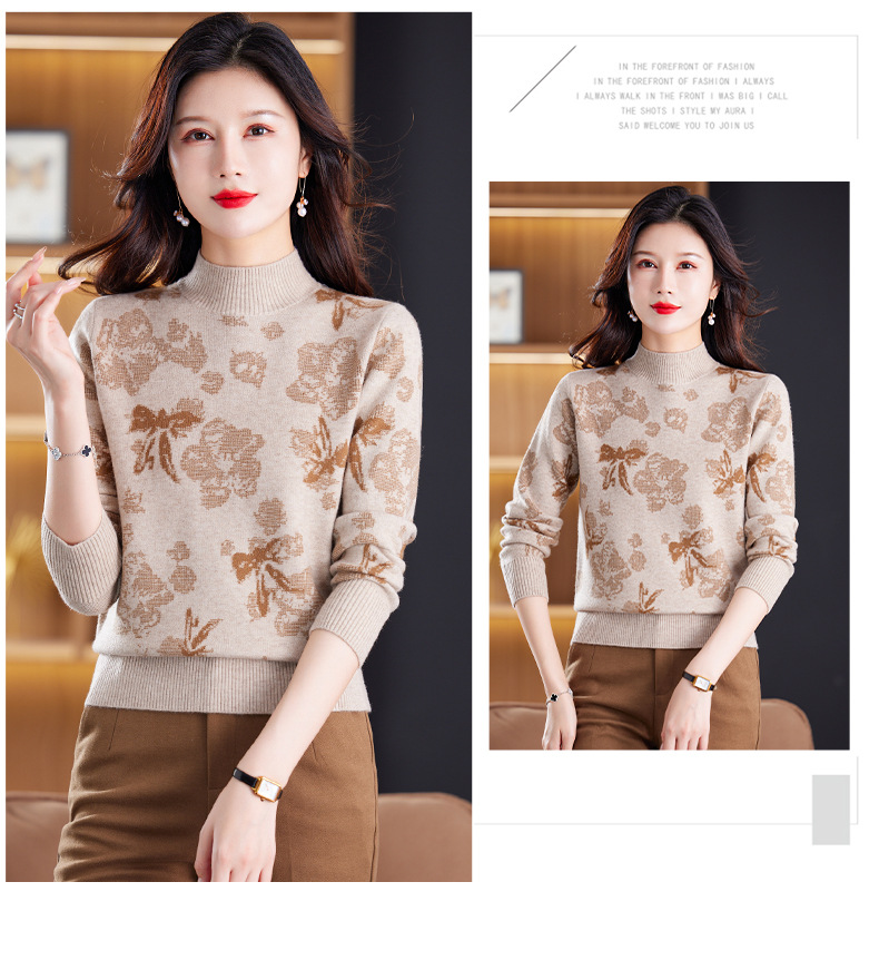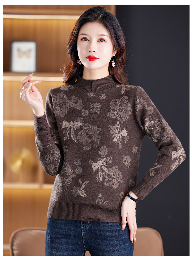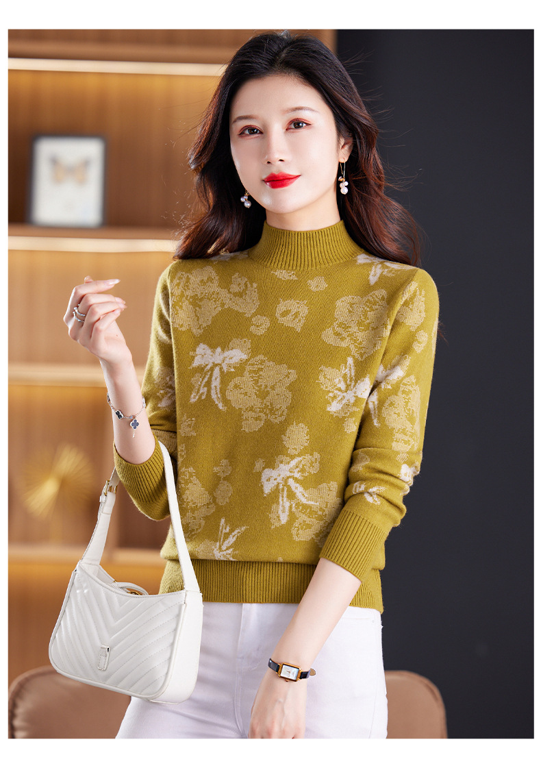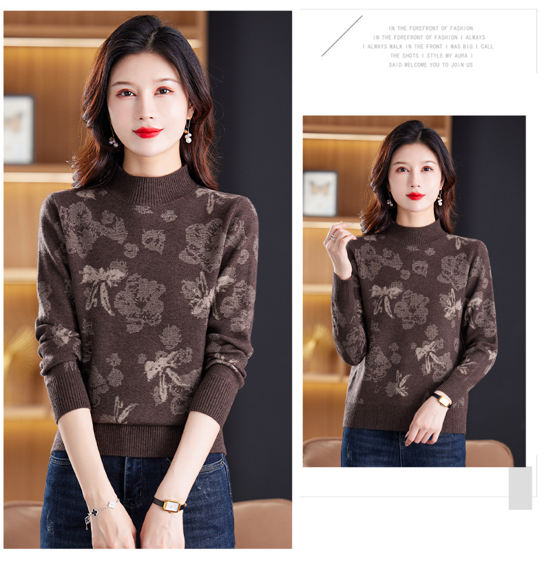 半高领国风印花女士毛衣,秋冬新款时尚简约内搭针织打底衫上衣CC-89-62001