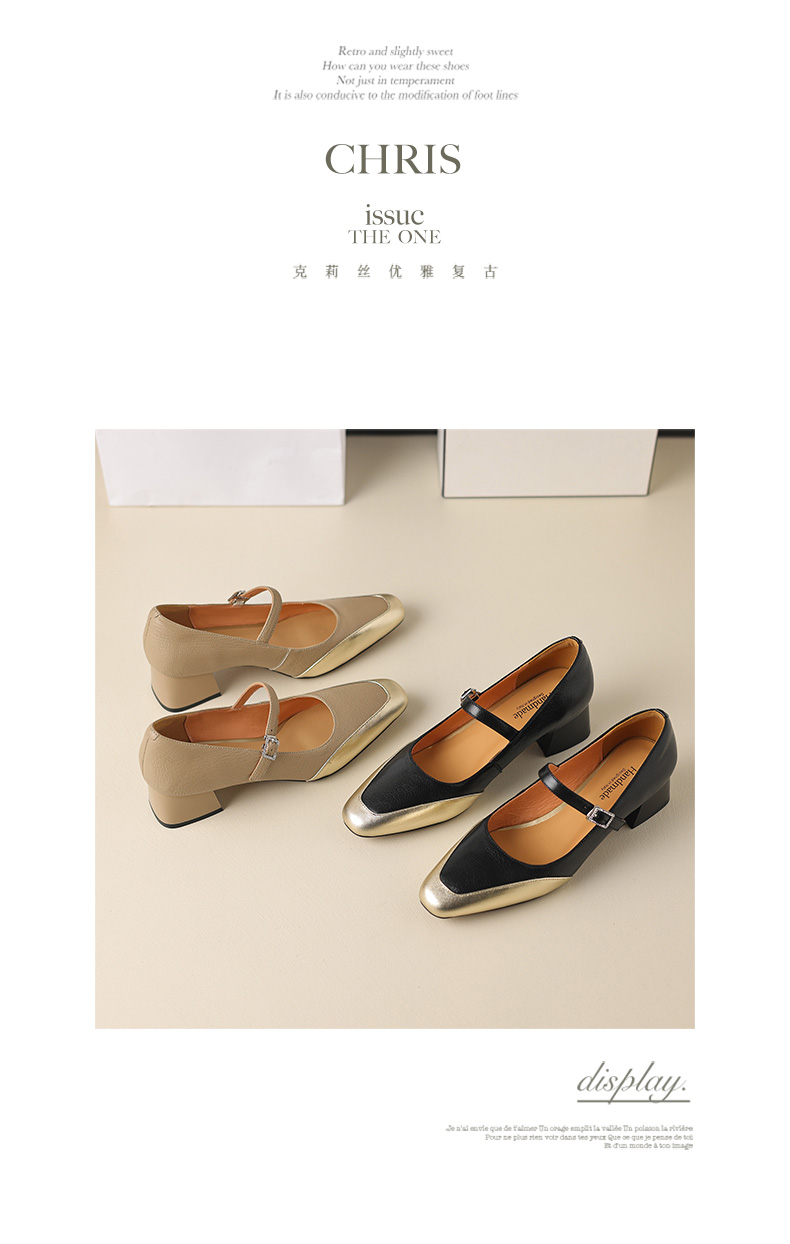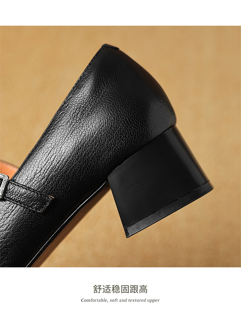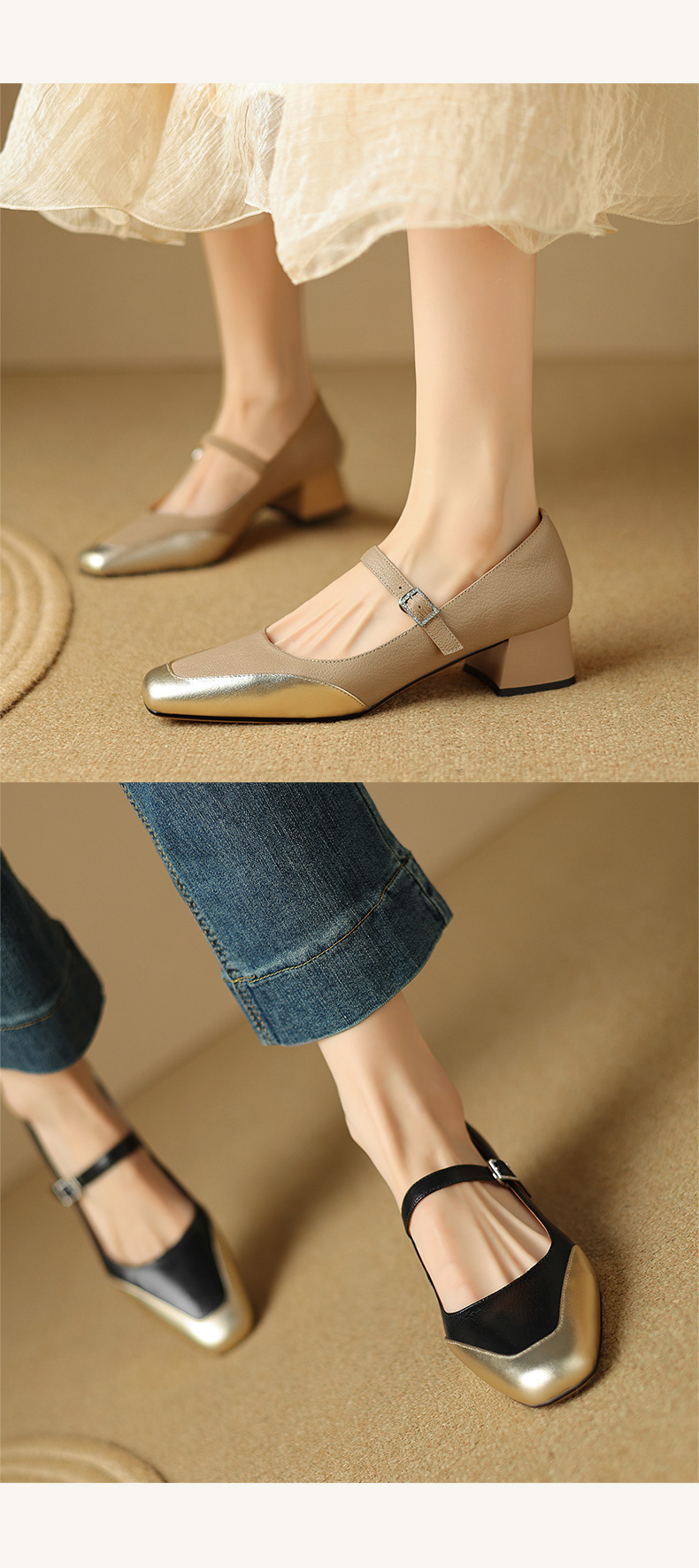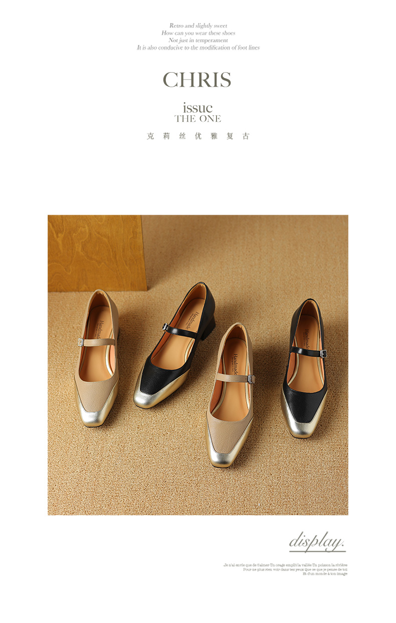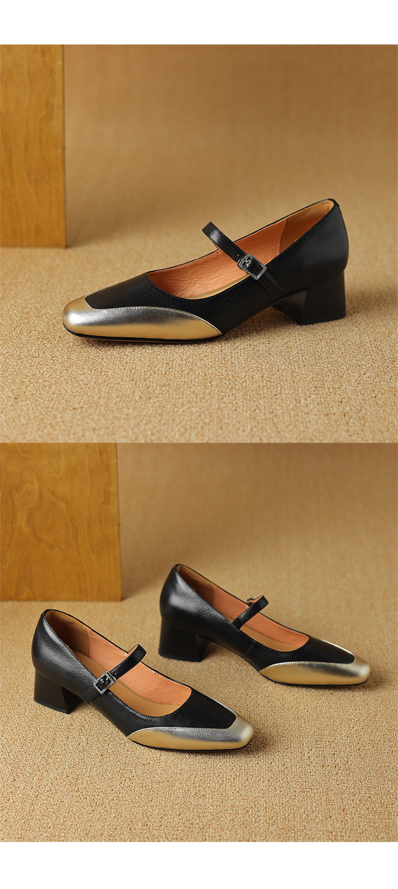【预售5天】春夏新款,拼接粗跟时尚全皮单鞋LD&6711