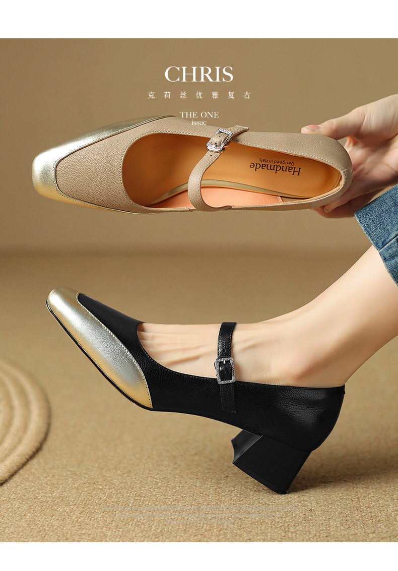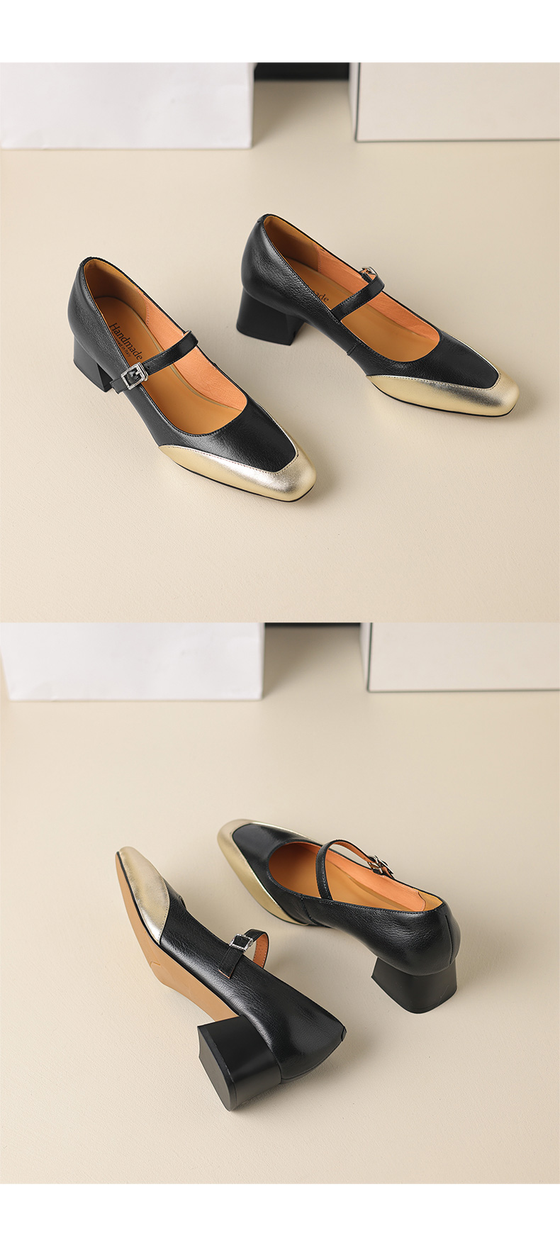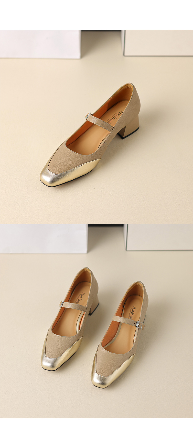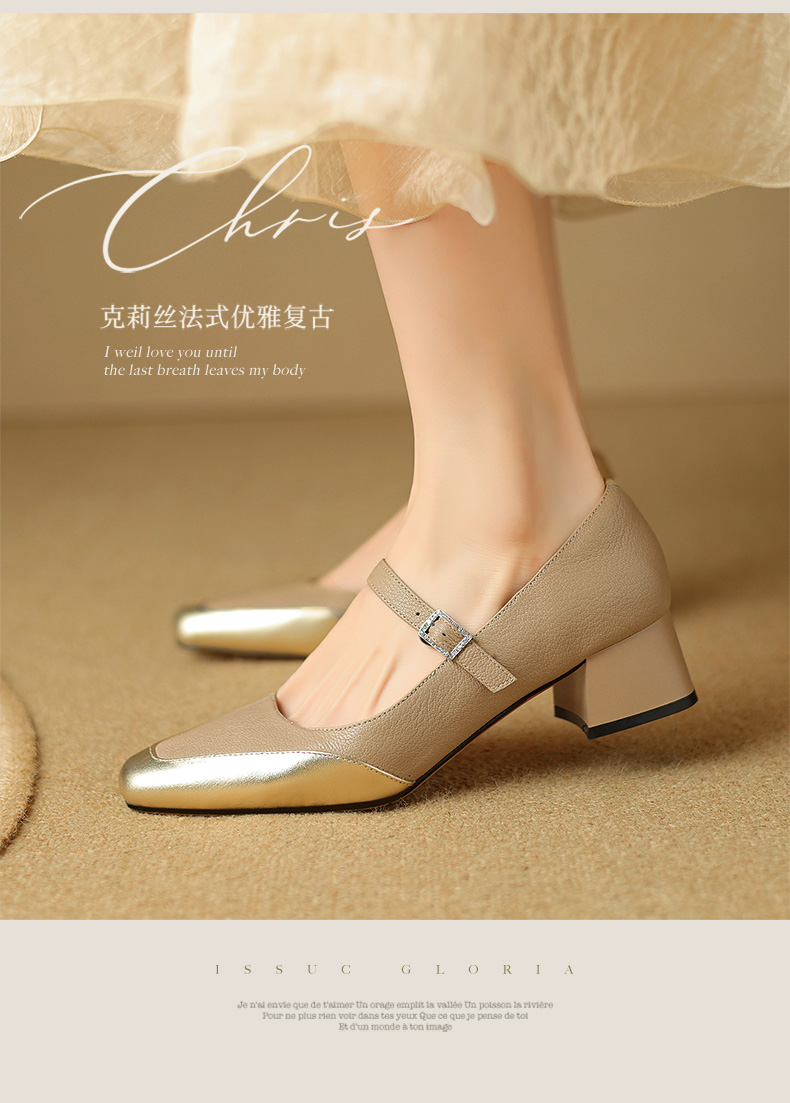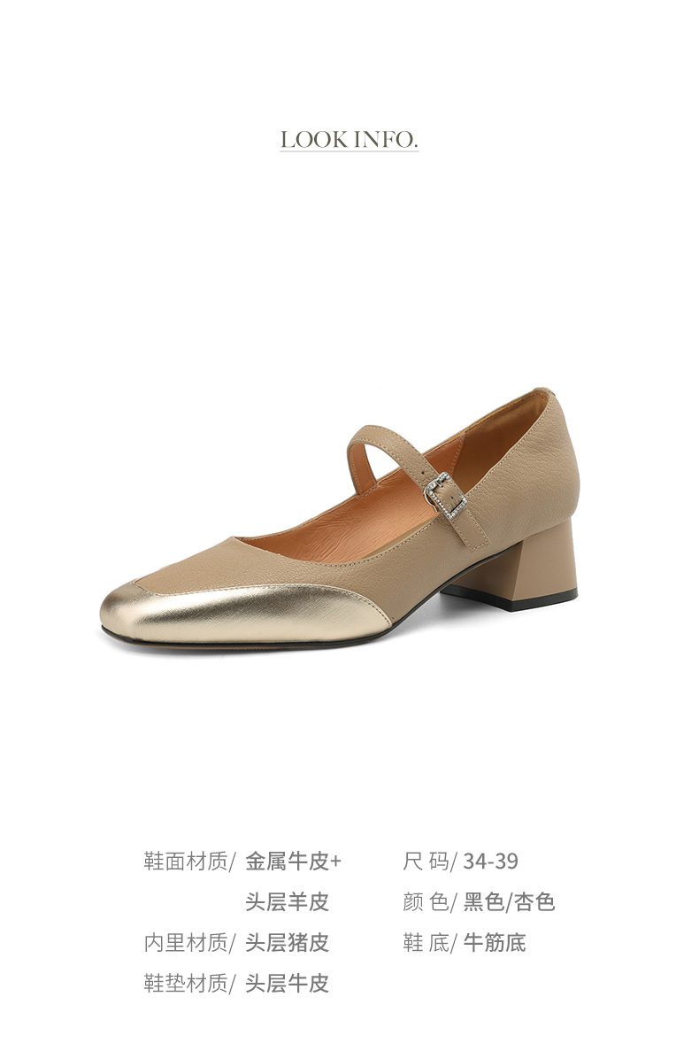 【预售5天】春夏新款,拼接粗跟时尚全皮单鞋LD&6711