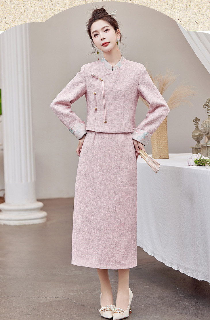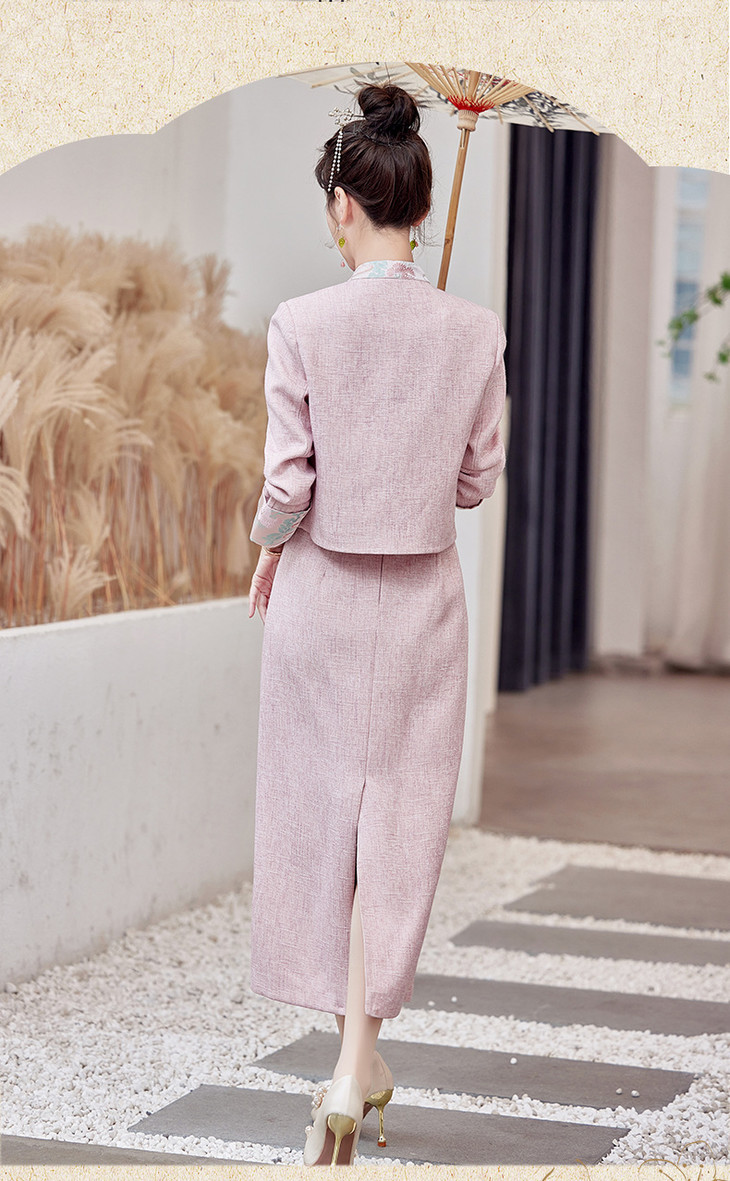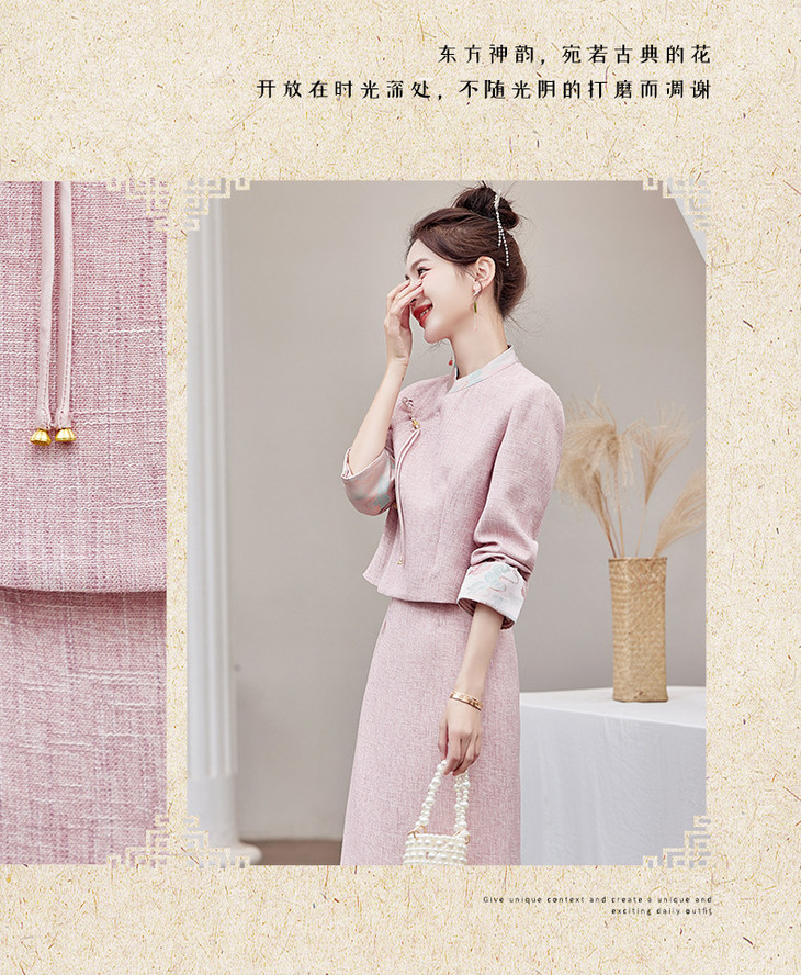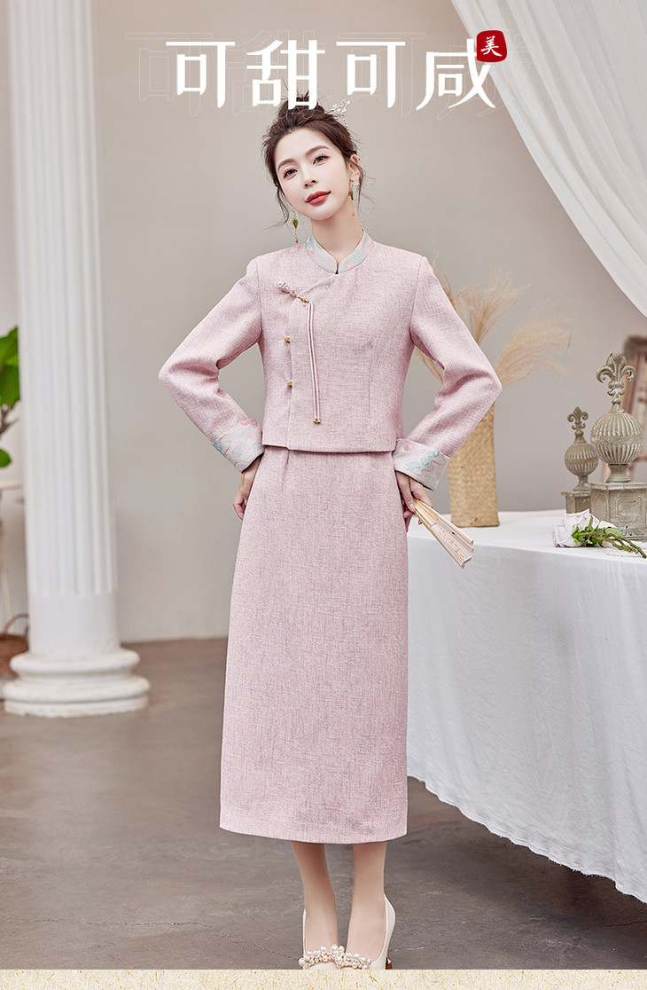 2025春季上新气质时尚小香新中式风印花立领盘扣修身显瘦两件套裙ZMFS24305