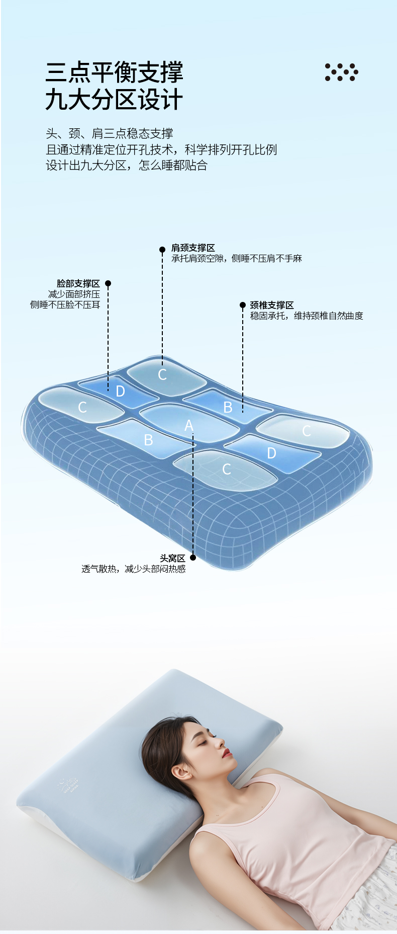多喜爱 深睡自然醒记忆枕 Pro(云粉/寐蓝)【高密度记忆绵】【正面凉感反面柔肤】【九大分区】【A类标准】【翼形蜂窝透气设计】【礼盒包装】