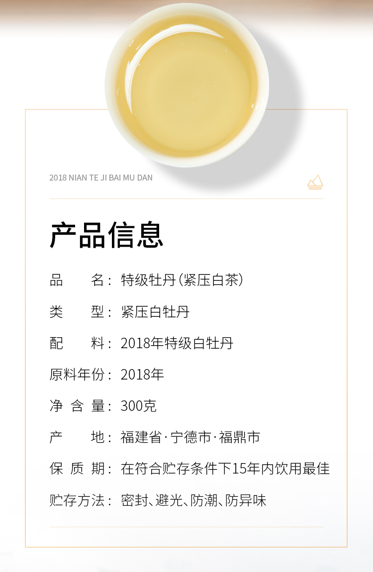 福鼎白茶2018年磻溪核心产区特级白牡丹300克/饼+礼盒+品鉴
