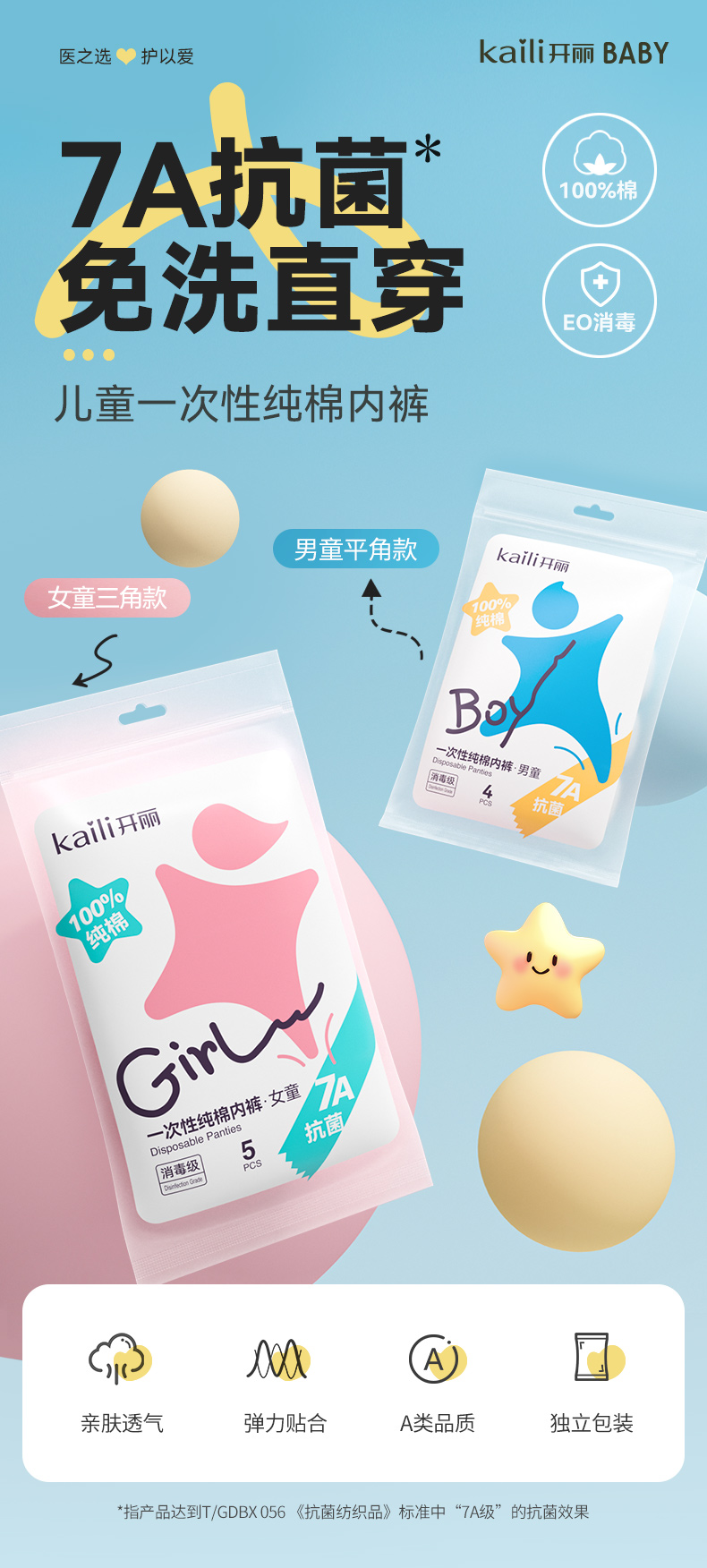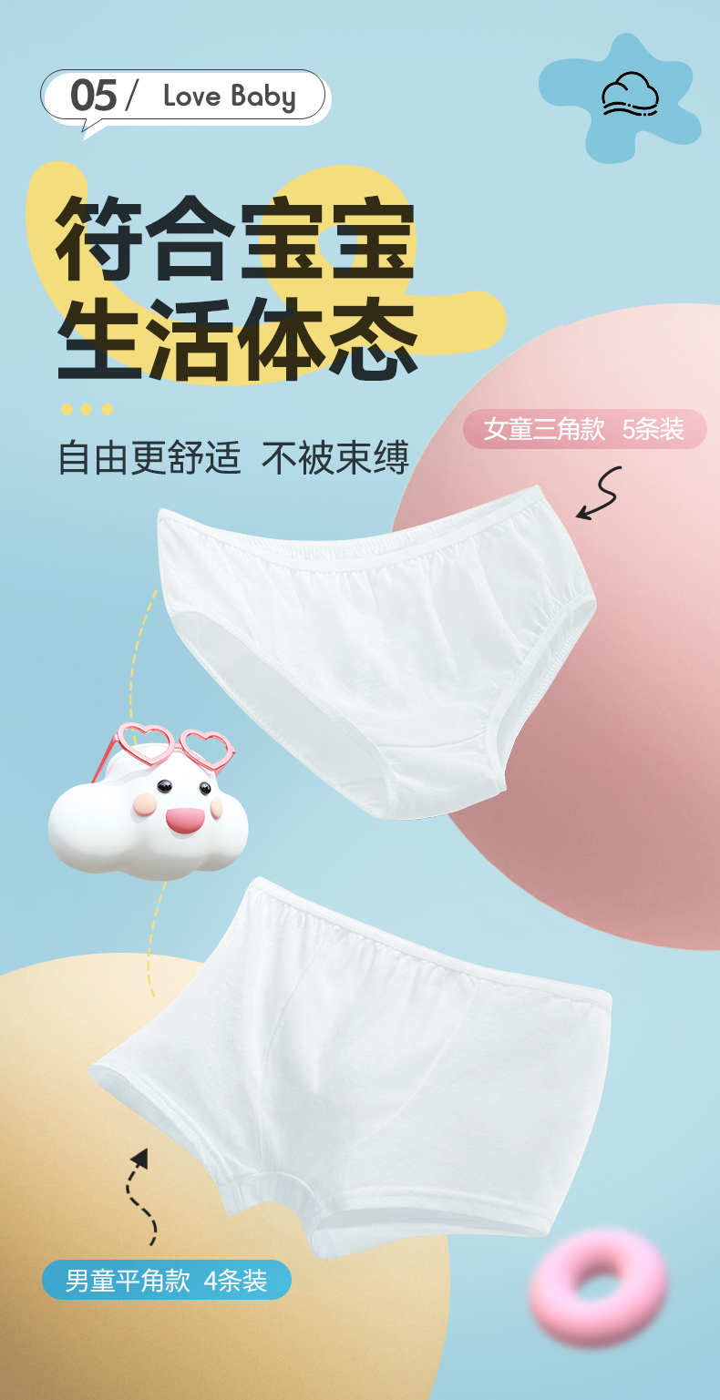 【清仓2件立减12元】10条丨开丽儿童一次性纯棉内裤7A抗菌 男女童