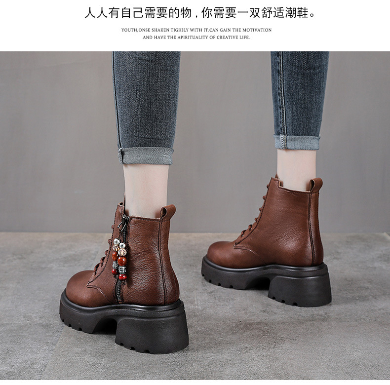 YR 2938真皮厚底复古马丁靴民族风高跟棉靴短靴 商品图1