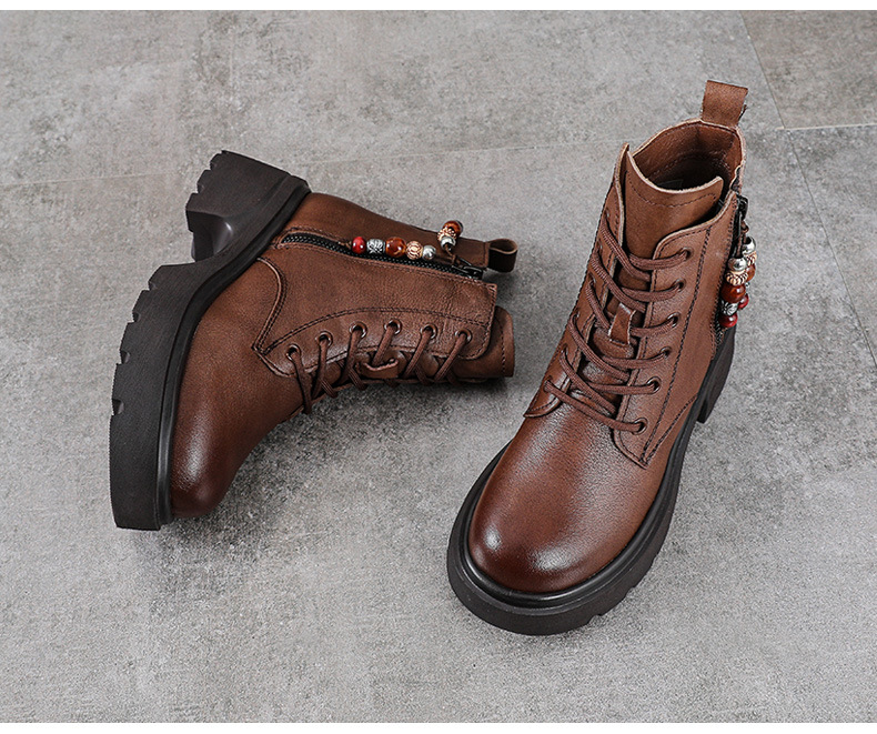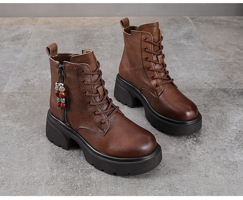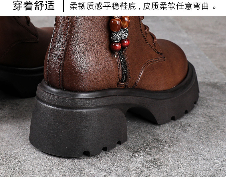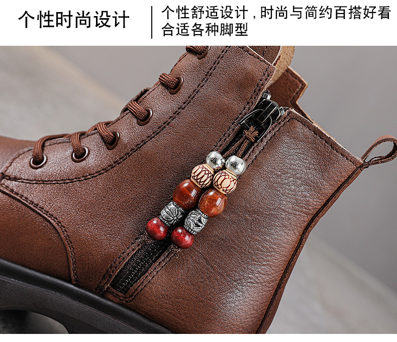 YR 2938真皮厚底复古马丁靴民族风高跟棉靴短靴 商品图4