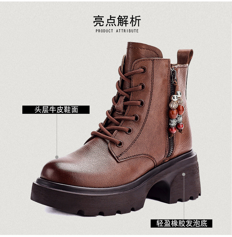 YR 2938真皮厚底复古马丁靴民族风高跟棉靴短靴 商品图2