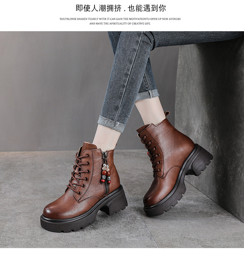 YR 2938真皮厚底复古马丁靴民族风高跟棉靴短靴 商品图0