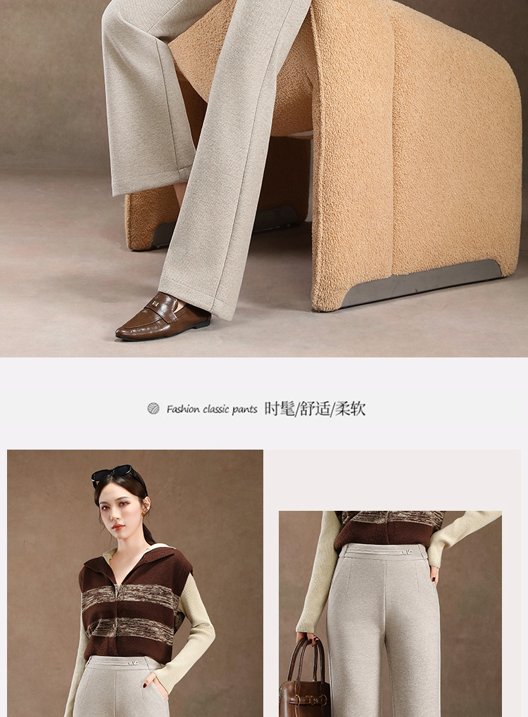 QYM 2531-Y毛呢微喇裤垂感休闲喇叭裤时尚 商品图4
