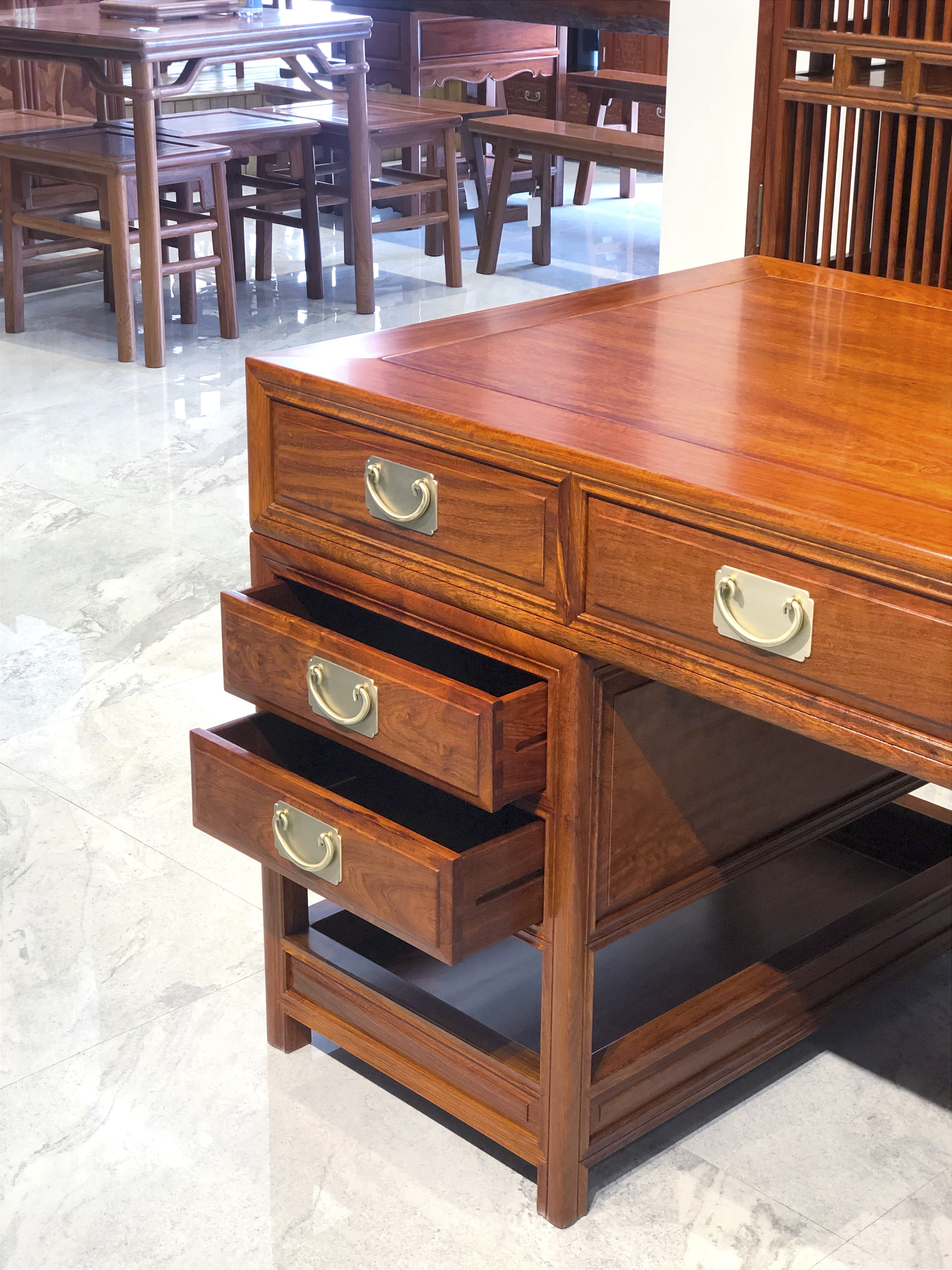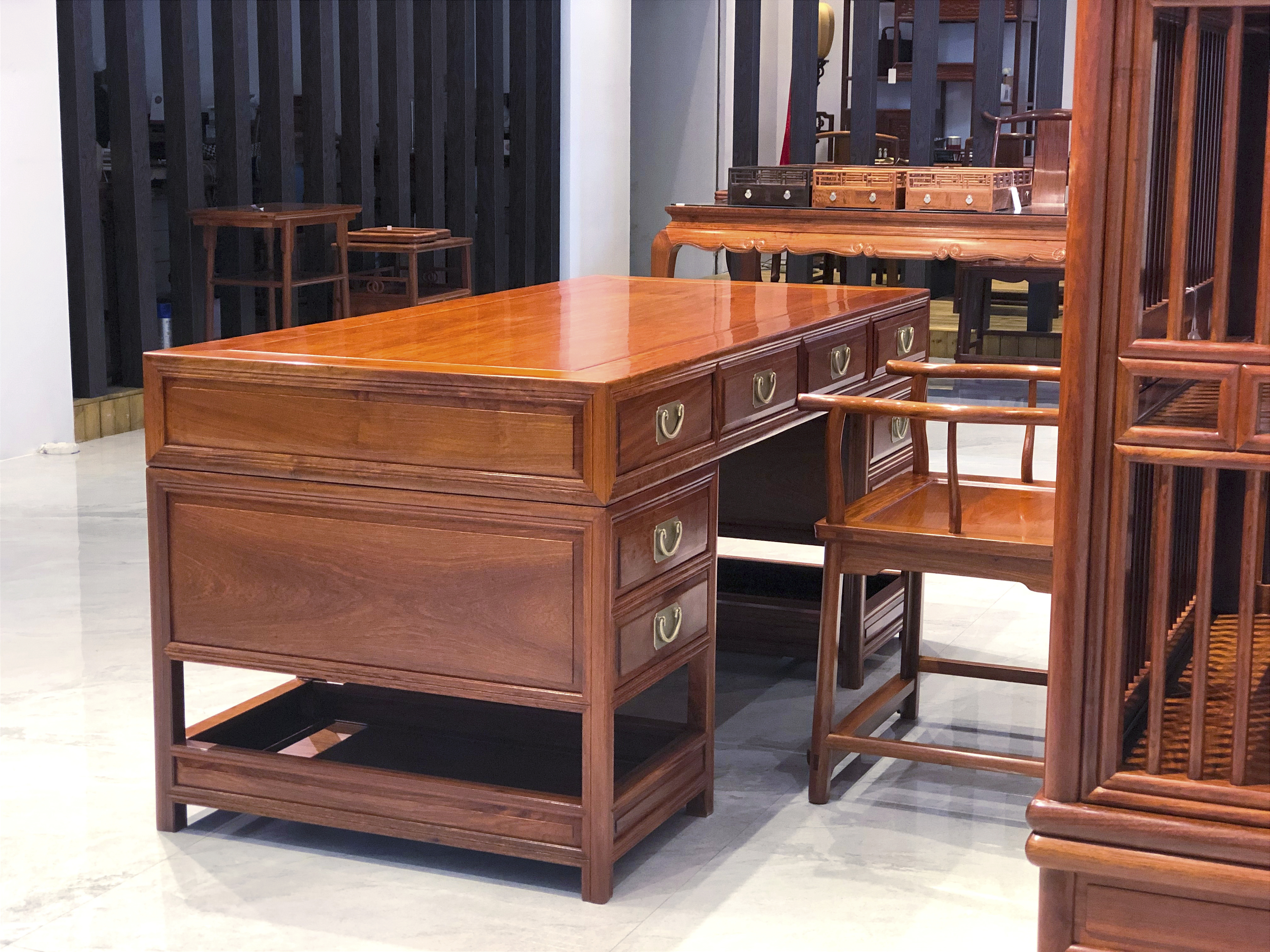 正宗缅甸花梨(大果紫檀)制作,传统榫卯工艺,零白皮零拼补,烘干严谨。