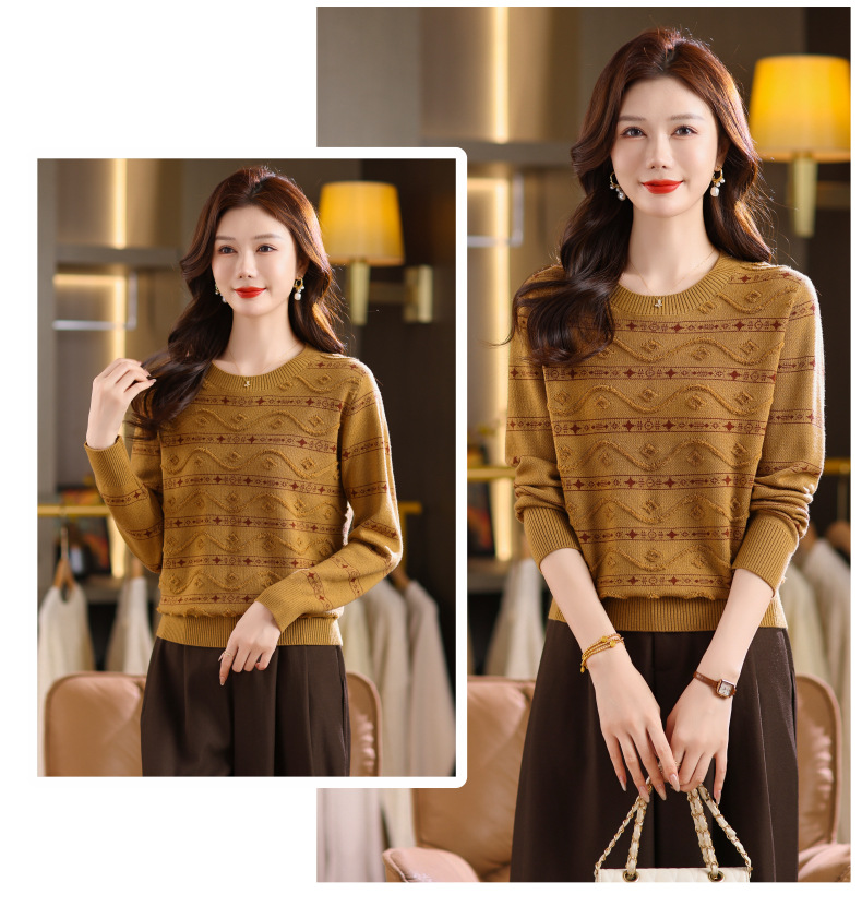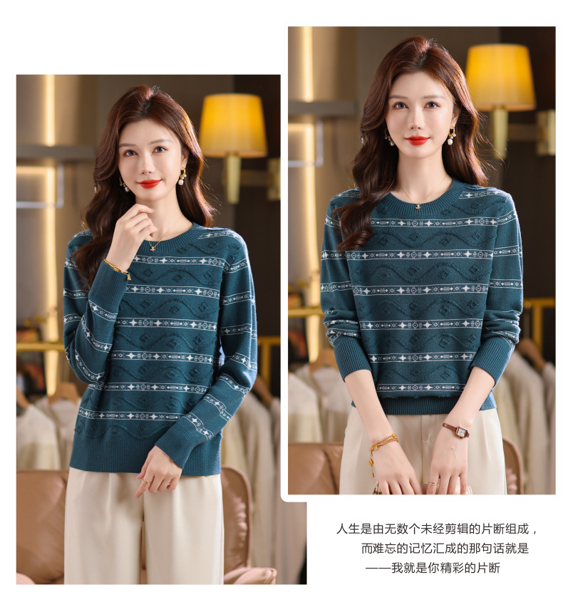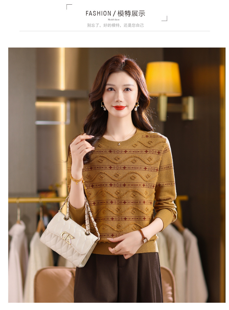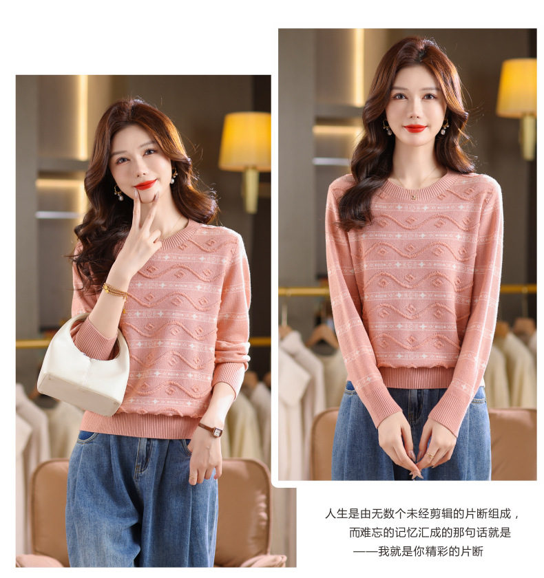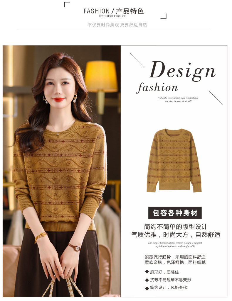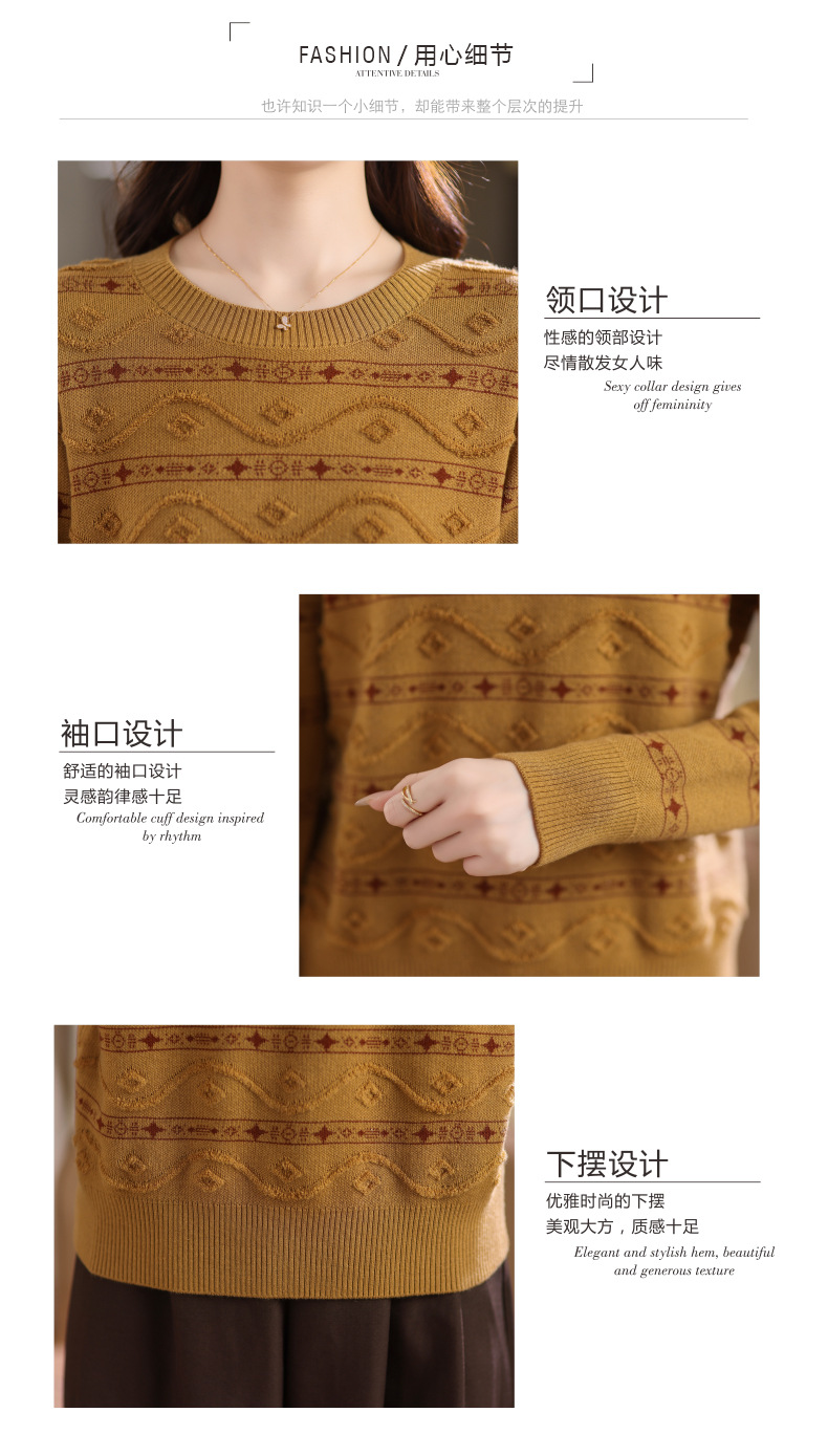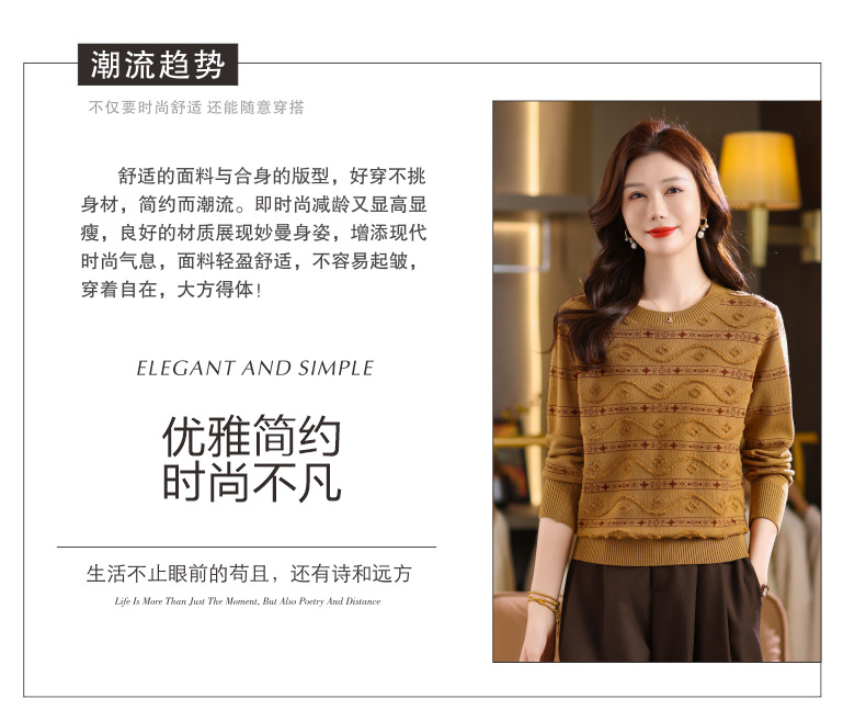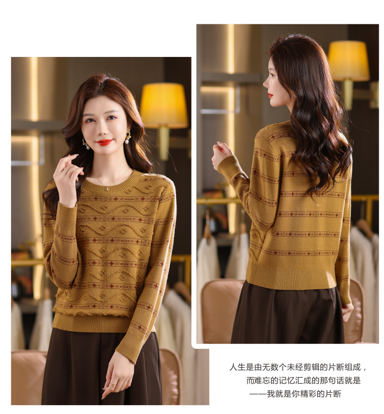 CC早秋新款套头毛衣女气质女神范复古花纹圆领内搭通勤短款针织衫潮
