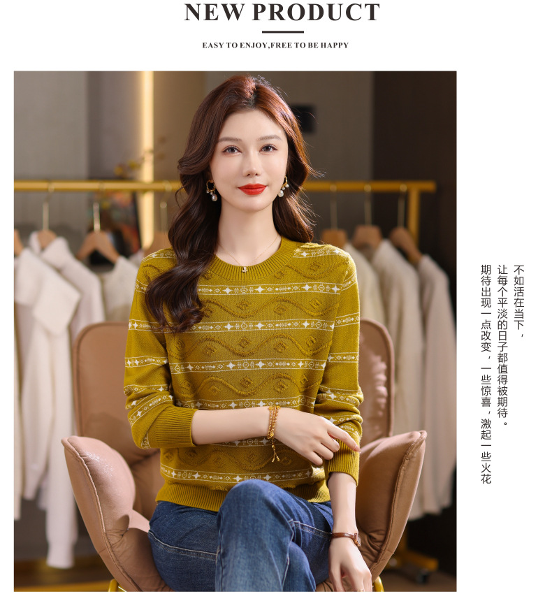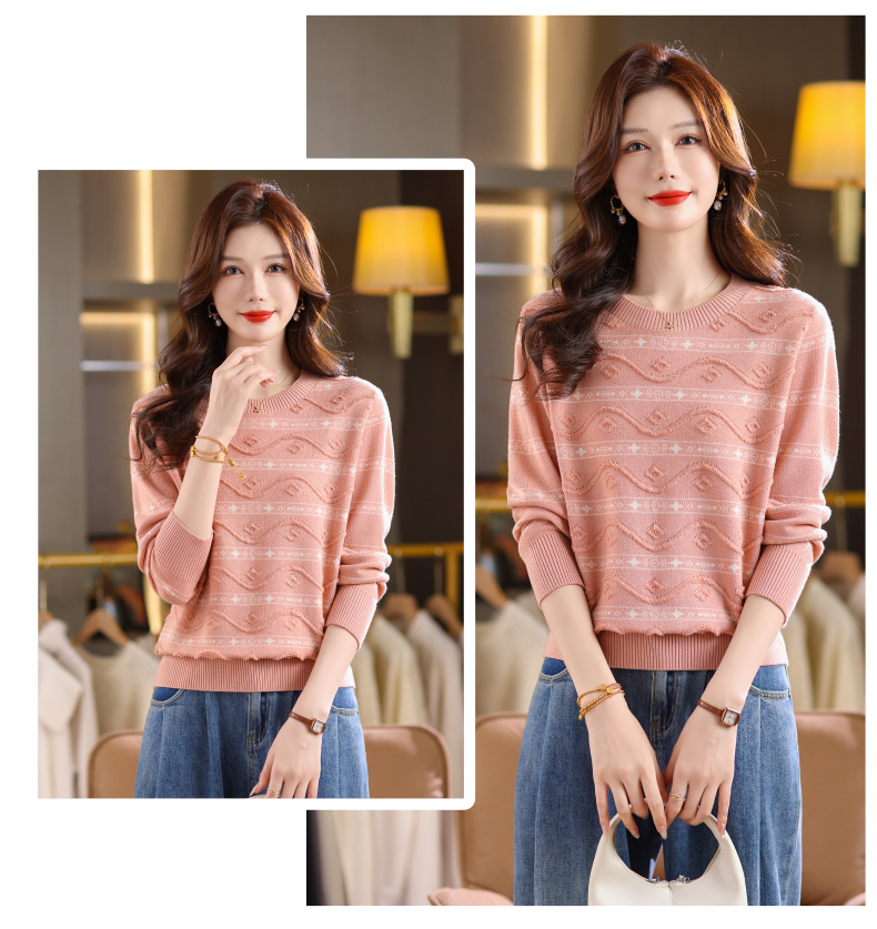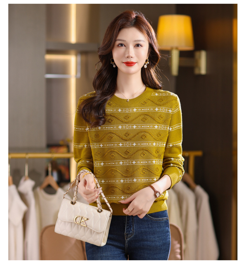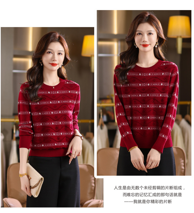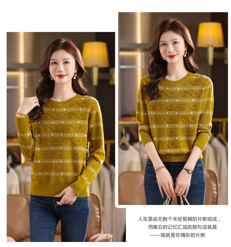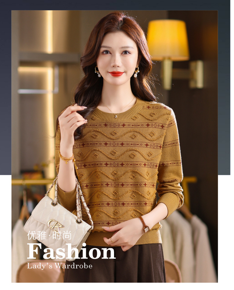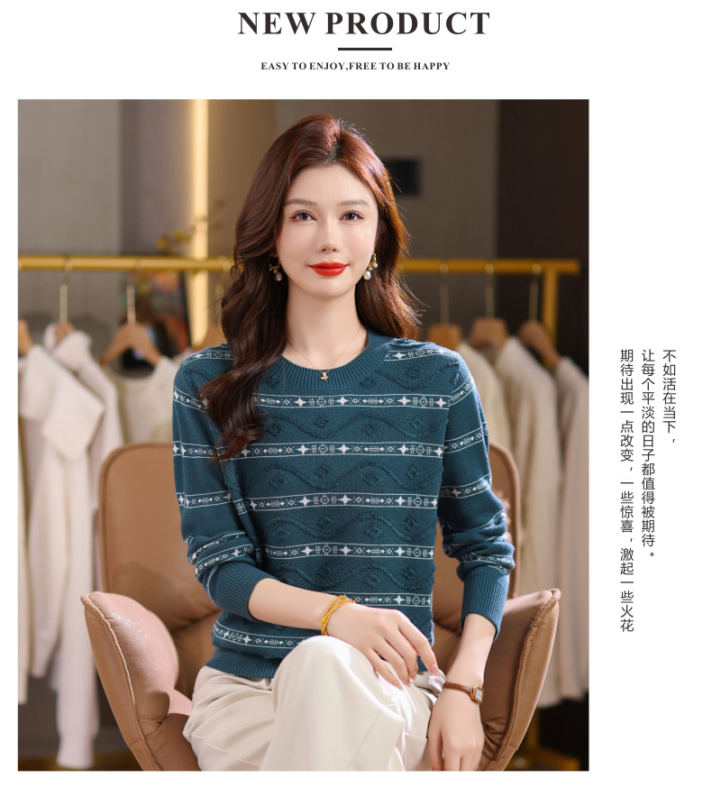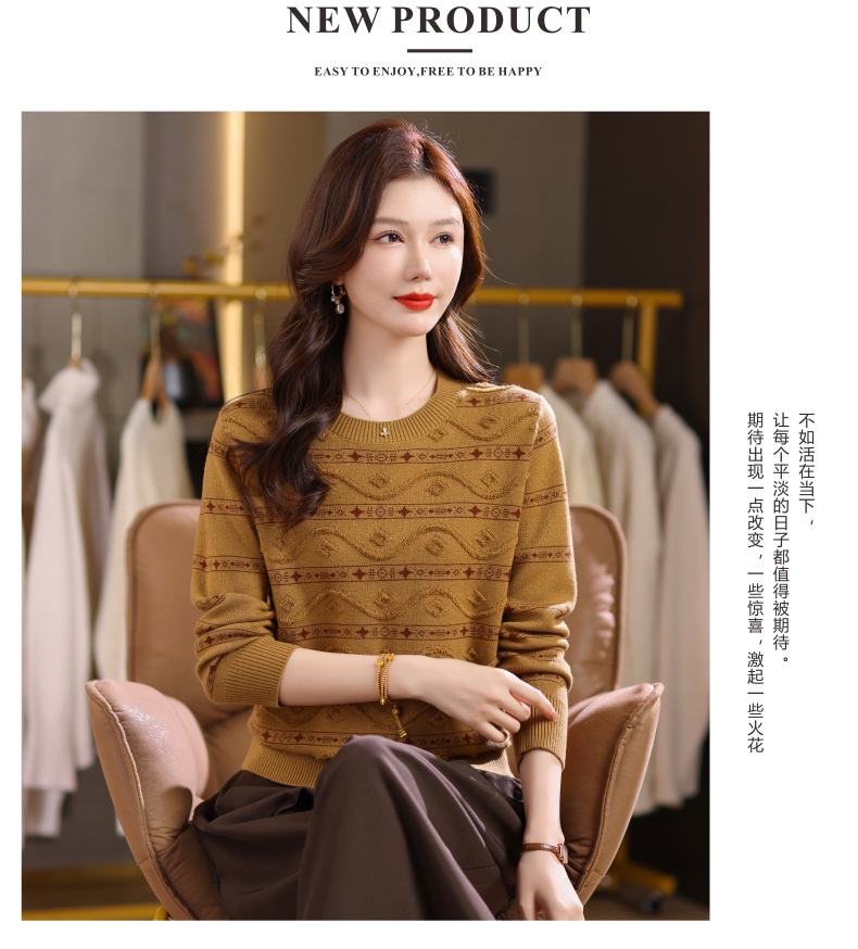 CC早秋新款套头毛衣女气质女神范复古花纹圆领内搭通勤短款针织衫潮