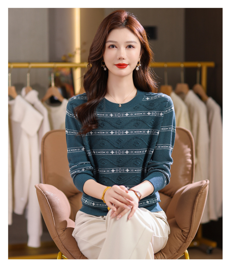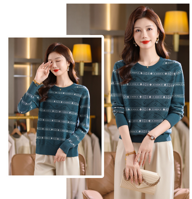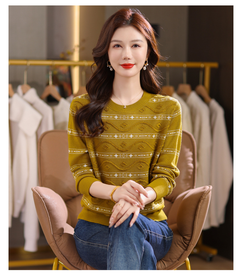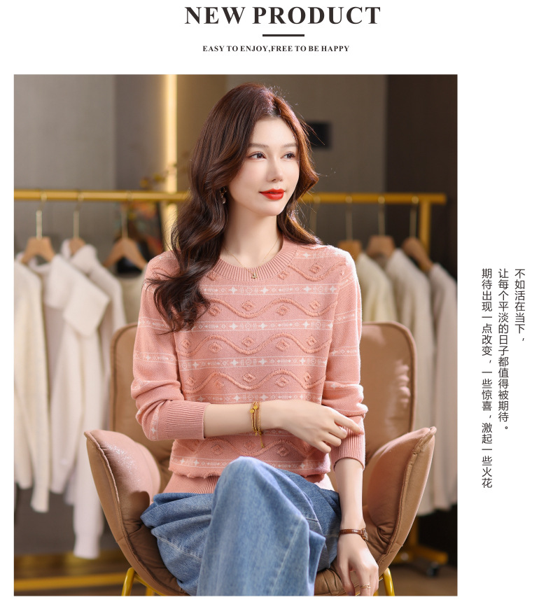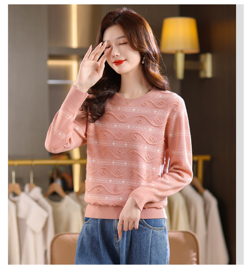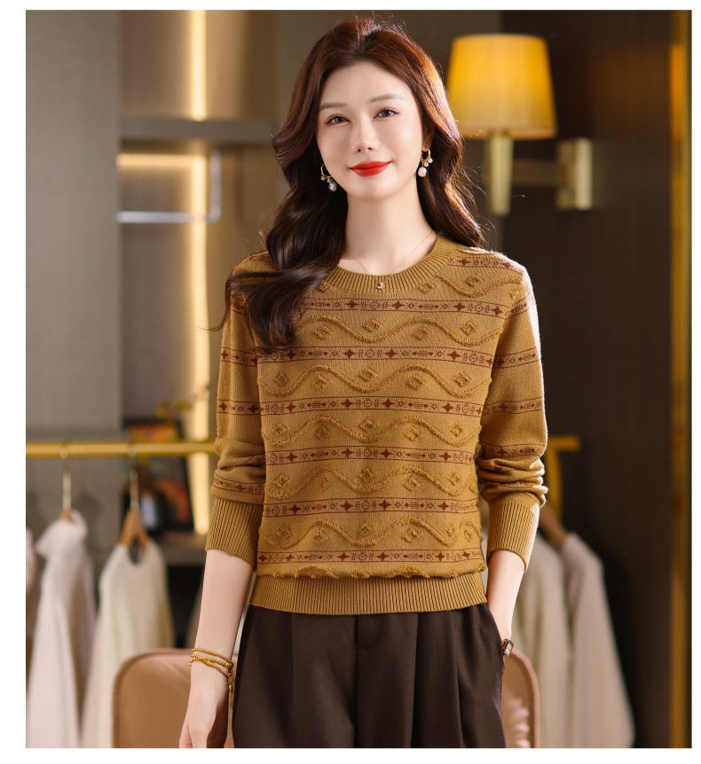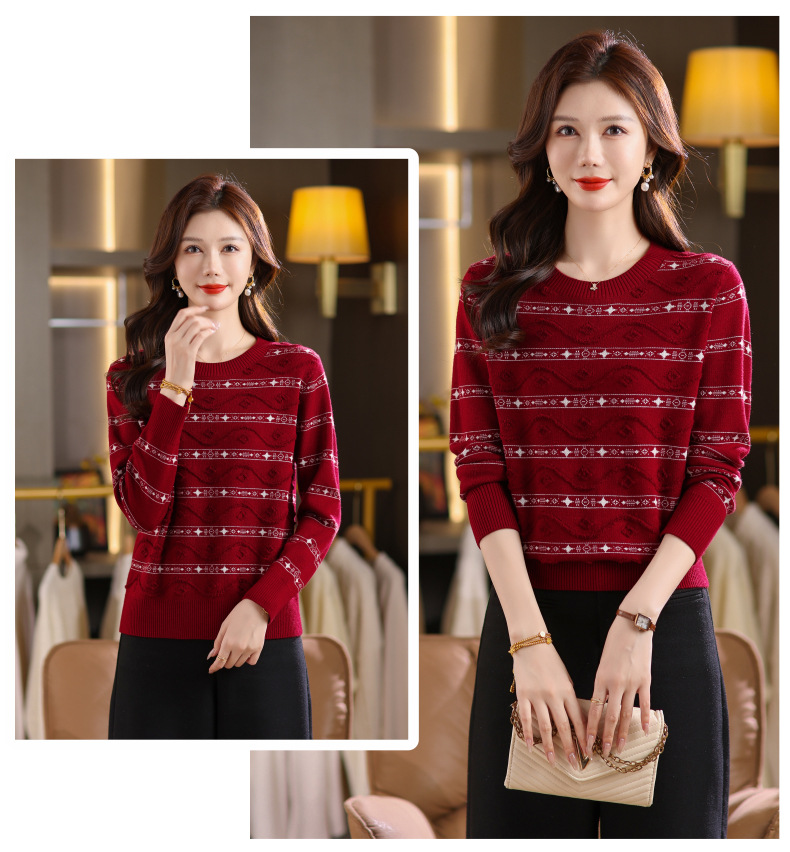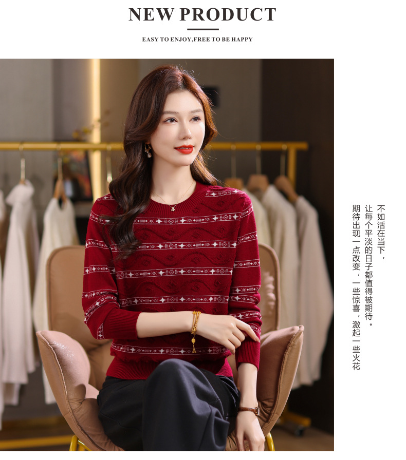 CC早秋新款套头毛衣女气质女神范复古花纹圆领内搭通勤短款针织衫潮