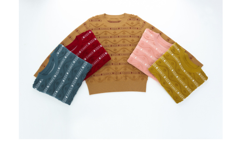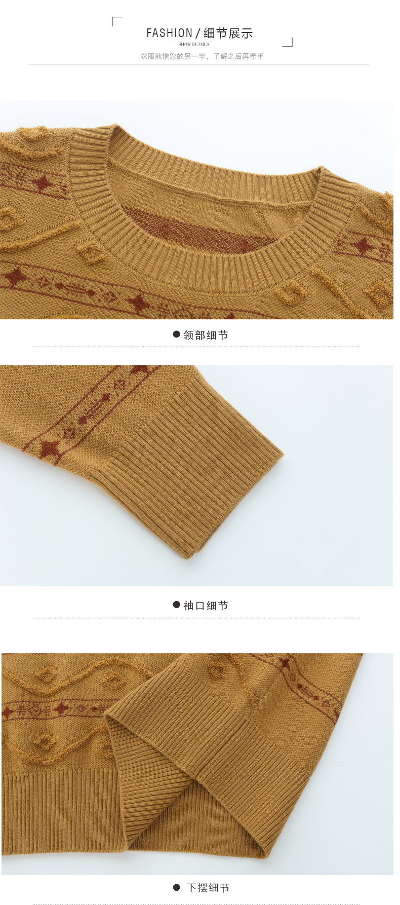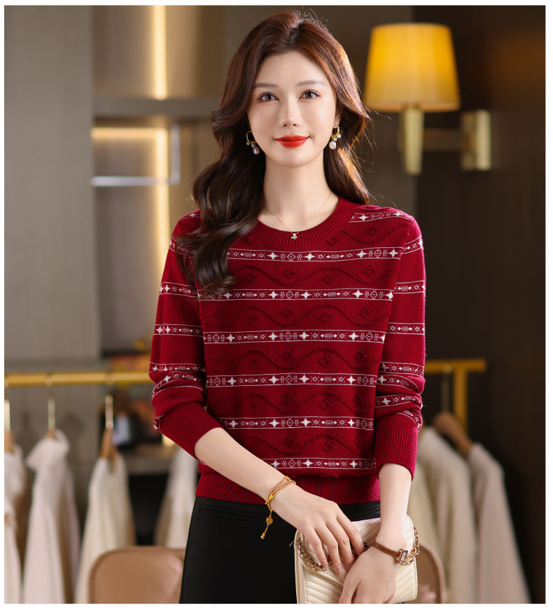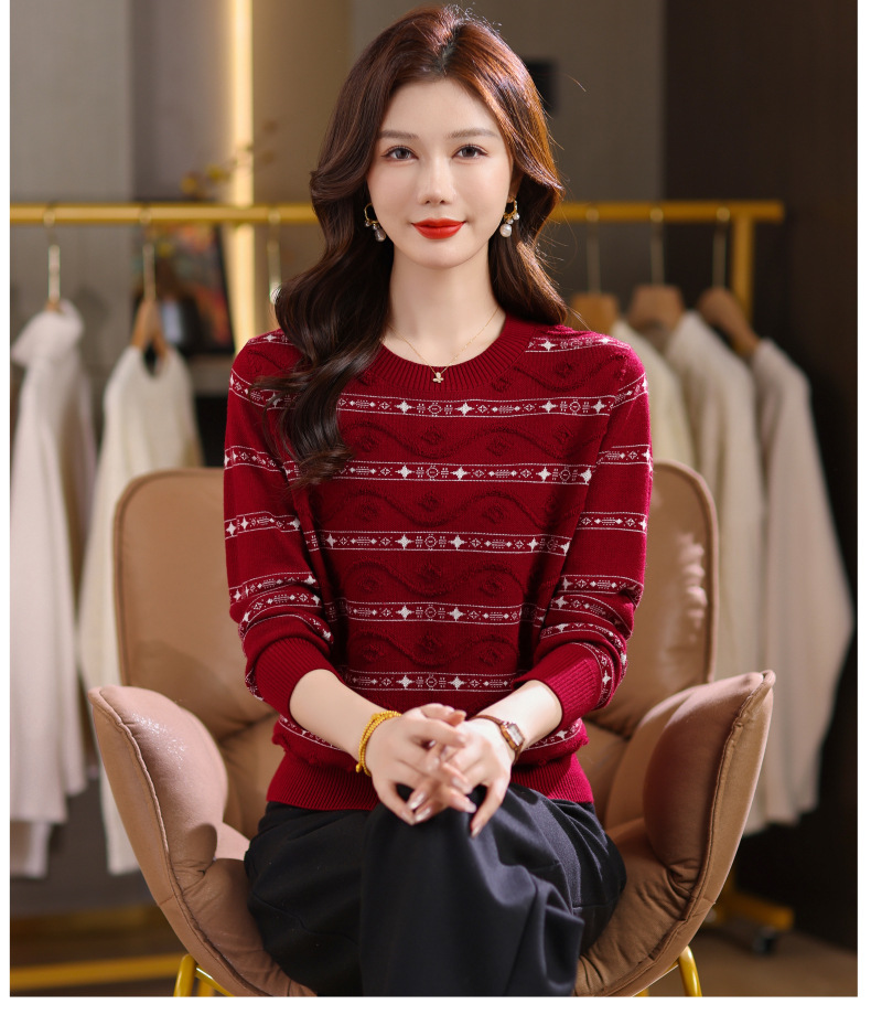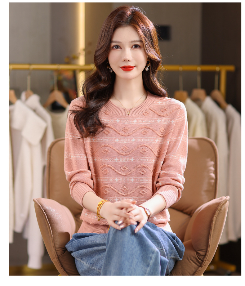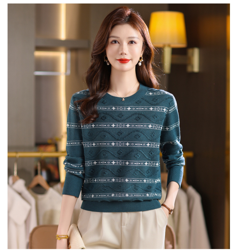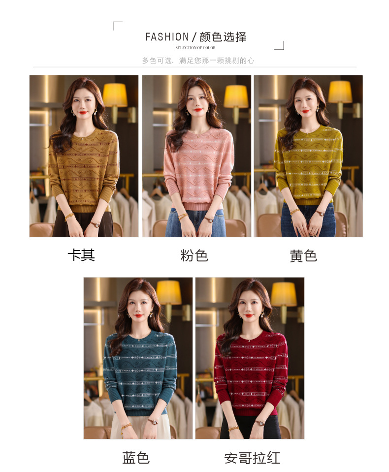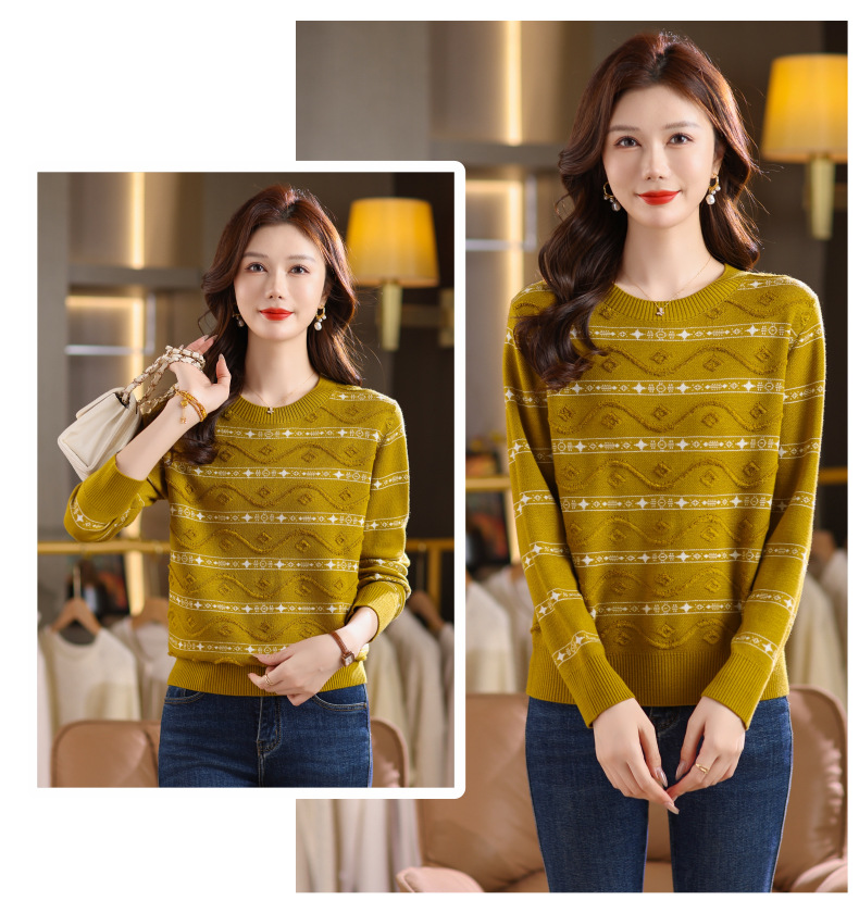 CC早秋新款套头毛衣女气质女神范复古花纹圆领内搭通勤短款针织衫潮