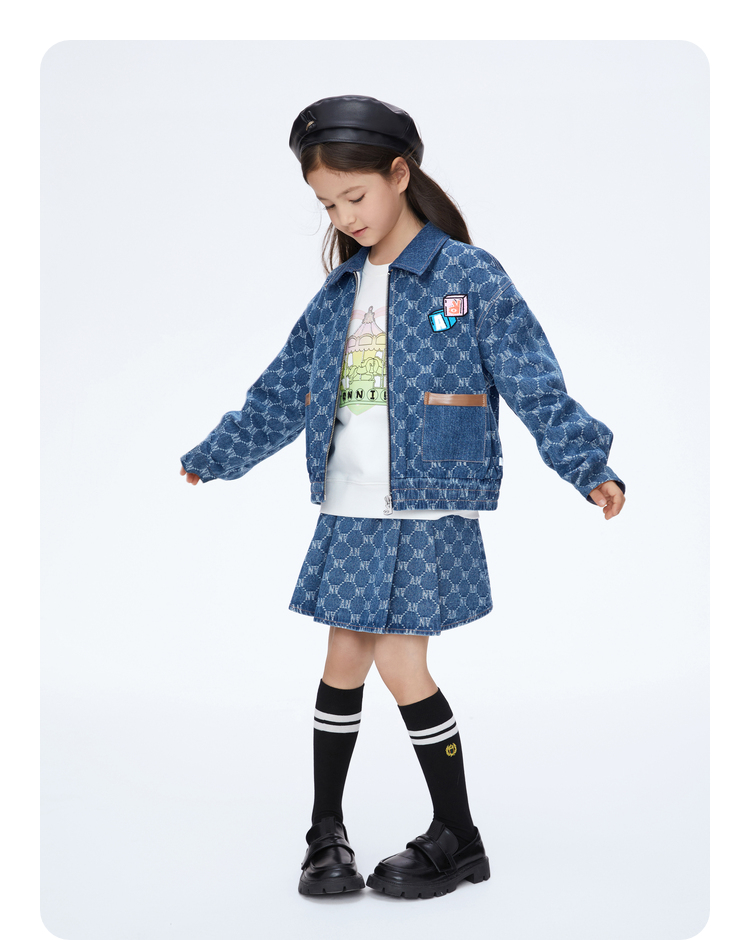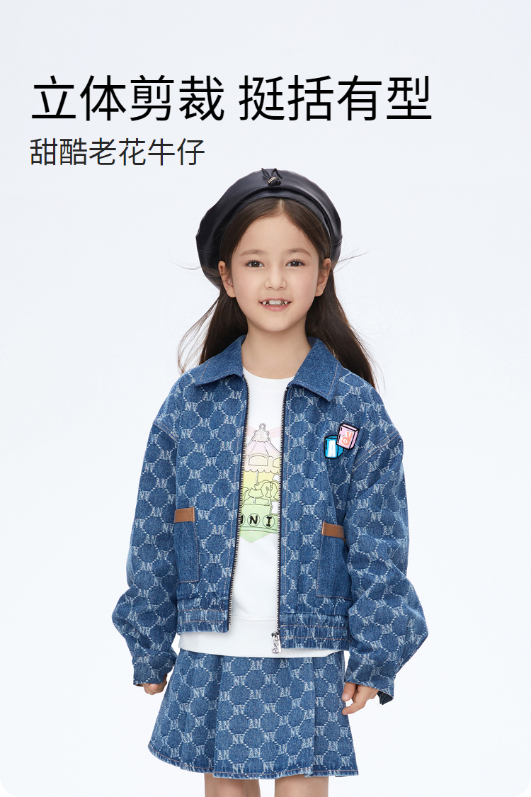 女童复古老花牛仔外套新款安奈儿童装实体店同款AG415568