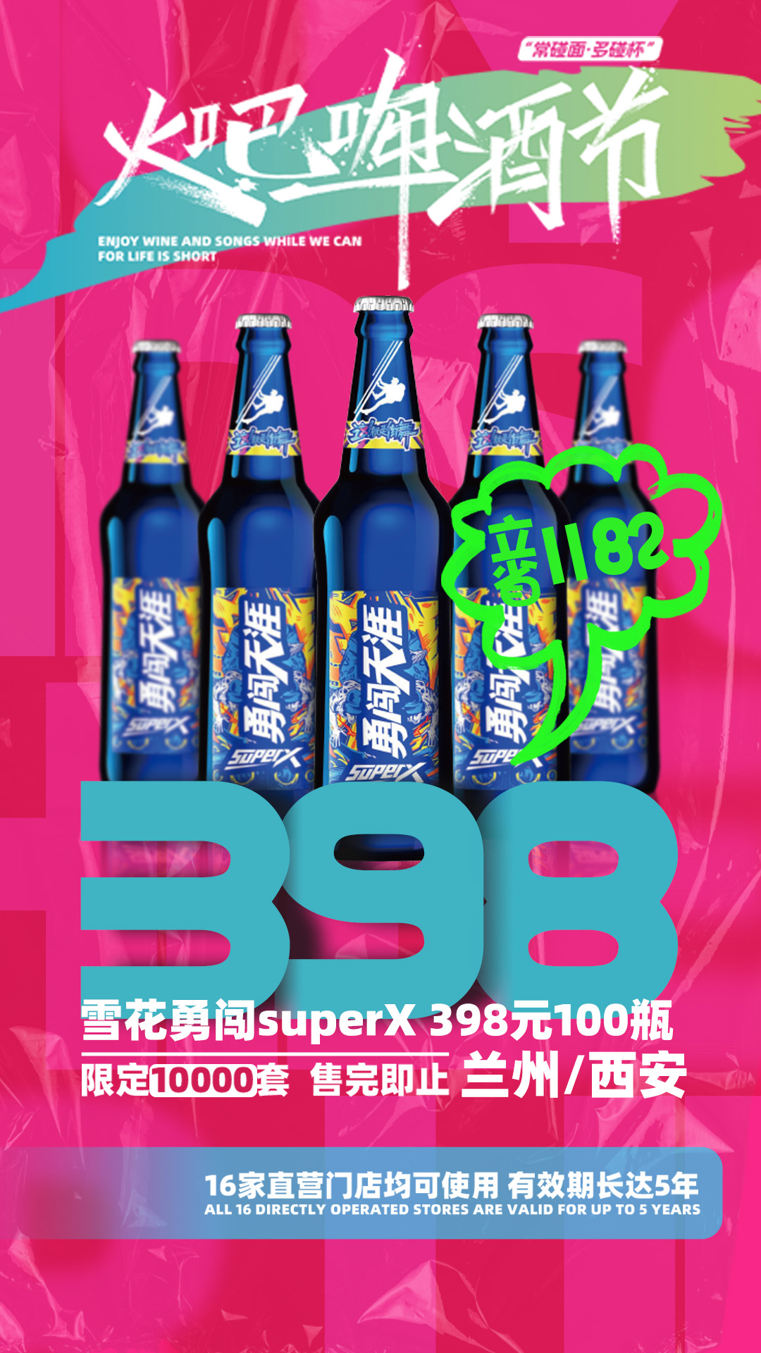 兰州西安通用-8月18日火吧啤酒节—超值存酒卡来了—398元100瓶雪花超勇啤酒