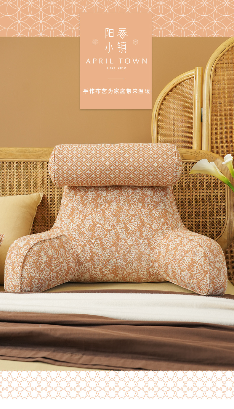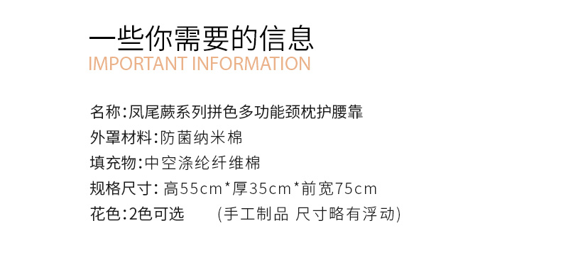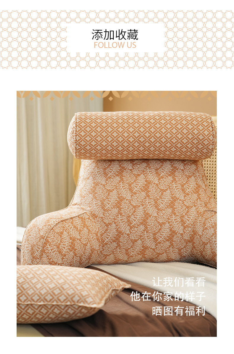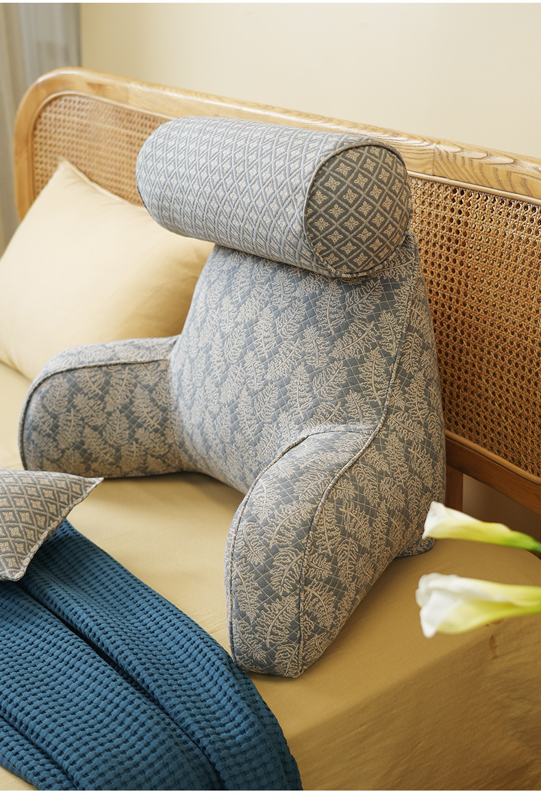 凤尾蕨系列拼色多功能颈枕护腰靠床头靠垫软包大靠背高级感腰靠卧室可拆洗