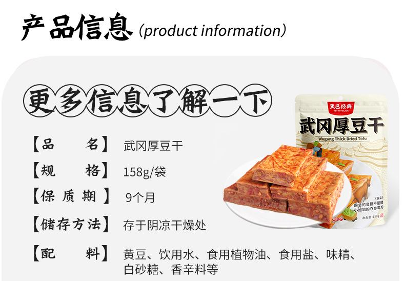 【邵阳特产】黑色经典霸蛮武冈豆干158g/袋 厚豆干 久卤入味5-6小包左右