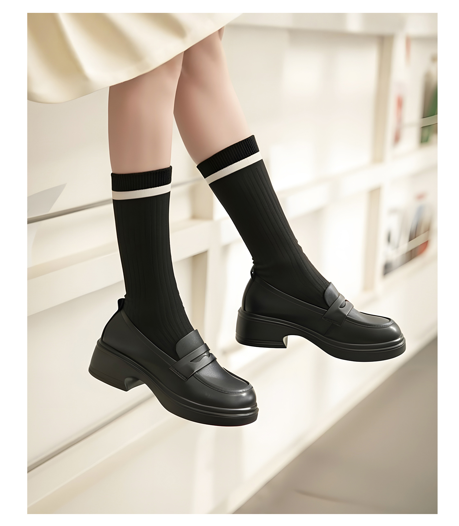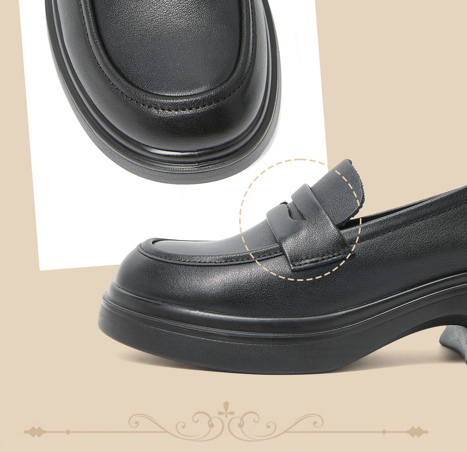 康莉KHM5A520厚底牛皮乐福鞋春季新款真皮英伦学院风百搭粗跟小皮鞋
