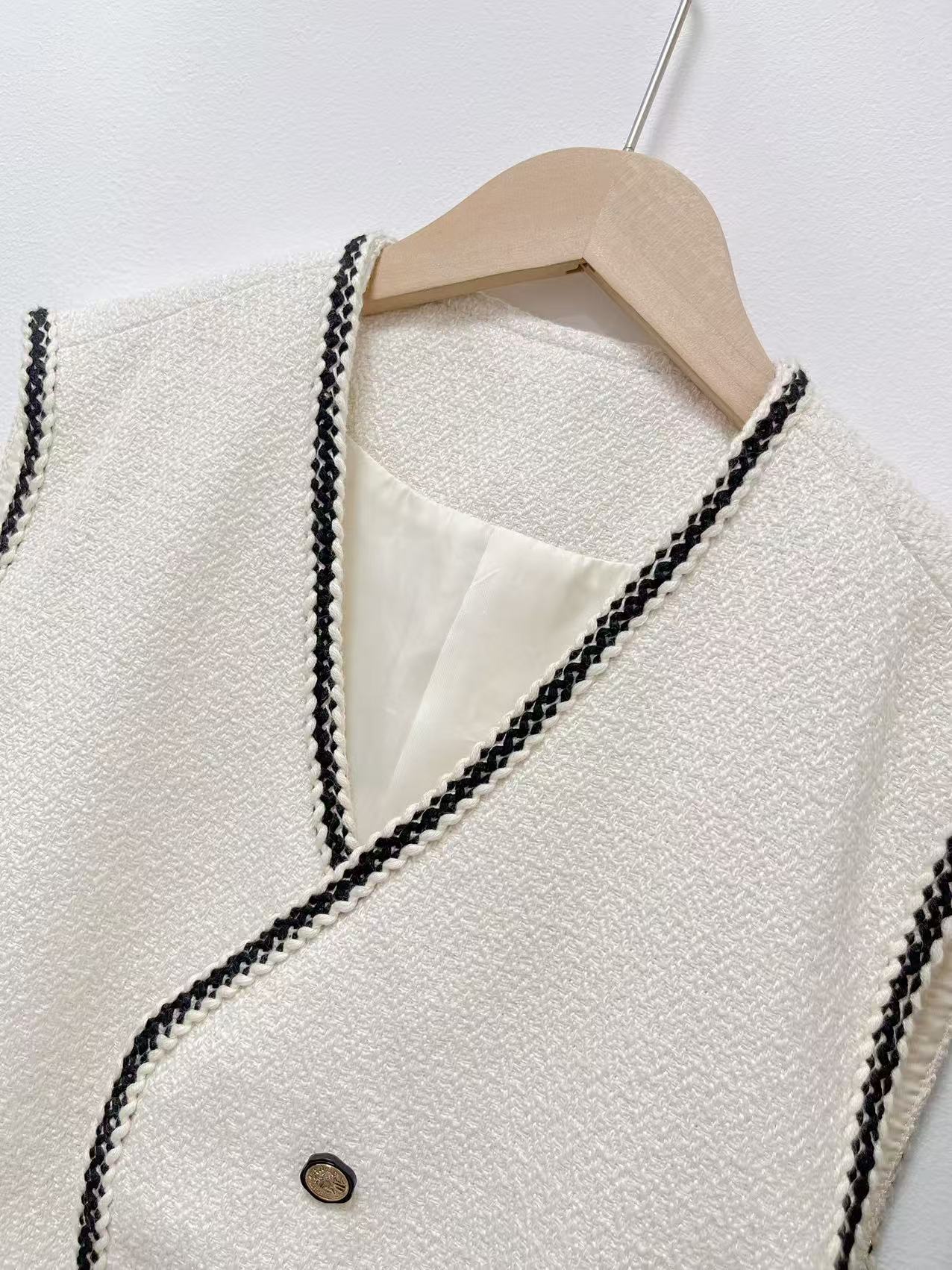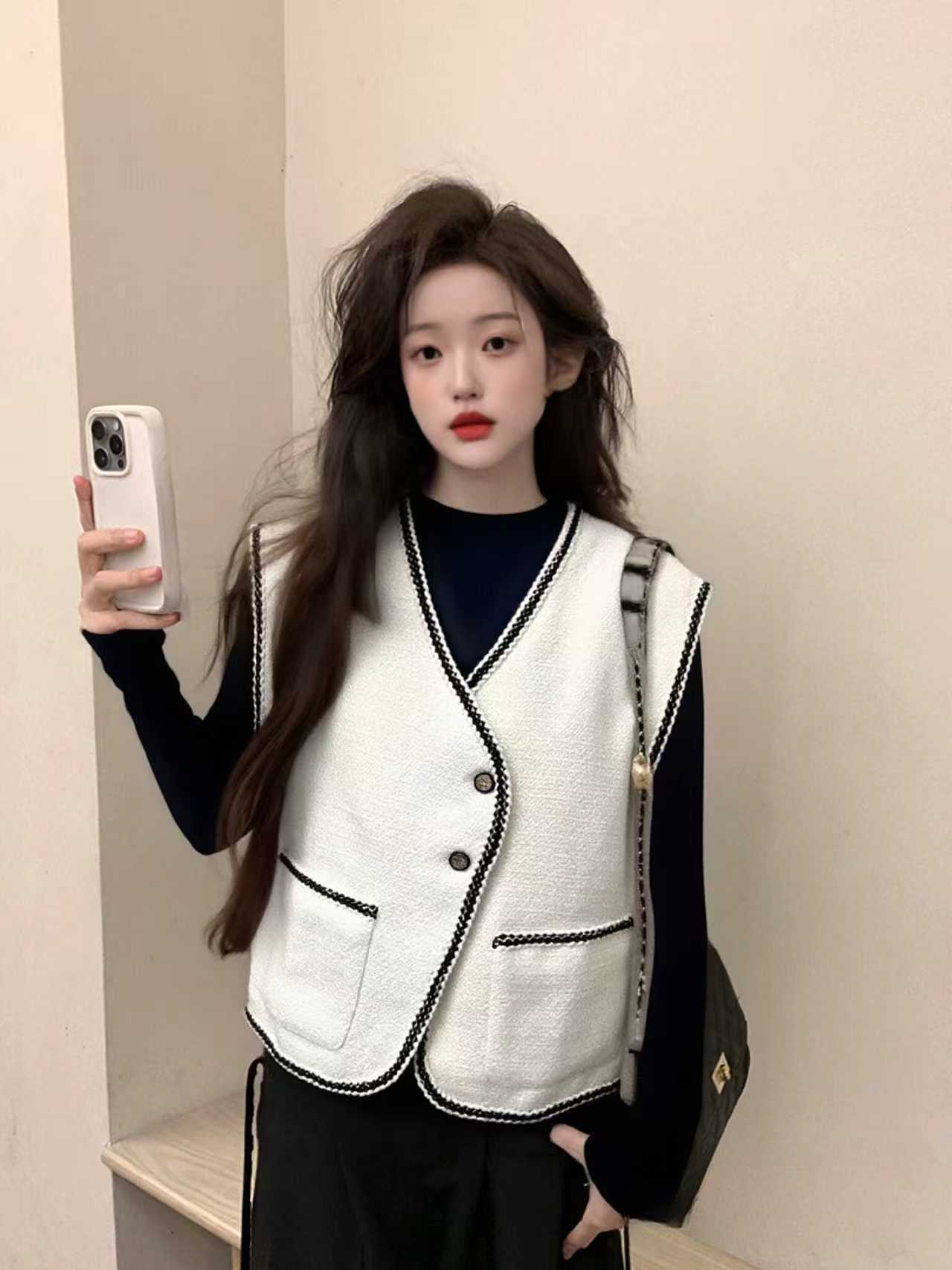11.11直降到底!!【秋新品】7059米白小香风编织边马甲背心-喜出