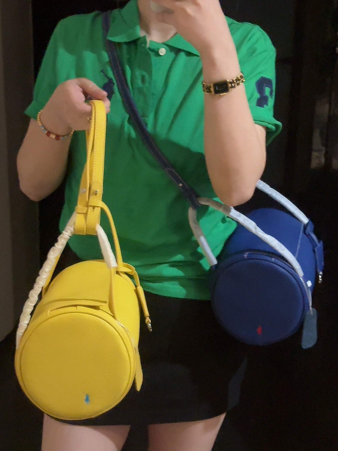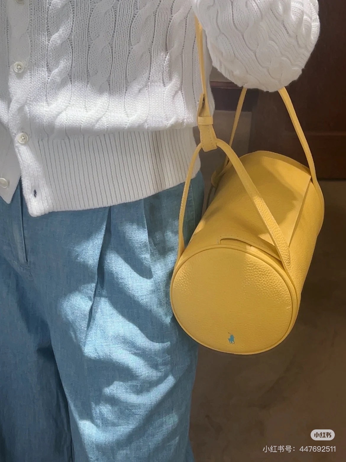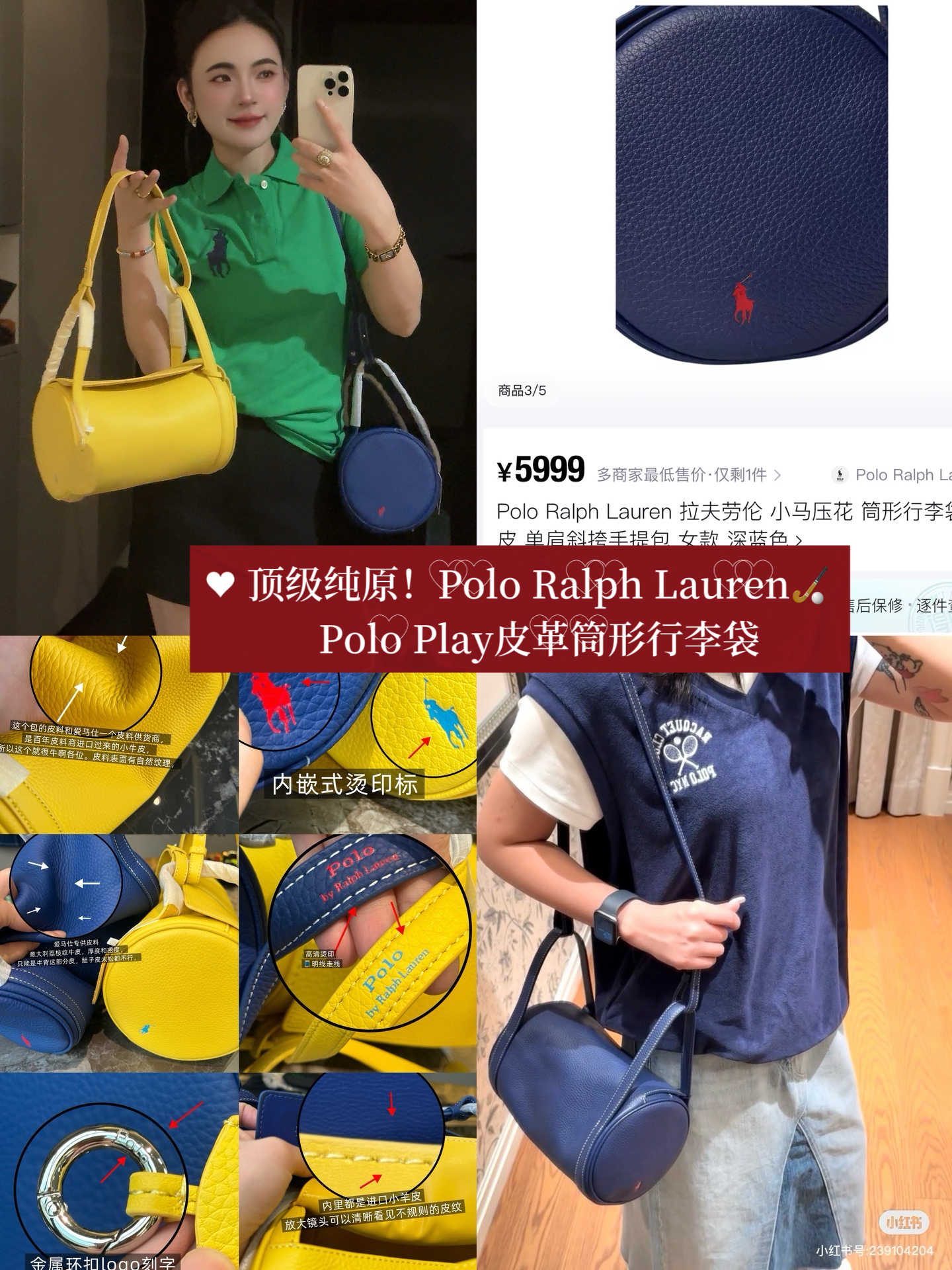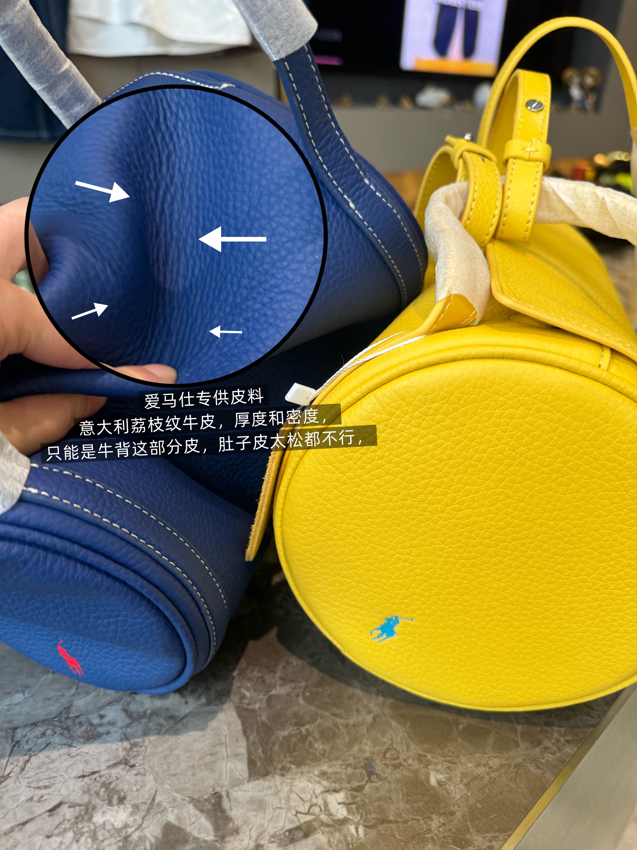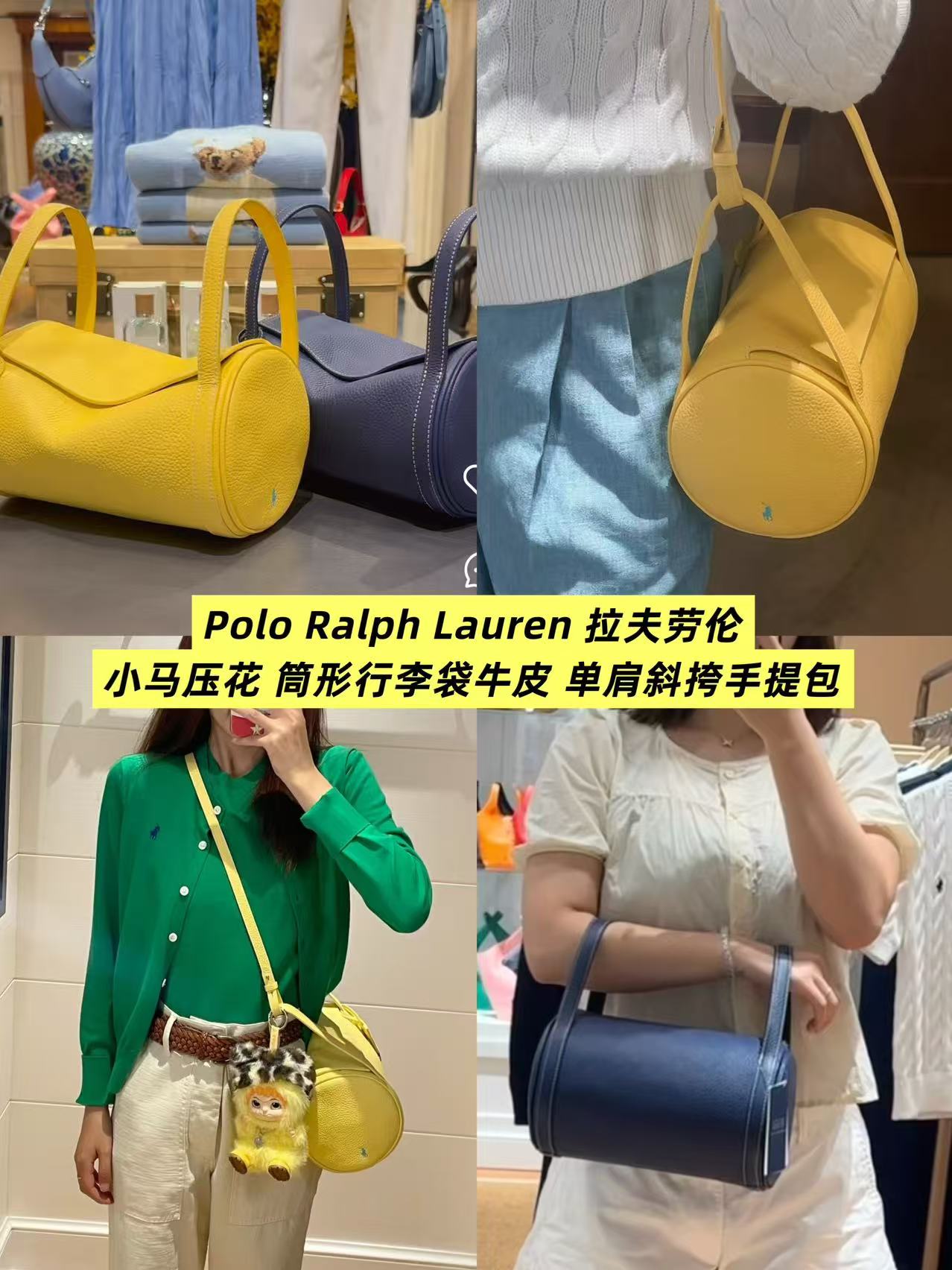 拉夫劳伦圆筒包双色入 高级荔枝纹牛皮十三种背法,小众控必入!包身走线全部采用同色明线缝制,工艺精致,非常考验做工!这个包的皮料和爱马仕一个皮料供货商,是百年皮料商进口过来的小牛皮,所以这个就很牛啊各位。