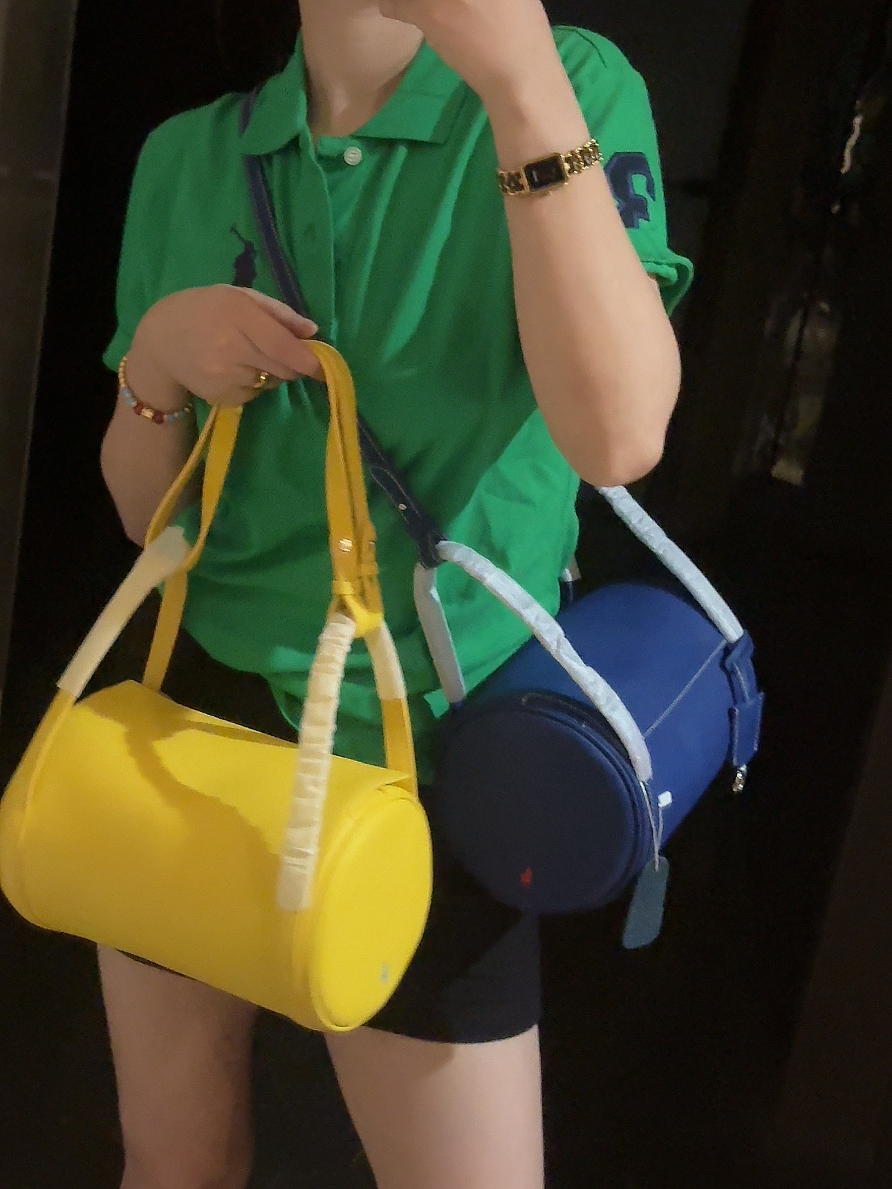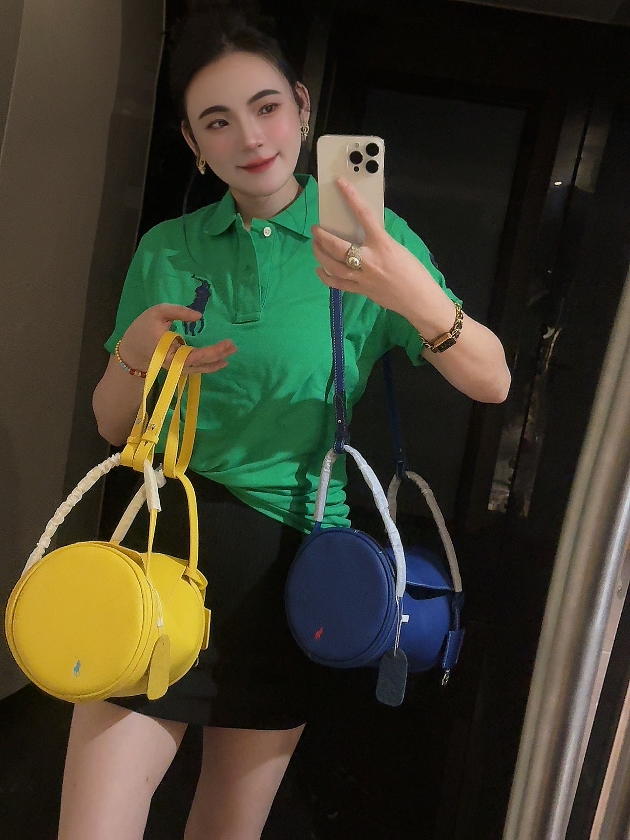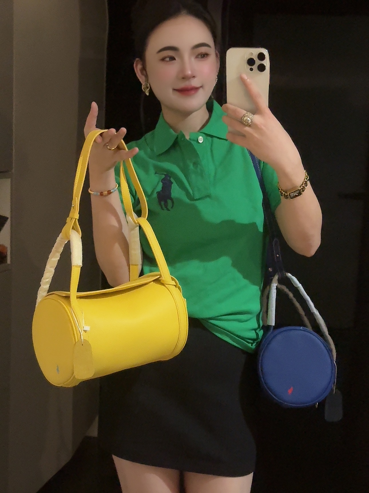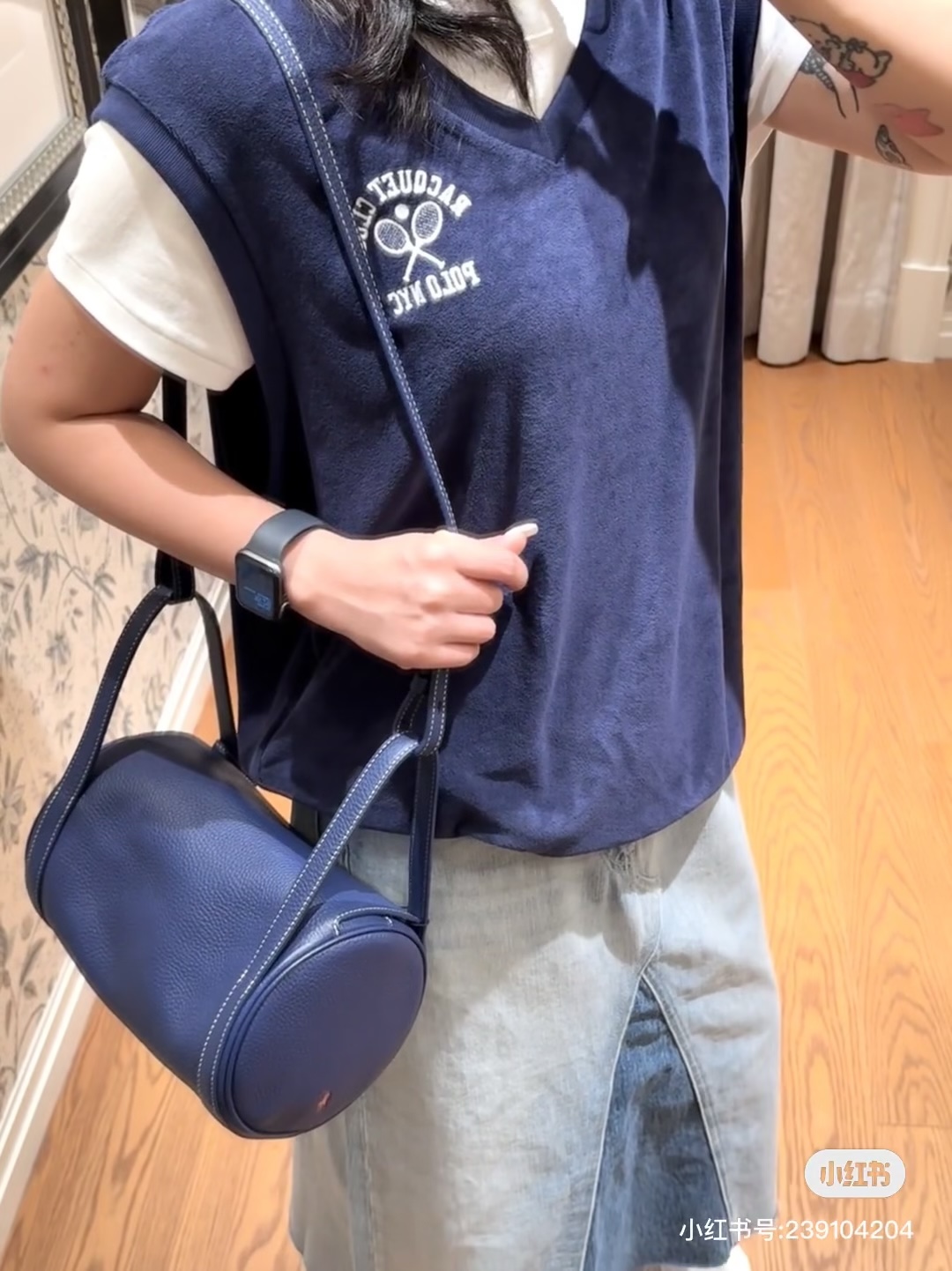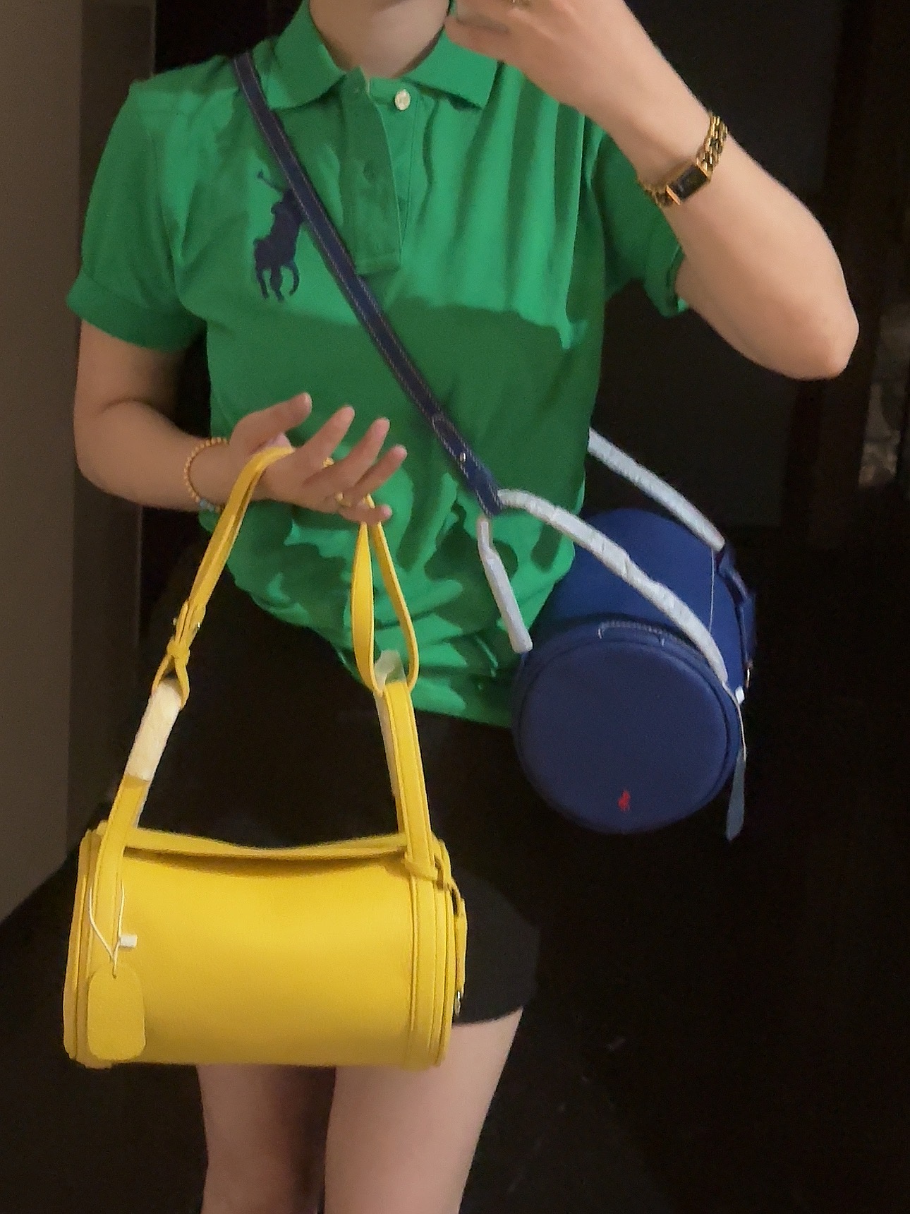 拉夫劳伦圆筒包双色入 高级荔枝纹牛皮十三种背法,小众控必入!包身走线全部采用同色明线缝制,工艺精致,非常考验做工!这个包的皮料和爱马仕一个皮料供货商,是百年皮料商进口过来的小牛皮,所以这个就很牛啊各位。