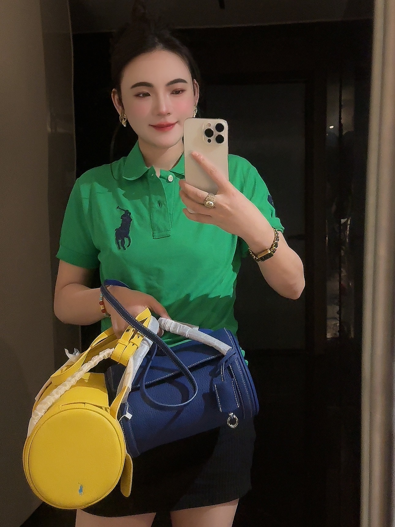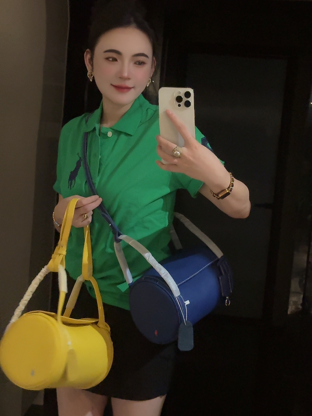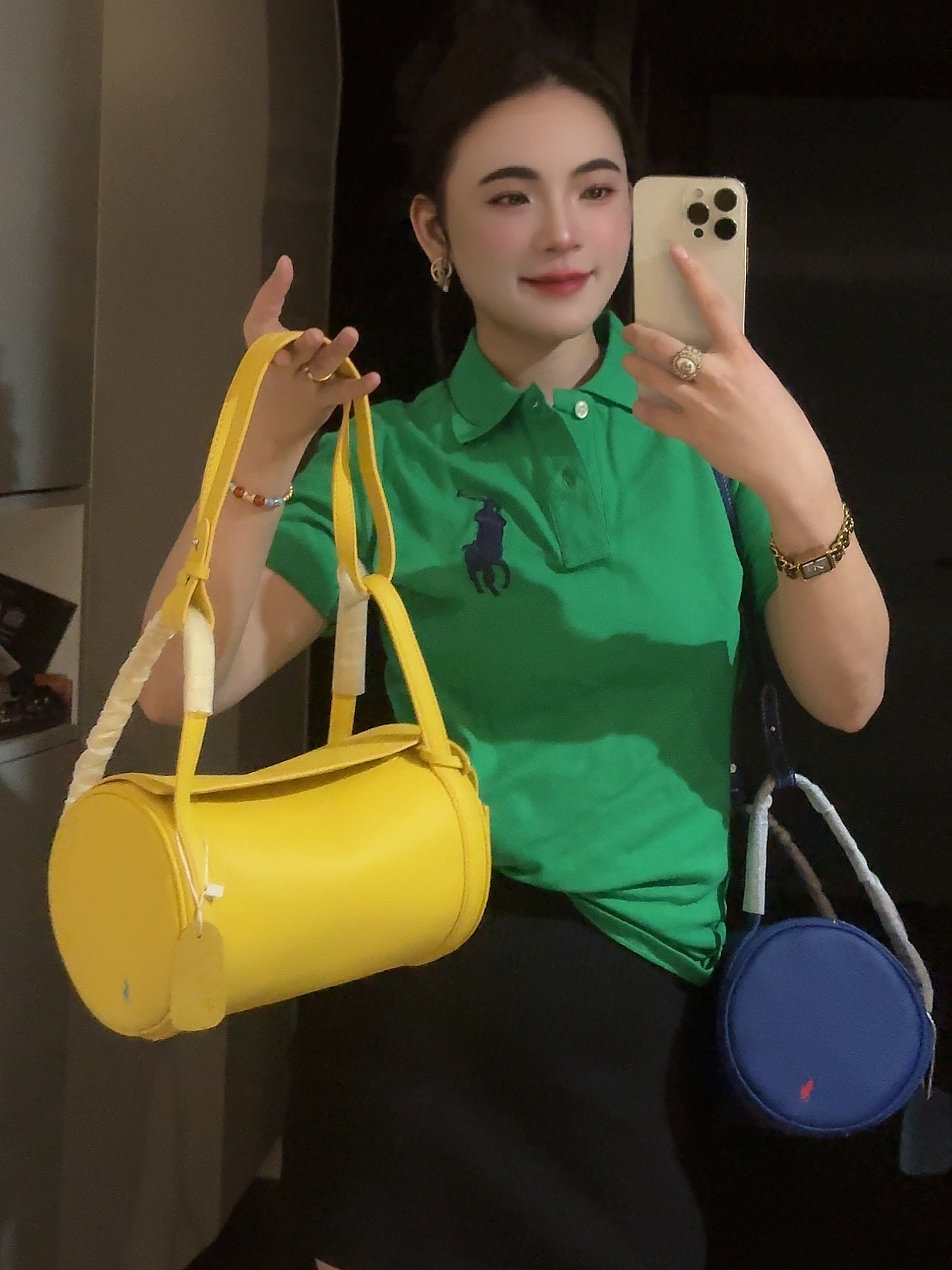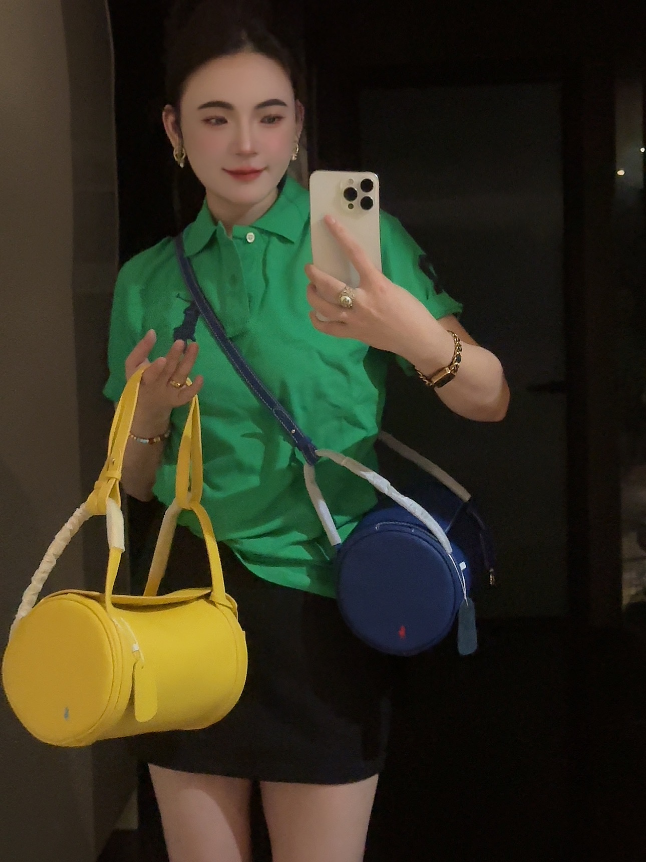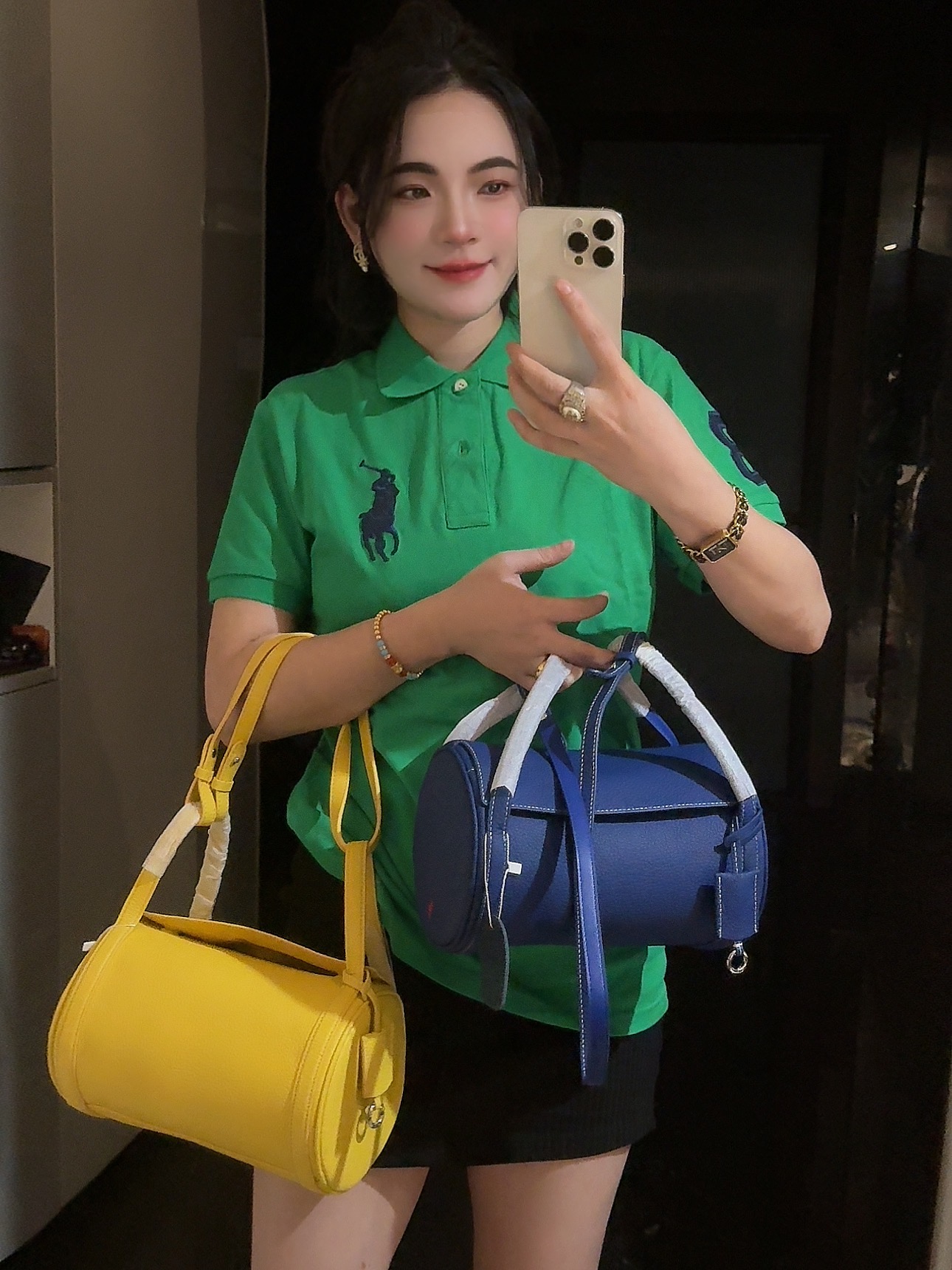 拉夫劳伦圆筒包双色入 高级荔枝纹牛皮十三种背法,小众控必入!包身走线全部采用同色明线缝制,工艺精致,非常考验做工!这个包的皮料和爱马仕一个皮料供货商,是百年皮料商进口过来的小牛皮,所以这个就很牛啊各位。