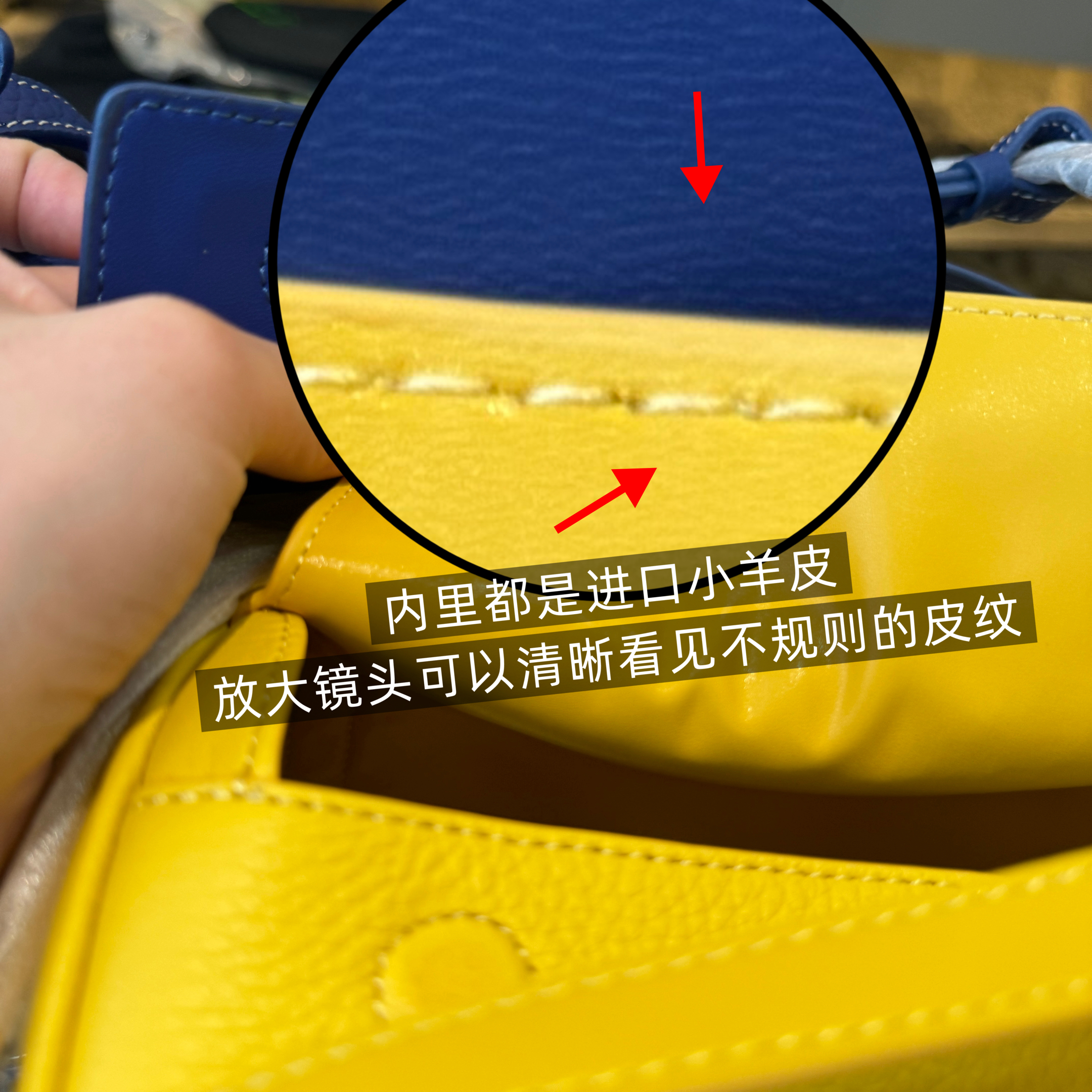 皮料表面有自然纹理,可以看得到那种天然的味道,这些都是国外才可以做到,意大利之所以有名,不是它的皮料有多好,而是他们处理皮料的工艺全球顶尖!特别高级,不是那种机器的皮料整个皮料光光的。 内里是细腻的进口羊皮!皮纹放大高清。不规则纹理 pu纹理就是非常规则的 大家按照这个方式区分即可。logo印烫
