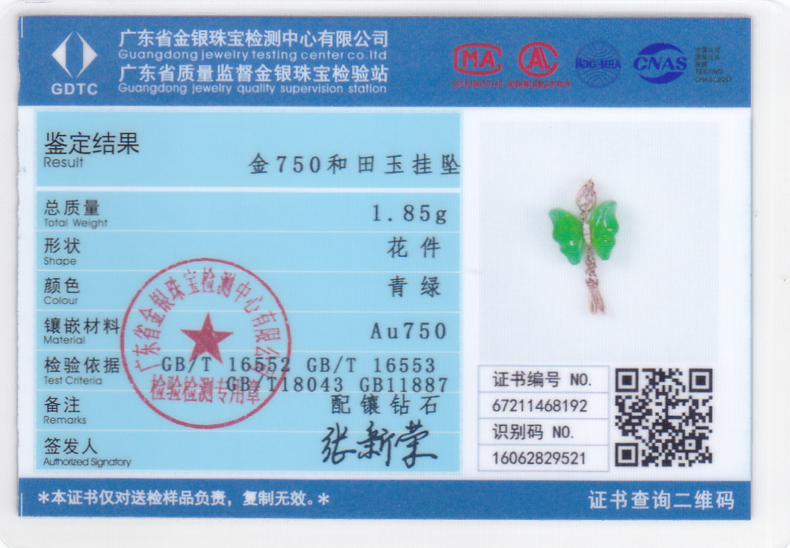 玉石尺寸:蝶12*14*5mm/苹果绿 配镶:钻石