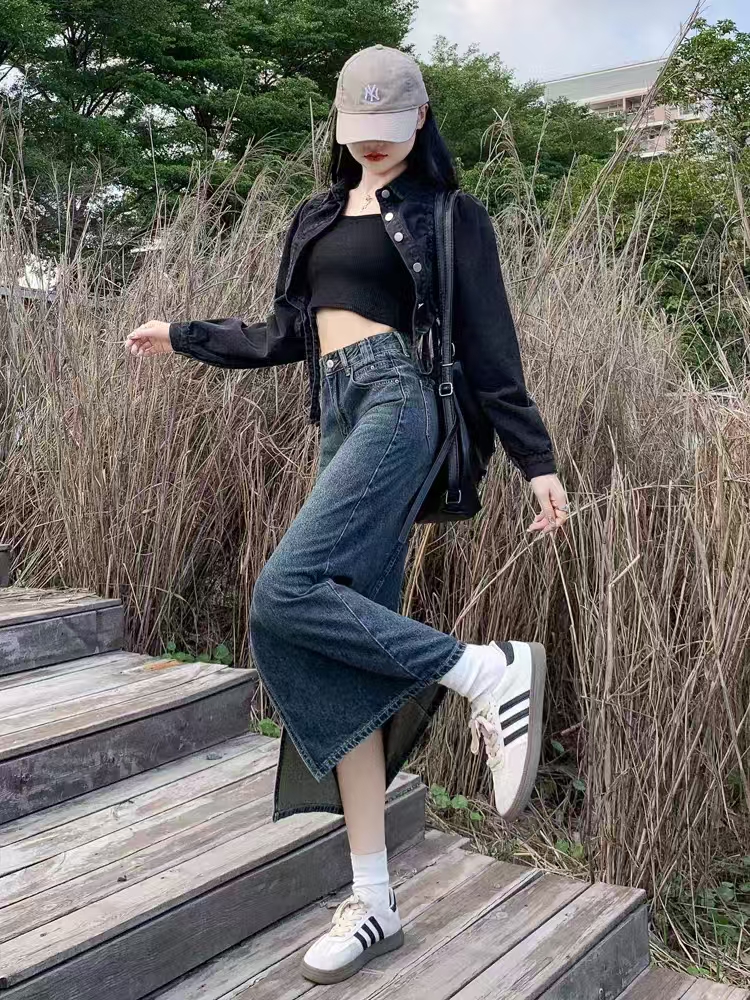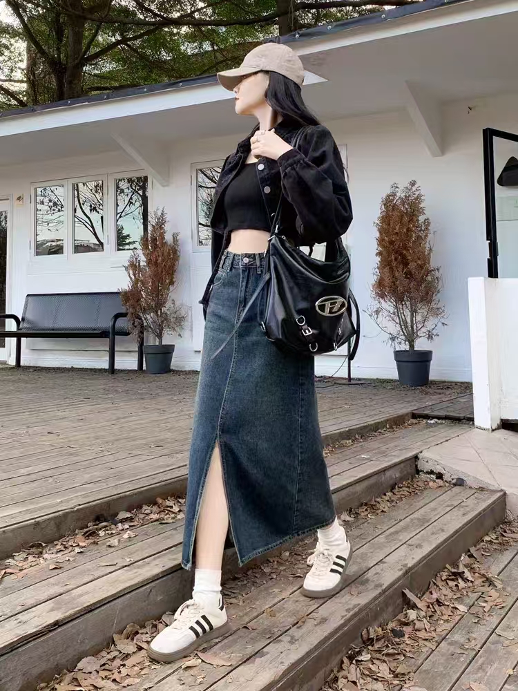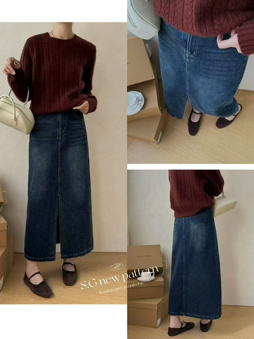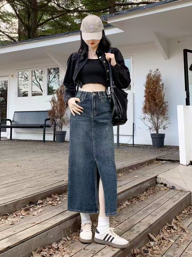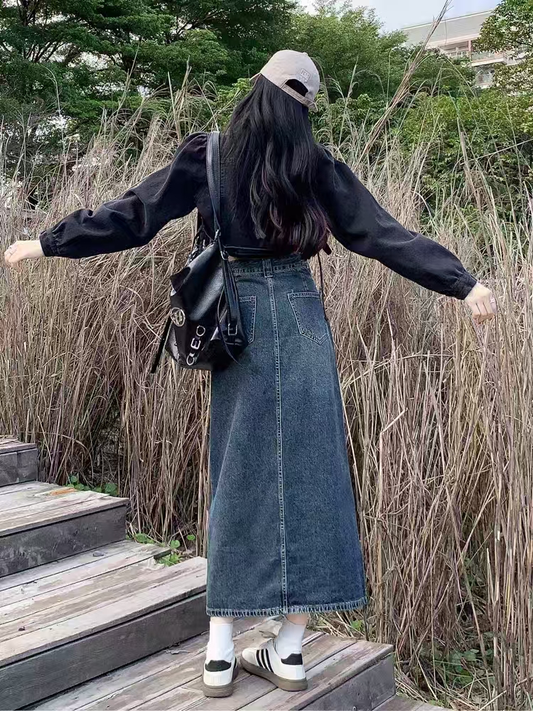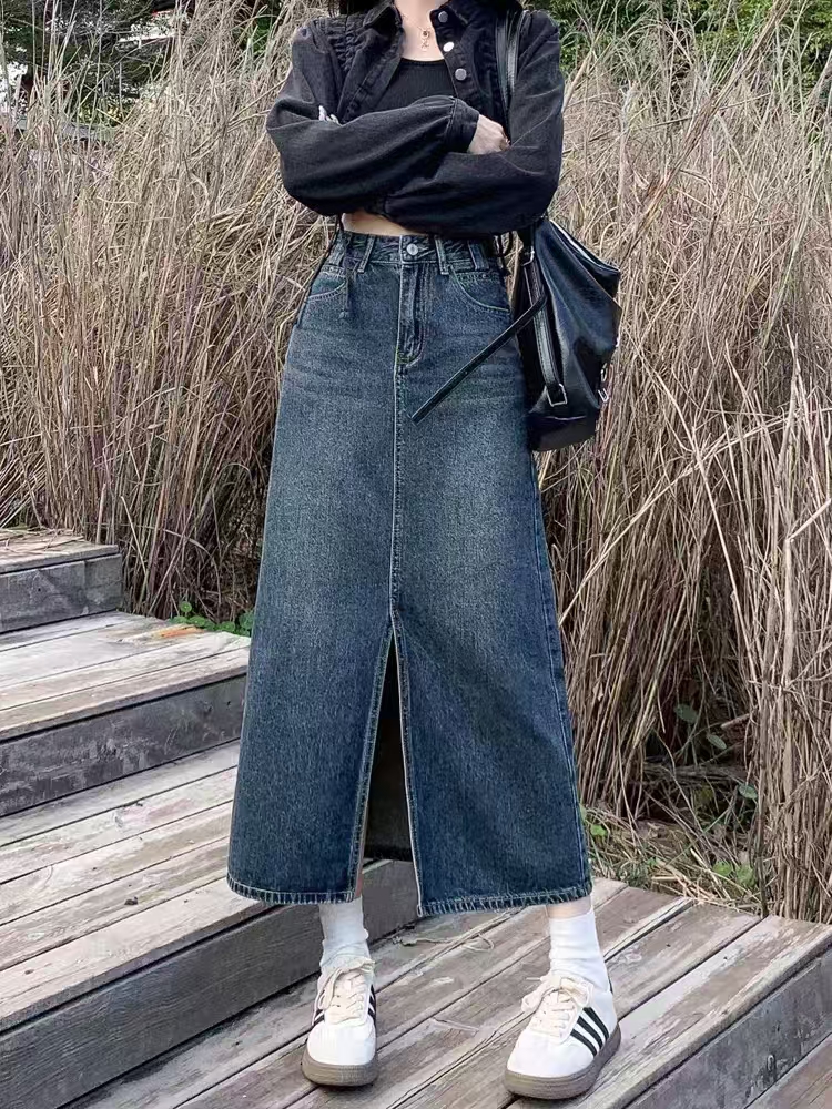 520活动促 爆款推荐~66101 前开叉A字长款牛仔长款半身裙-喜出