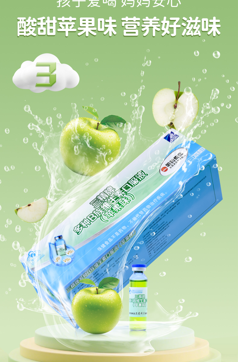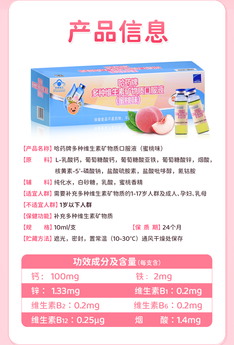哈药牌多种维生素矿物质口服液(蜜桃味)300ml(10ml/支*30支)/三精牌多种B族维生素口服液(苹果味)300ml(10ml/支*30支)