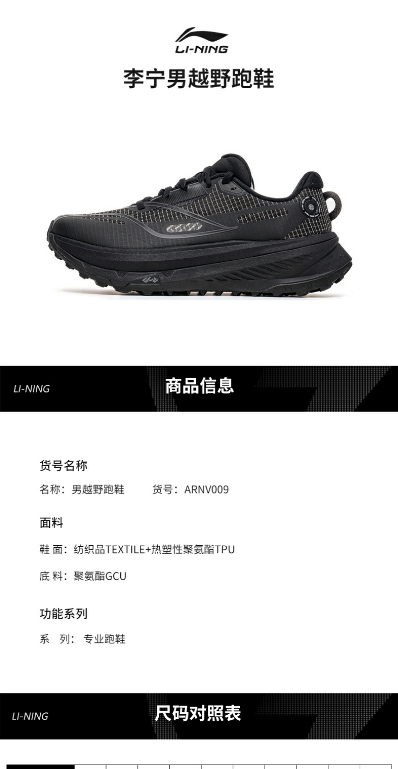 李宁的卢2男子䨻丝越野跑鞋ARNV009