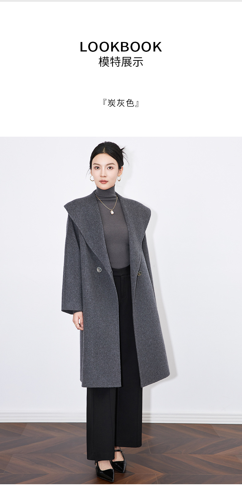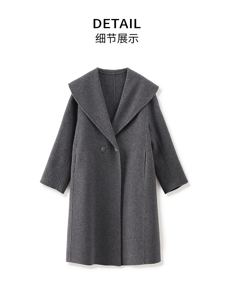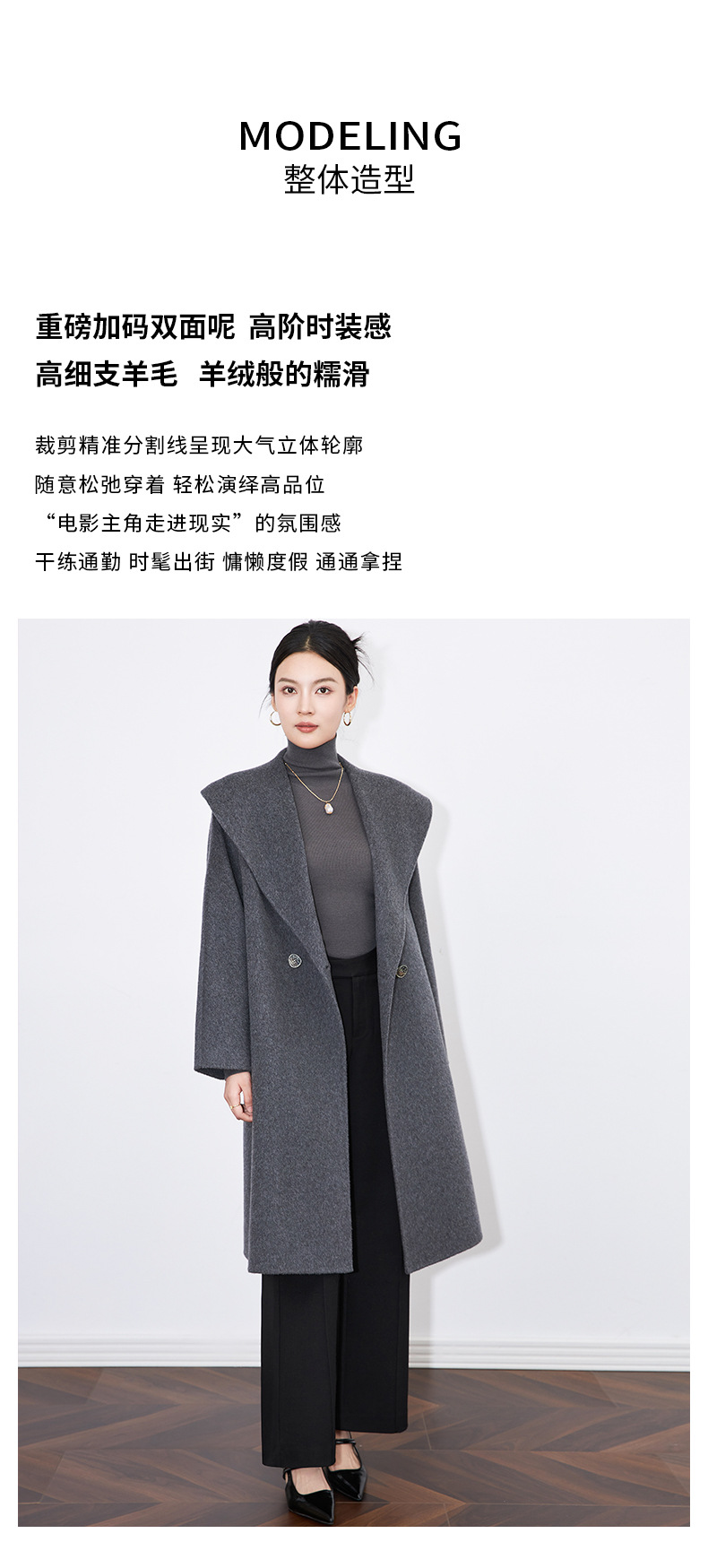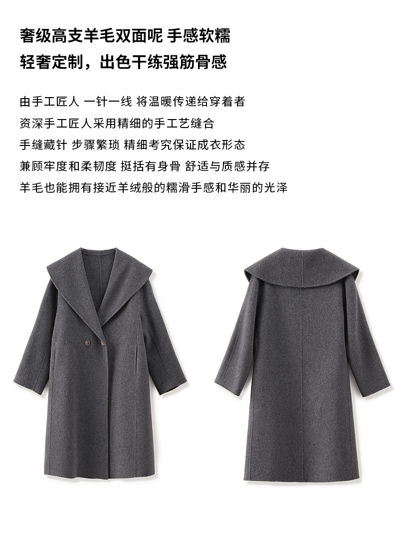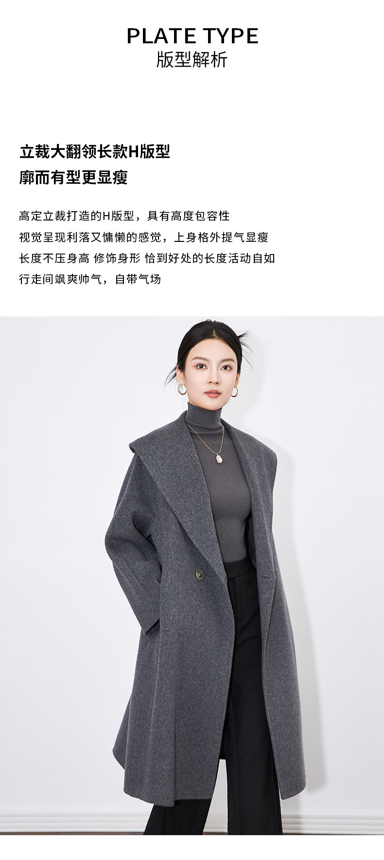 【高货wl】全新升级【铂金会员763/天猫1039/差价276】(03341) 洛诗琳慵懒简约时尚风大翻领纯羊毛双面呢宽松过膝大衣