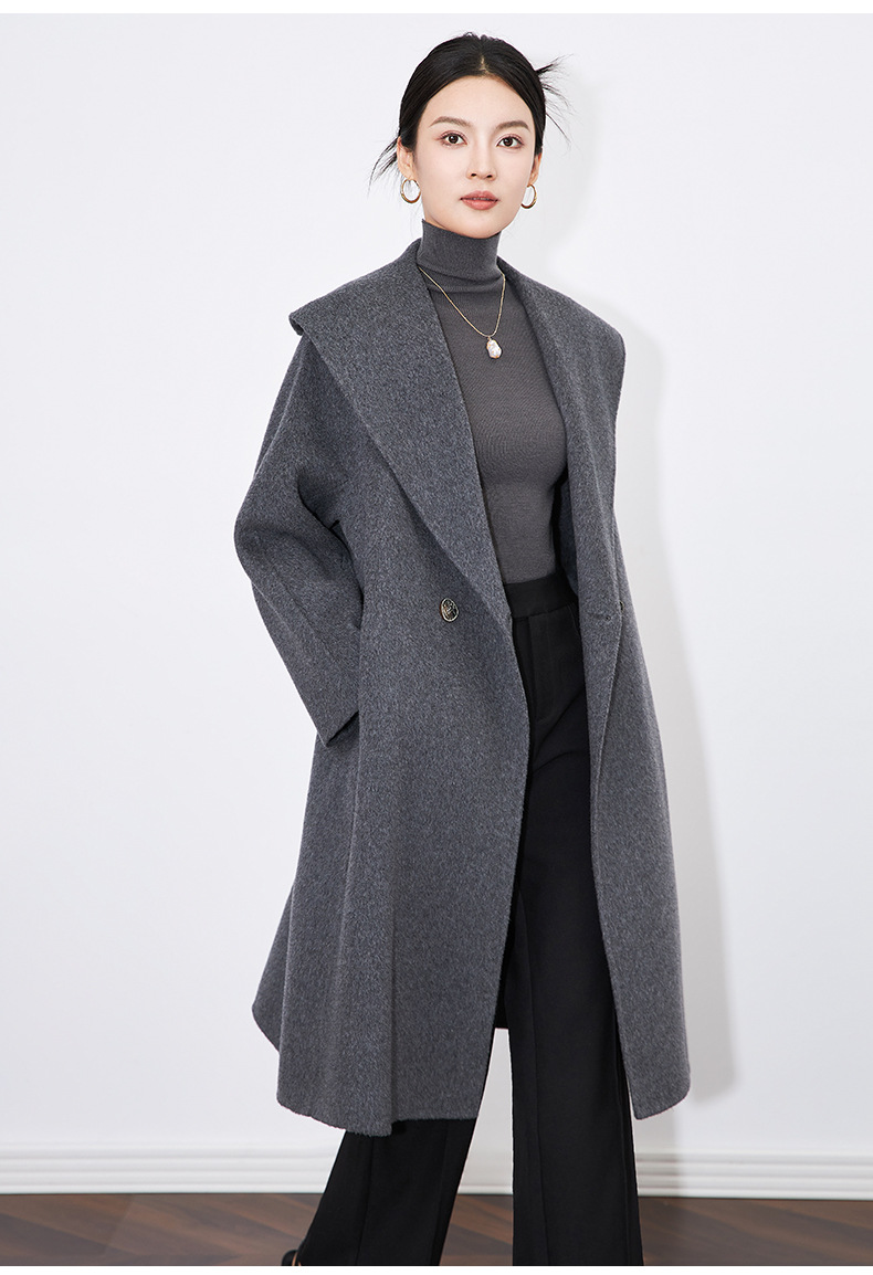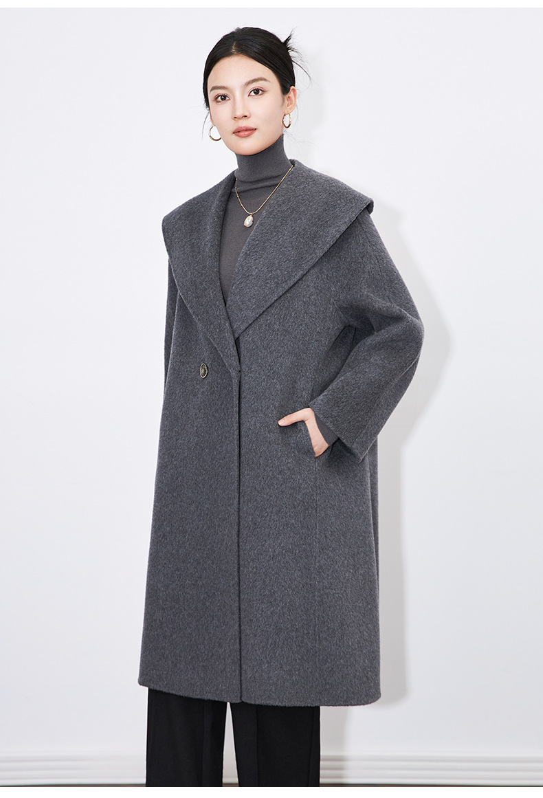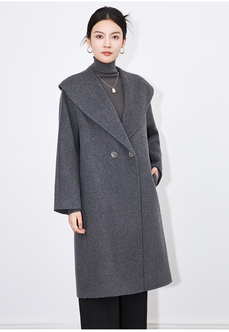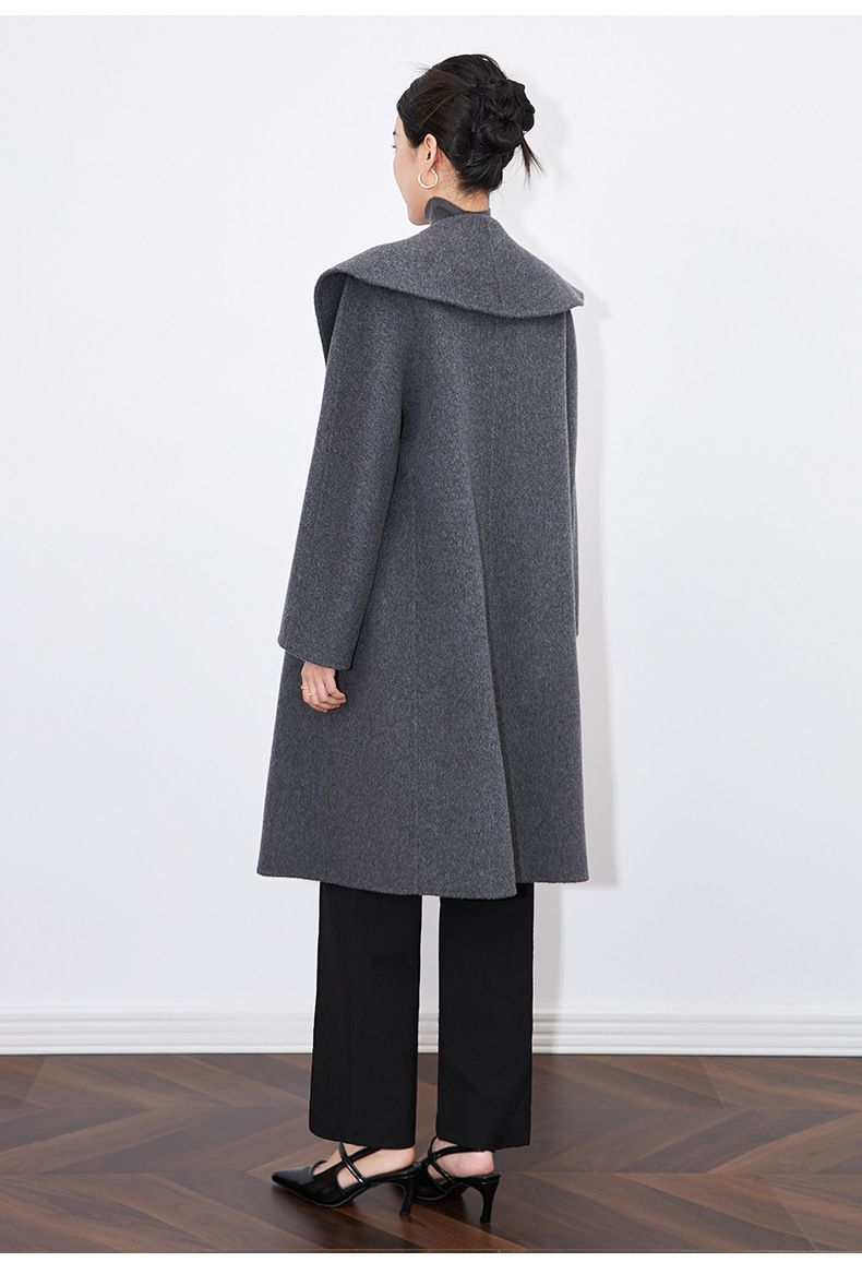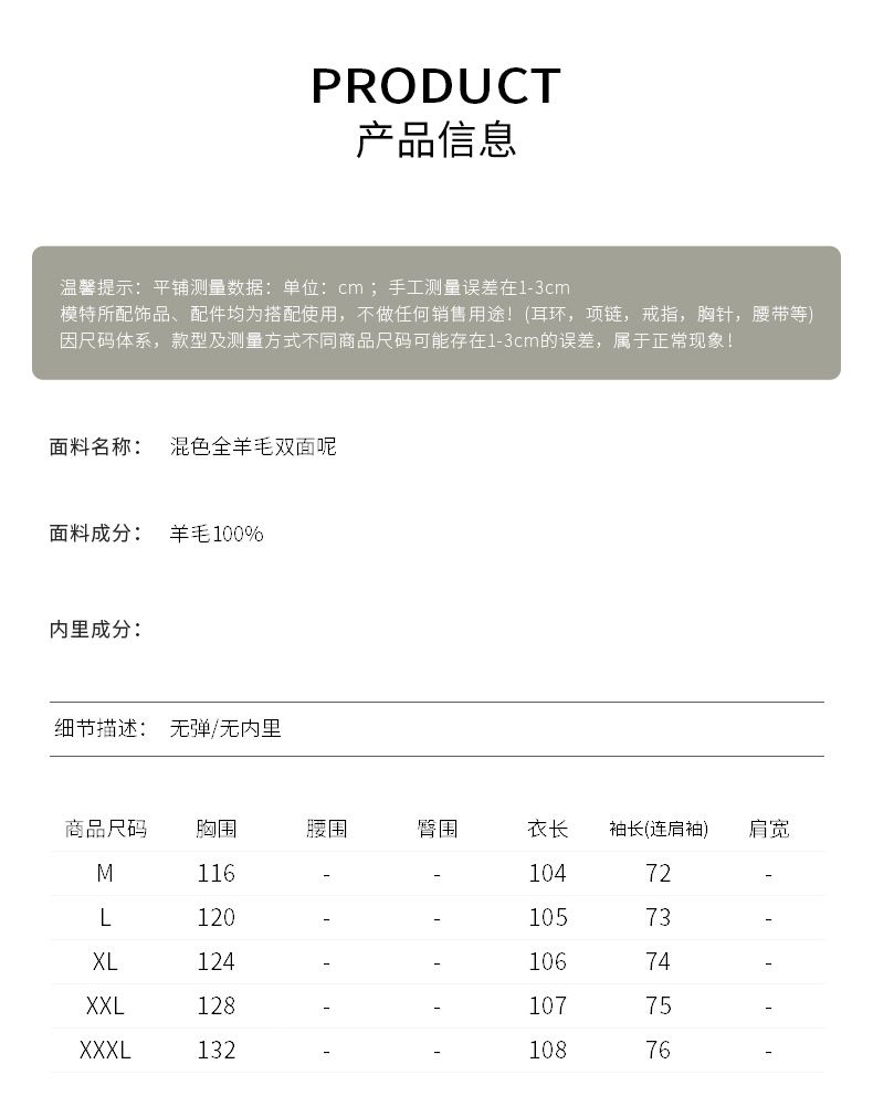 【高货wl】全新升级【铂金会员763/天猫1039/差价276】(03341) 洛诗琳慵懒简约时尚风大翻领纯羊毛双面呢宽松过膝大衣