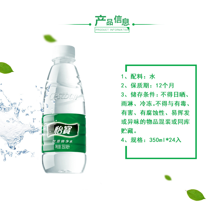 怡宝饮用纯净水350ml(整箱*24瓶)
