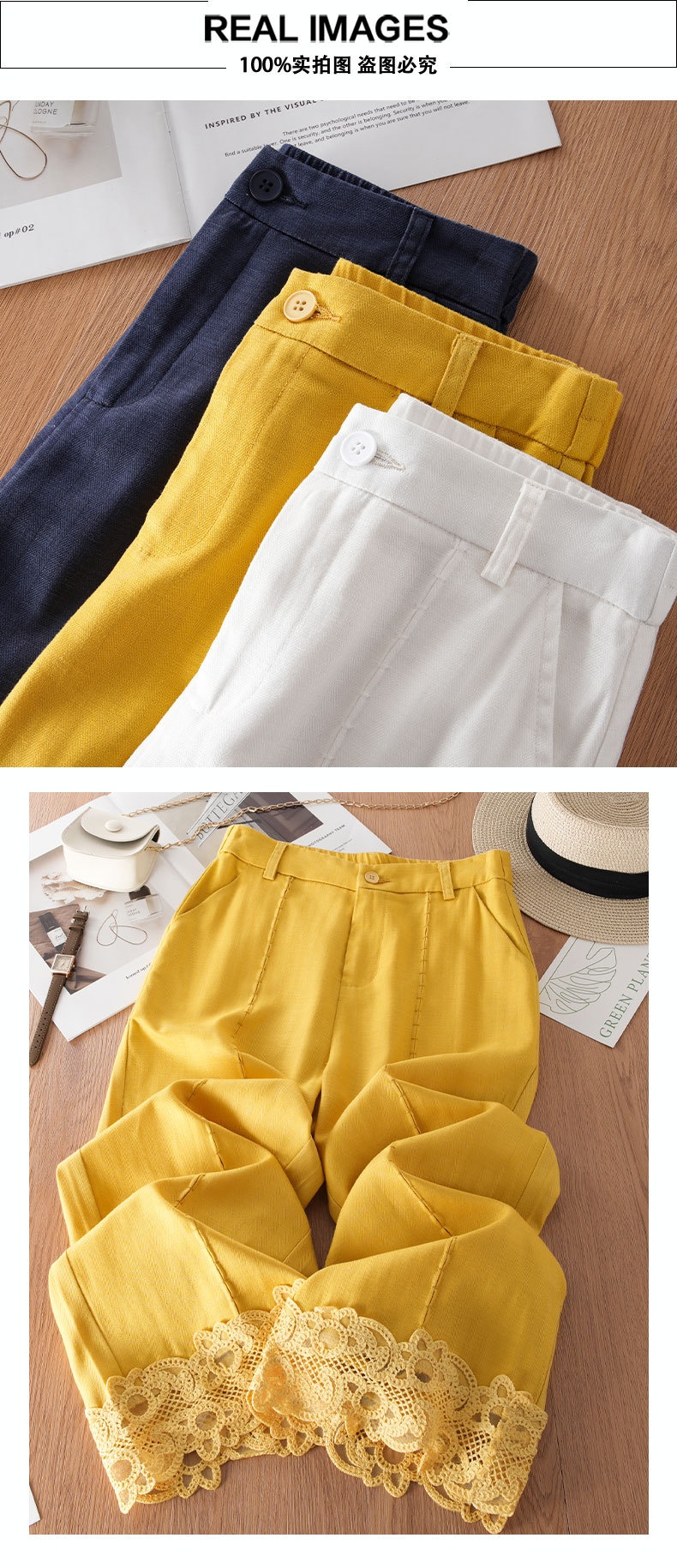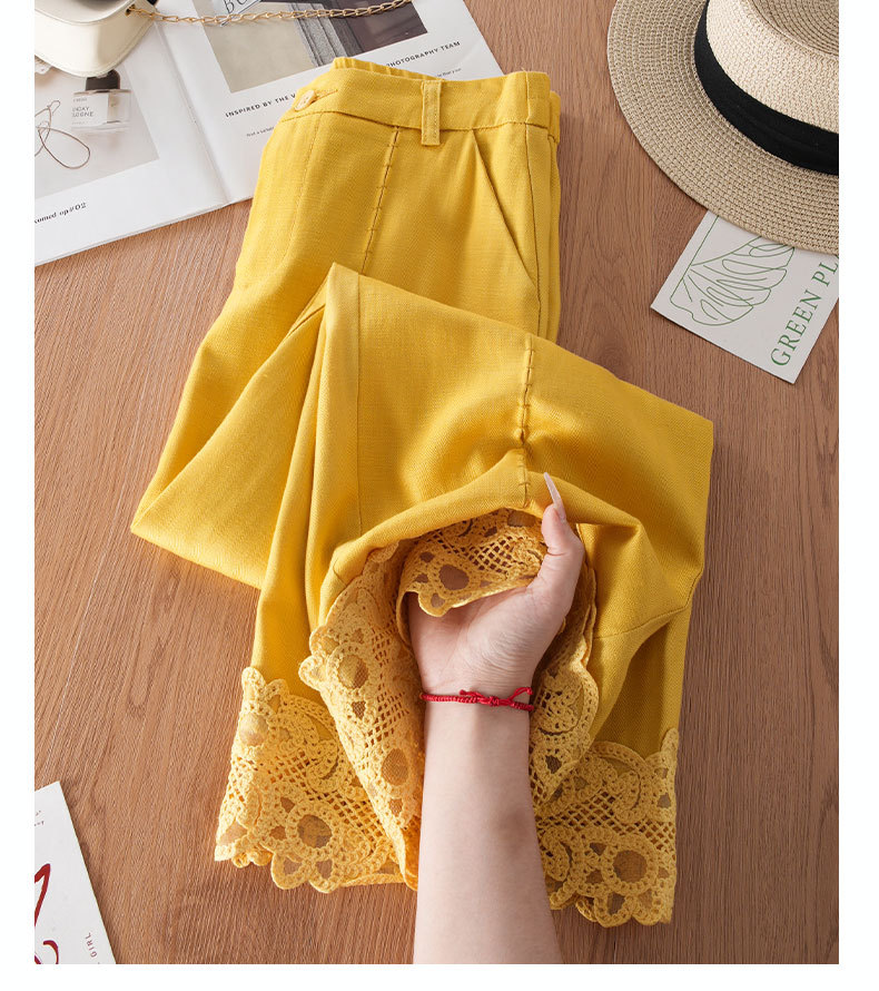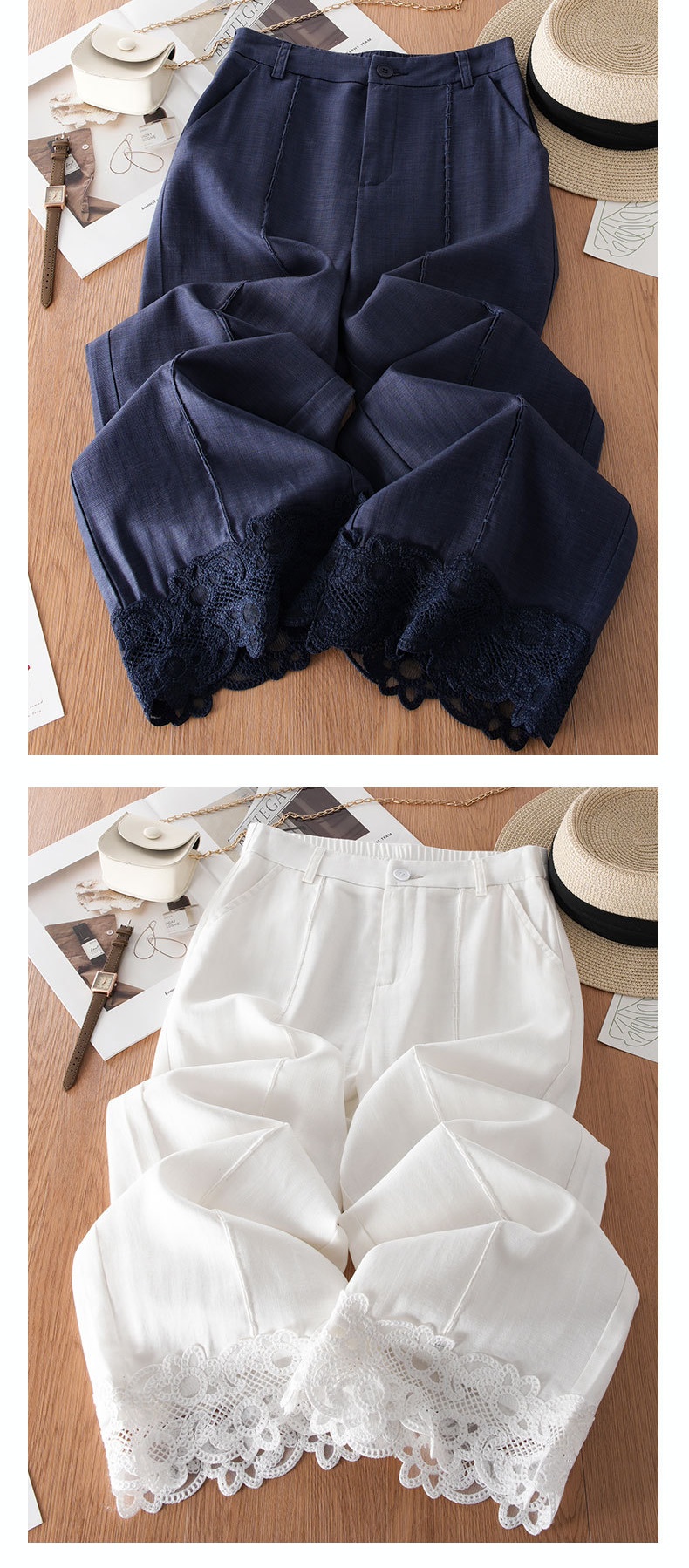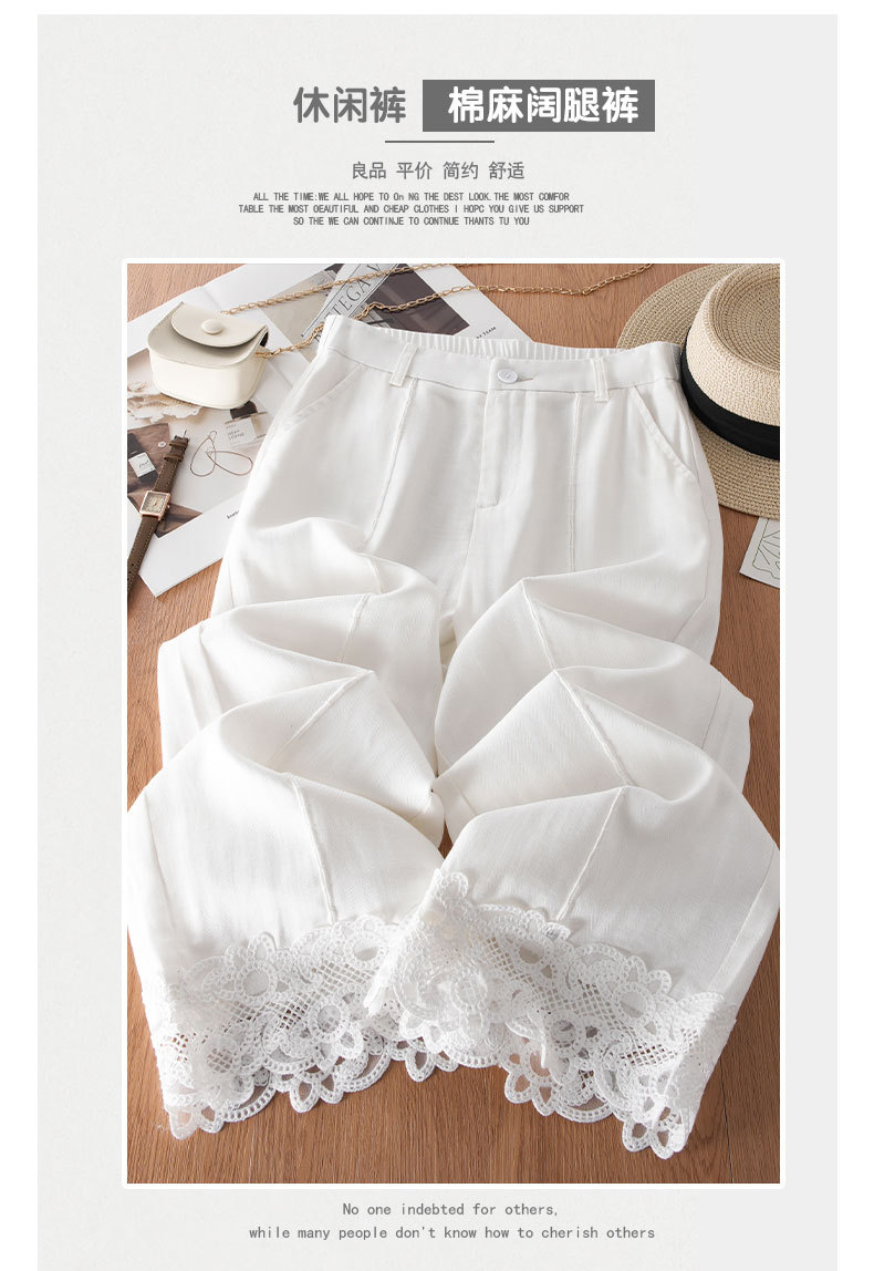 「自」全新升级【铂金会员201/天猫269/差价68】(00642)洛诗琳气质蕾丝拼接休闲阔腿裤2025夏季新款垂感修身直筒裤