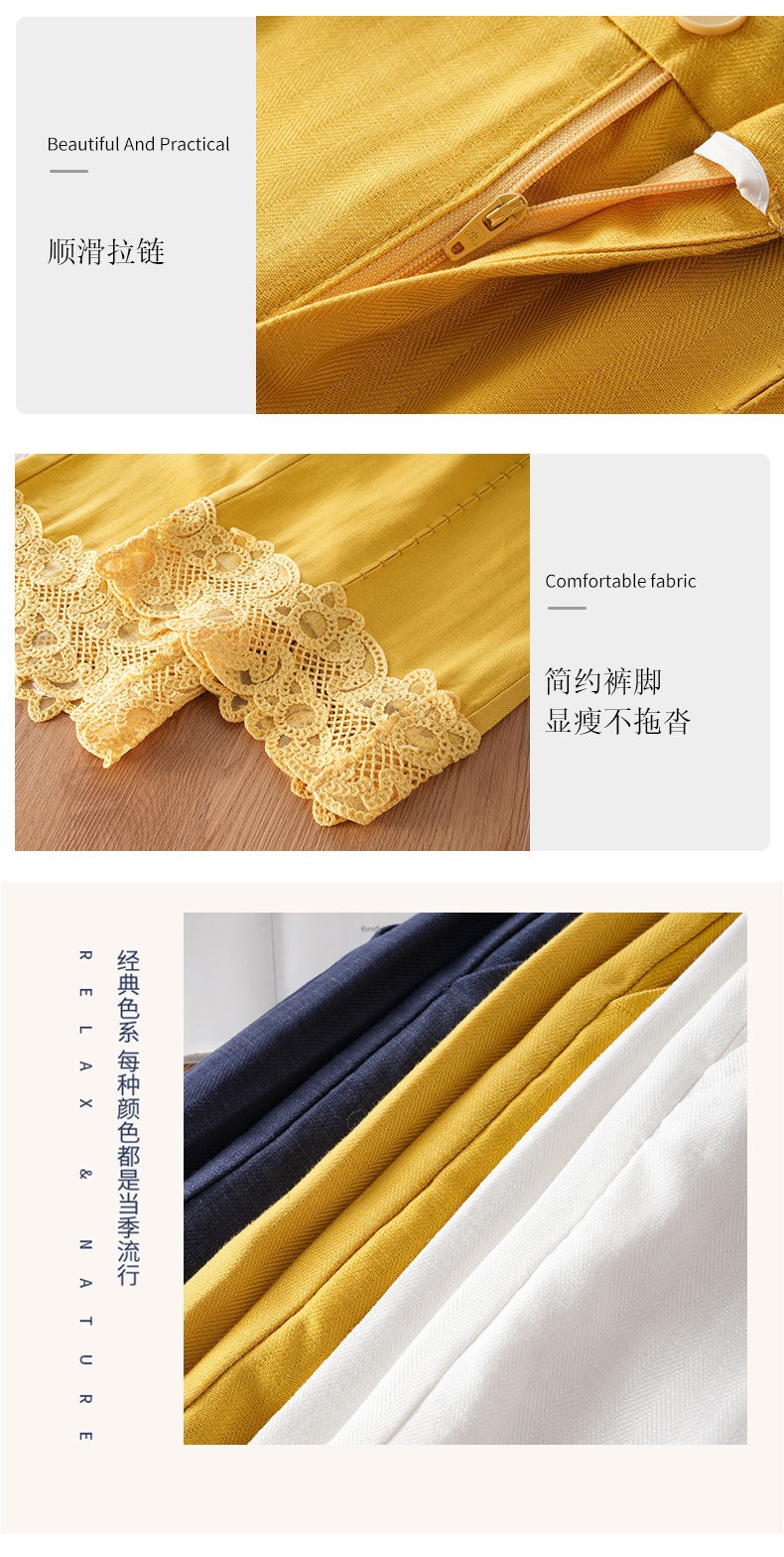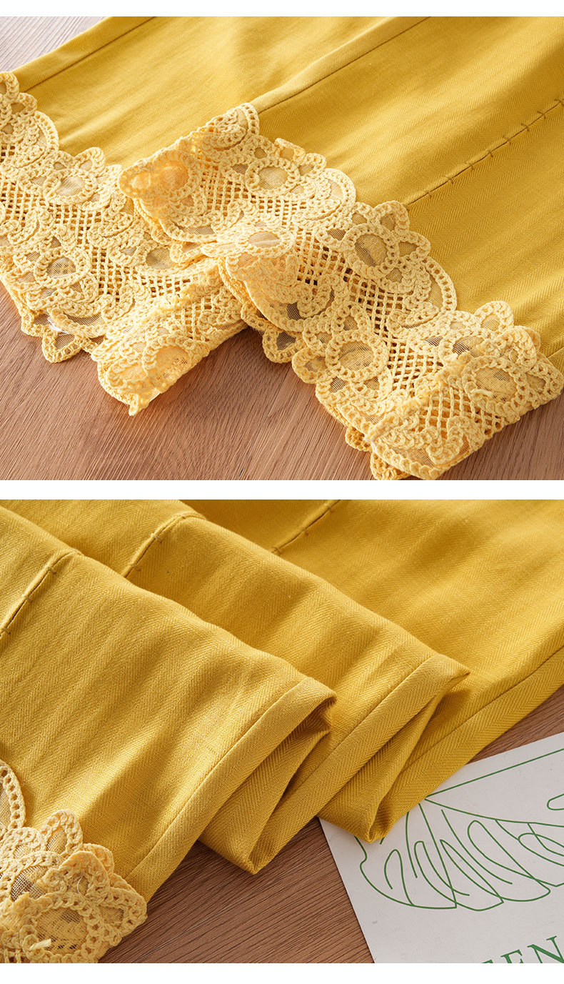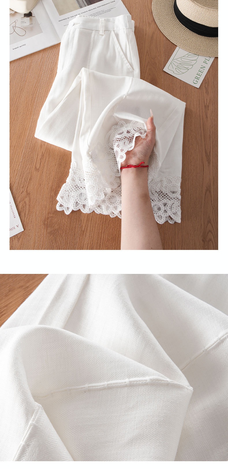 「自」全新升级【铂金会员201/天猫269/差价68】(00642)洛诗琳气质蕾丝拼接休闲阔腿裤2025夏季新款垂感修身直筒裤