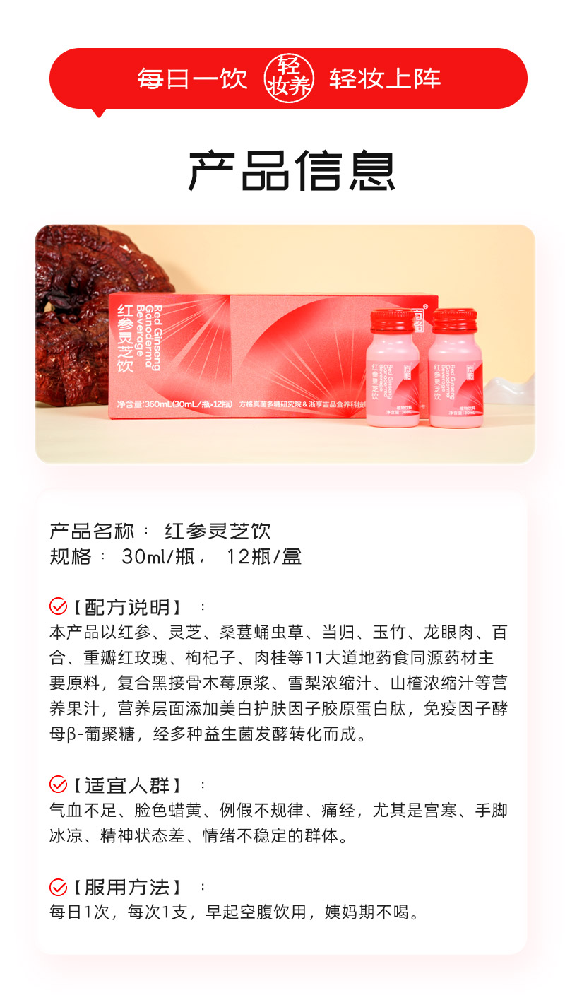 胡庆余堂 红参灵芝饮 30ml 便携瓶装