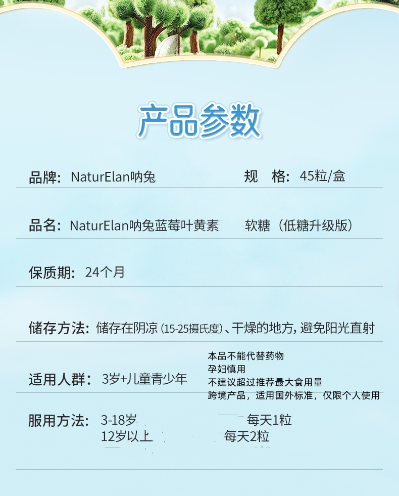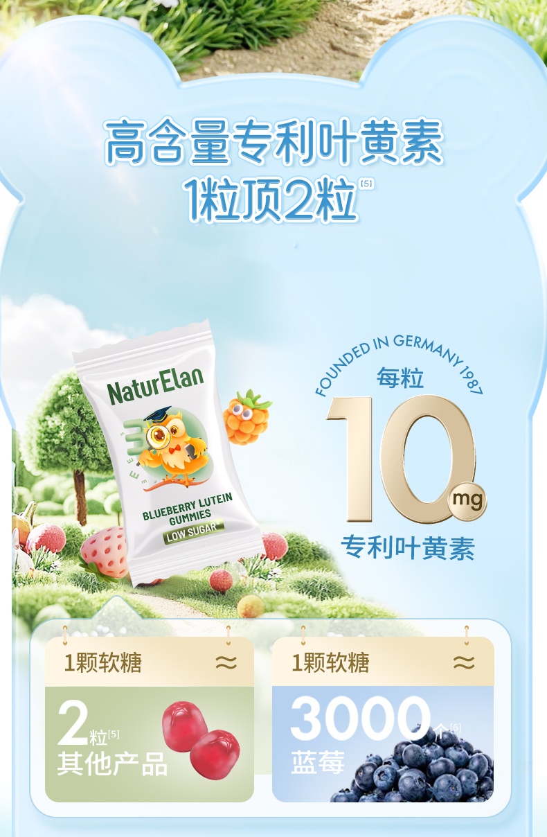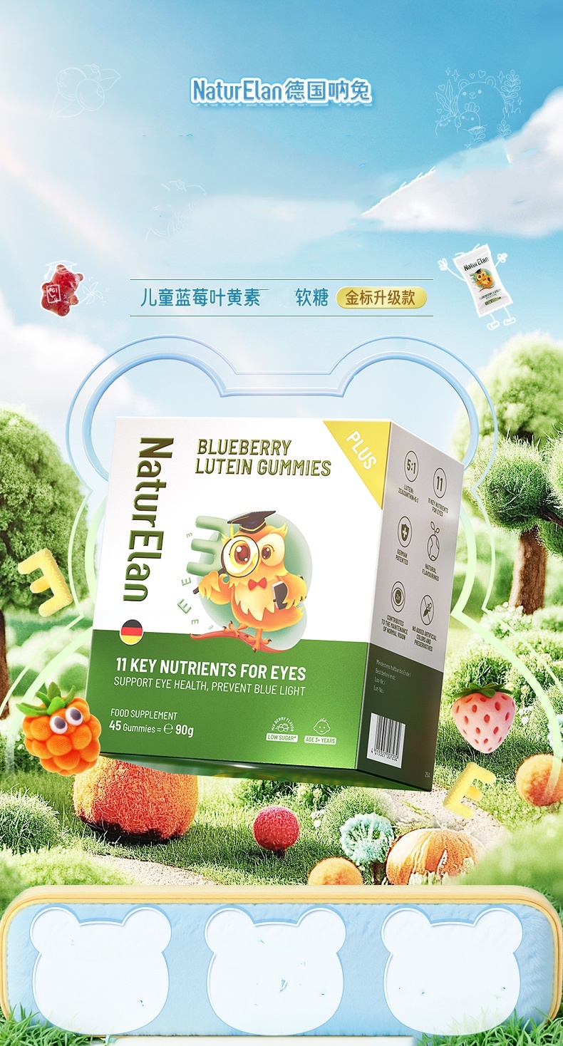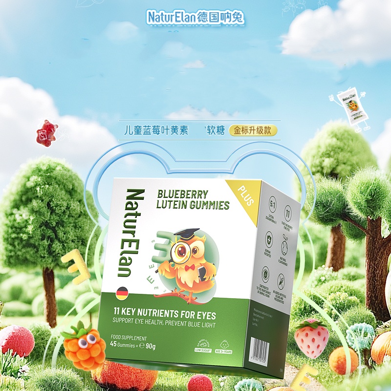 【跨境】德国 NaturElan呐兔 蓝莓叶黄素软糖 45粒/盒(金标低糖升级版)