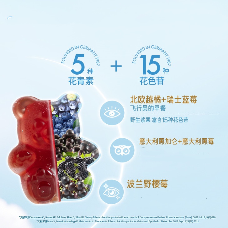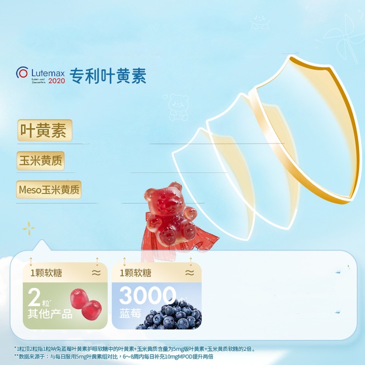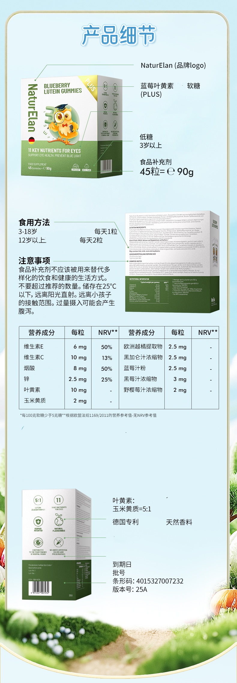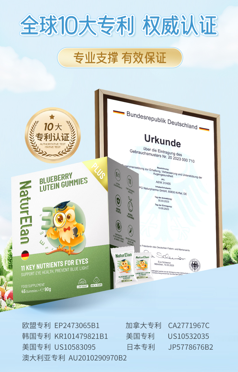 【跨境】德国 NaturElan呐兔 蓝莓叶黄素软糖 45粒/盒(金标低糖升级版)