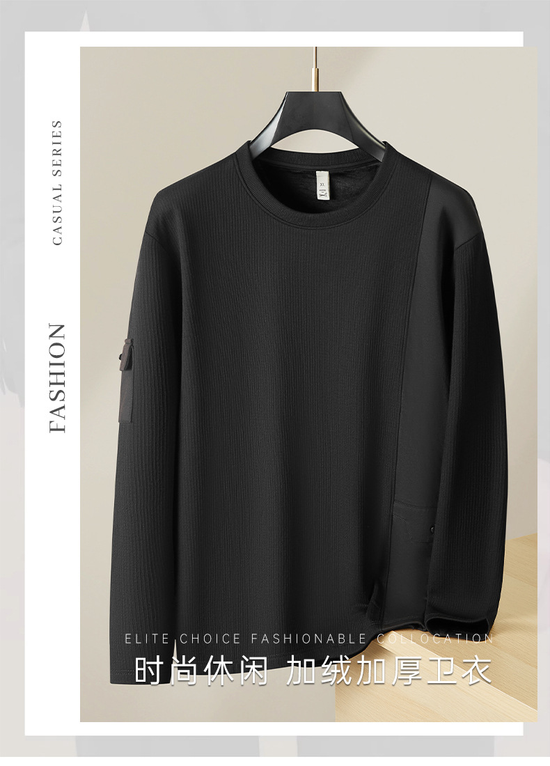 【加绒】【DDP】大依优型大码男装圆领加绒长袖T恤加绒卫衣休闲百搭加肥加大码