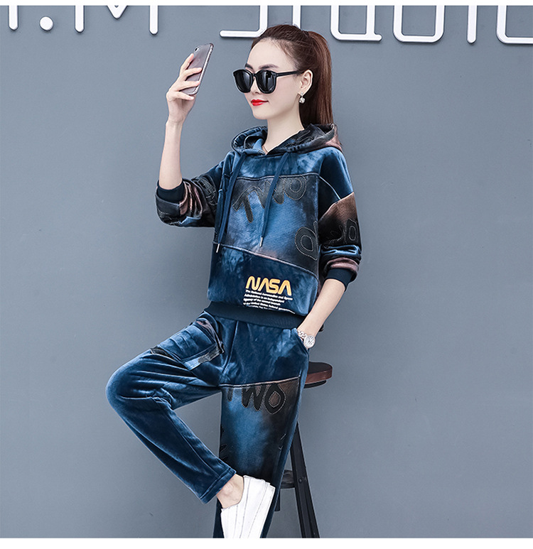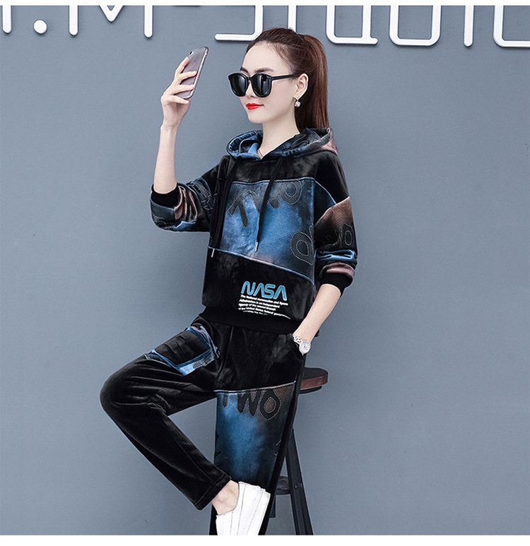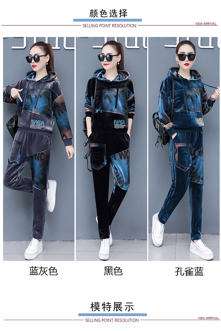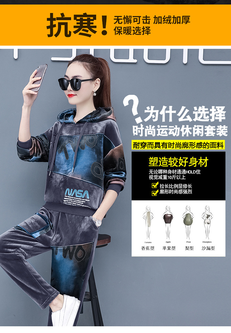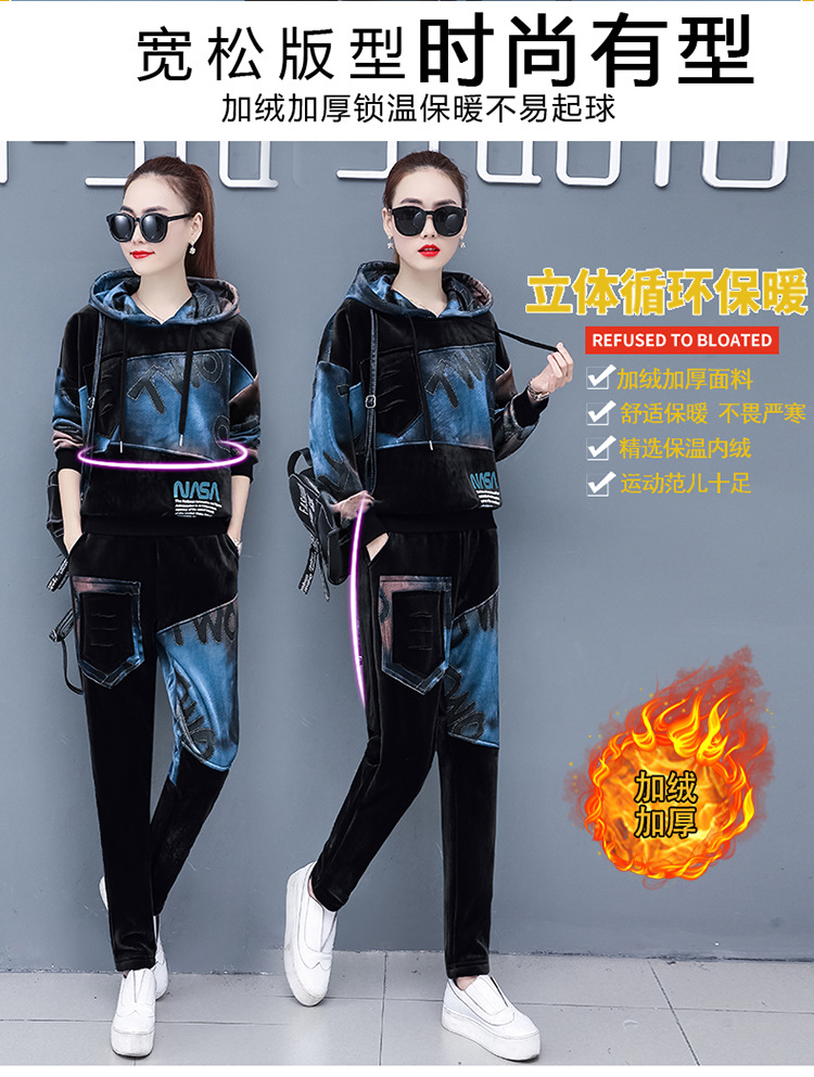 HPS-719秋冬新款时尚休闲运动服卫衣加绒加厚两件套