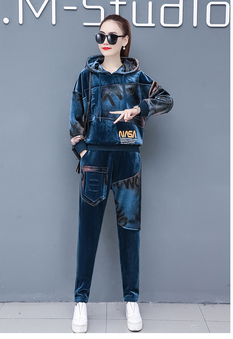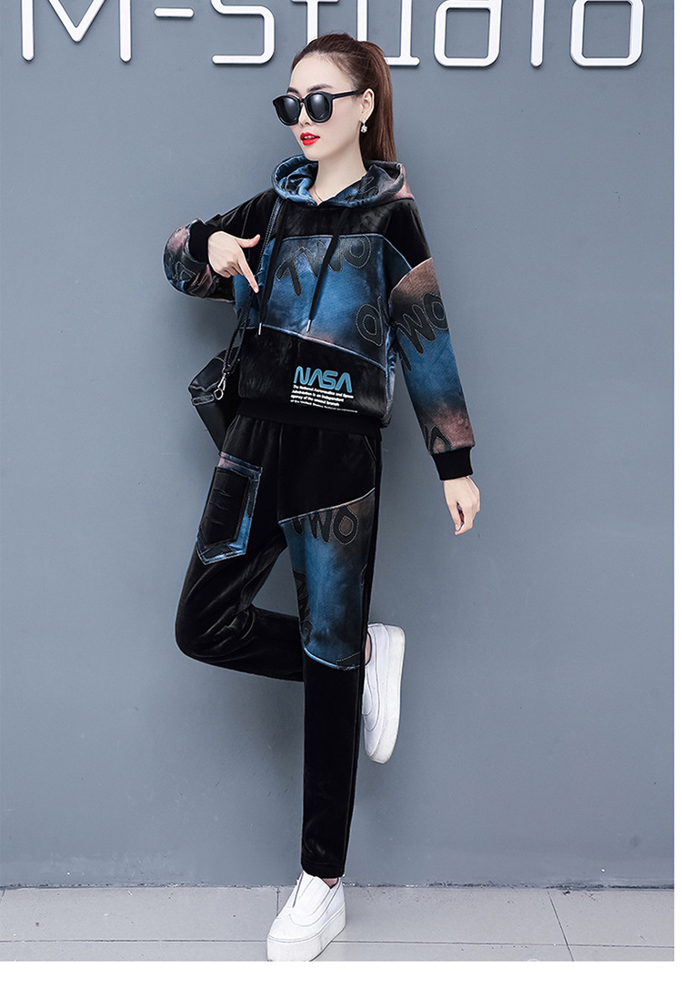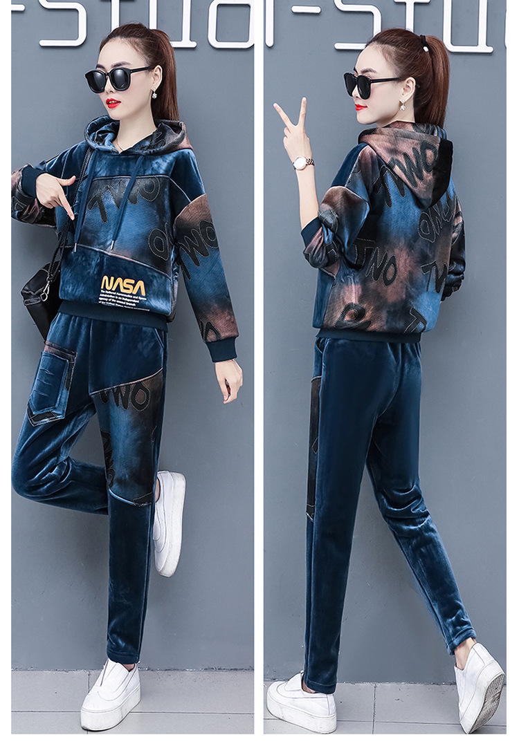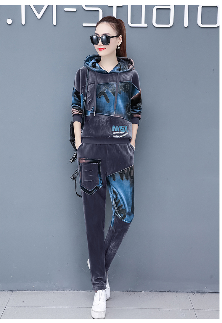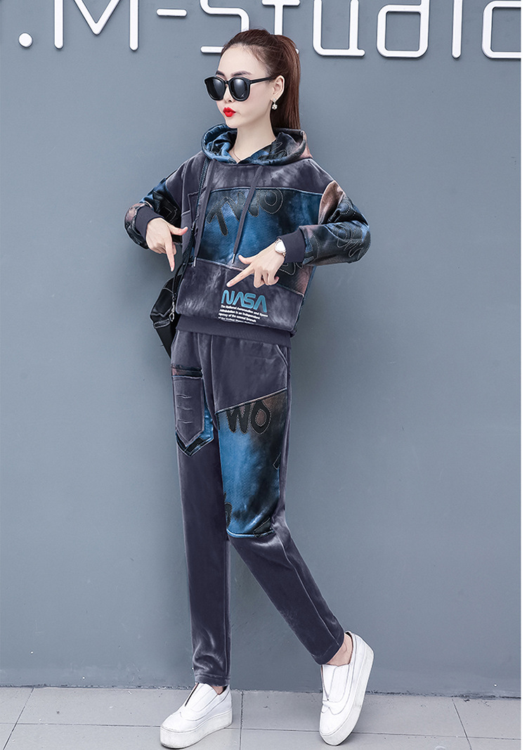 HPS-719秋冬新款时尚休闲运动服卫衣加绒加厚两件套