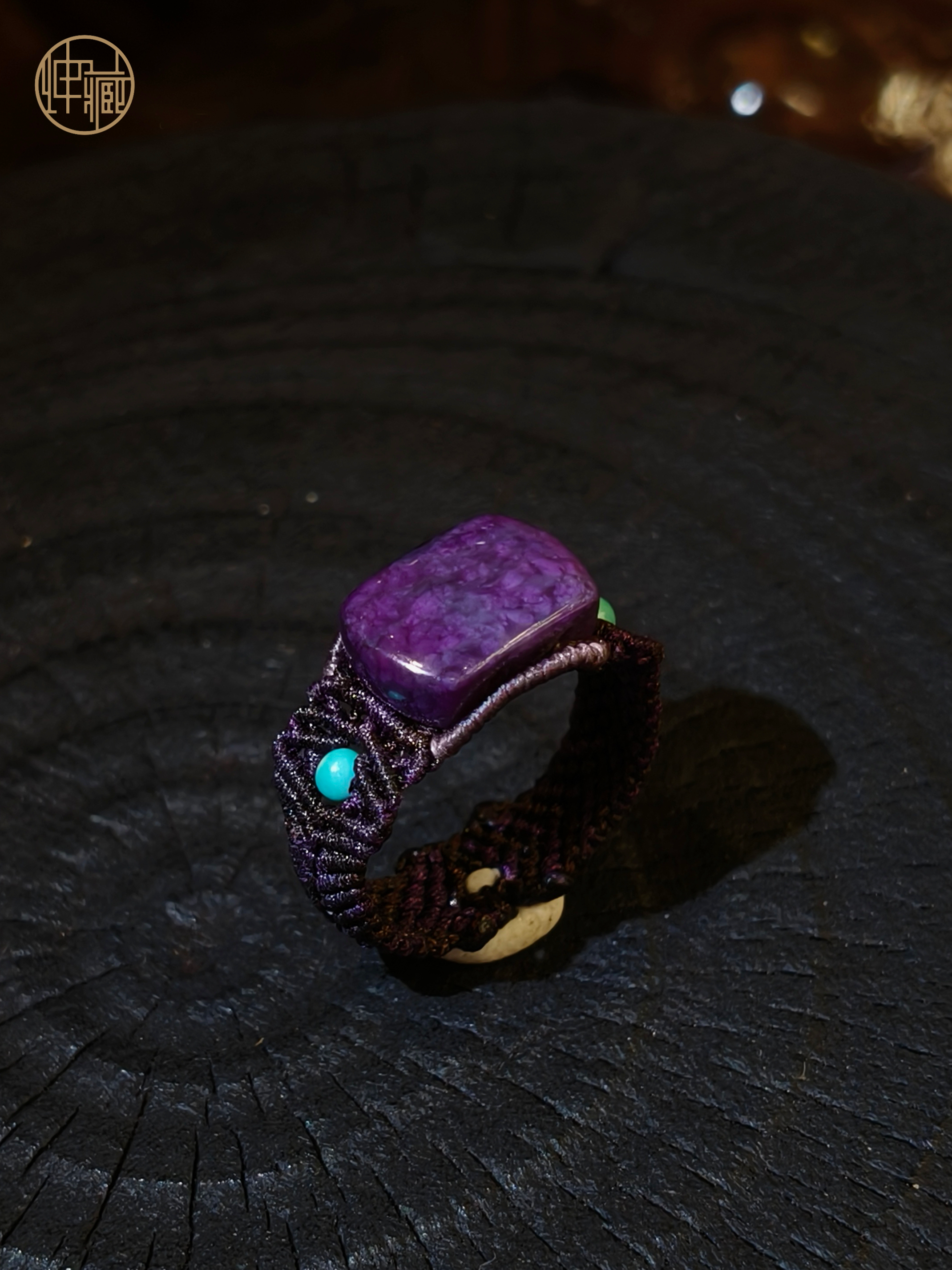 品名:舒俱徕配绿松石小圆珠编艺戒指一对