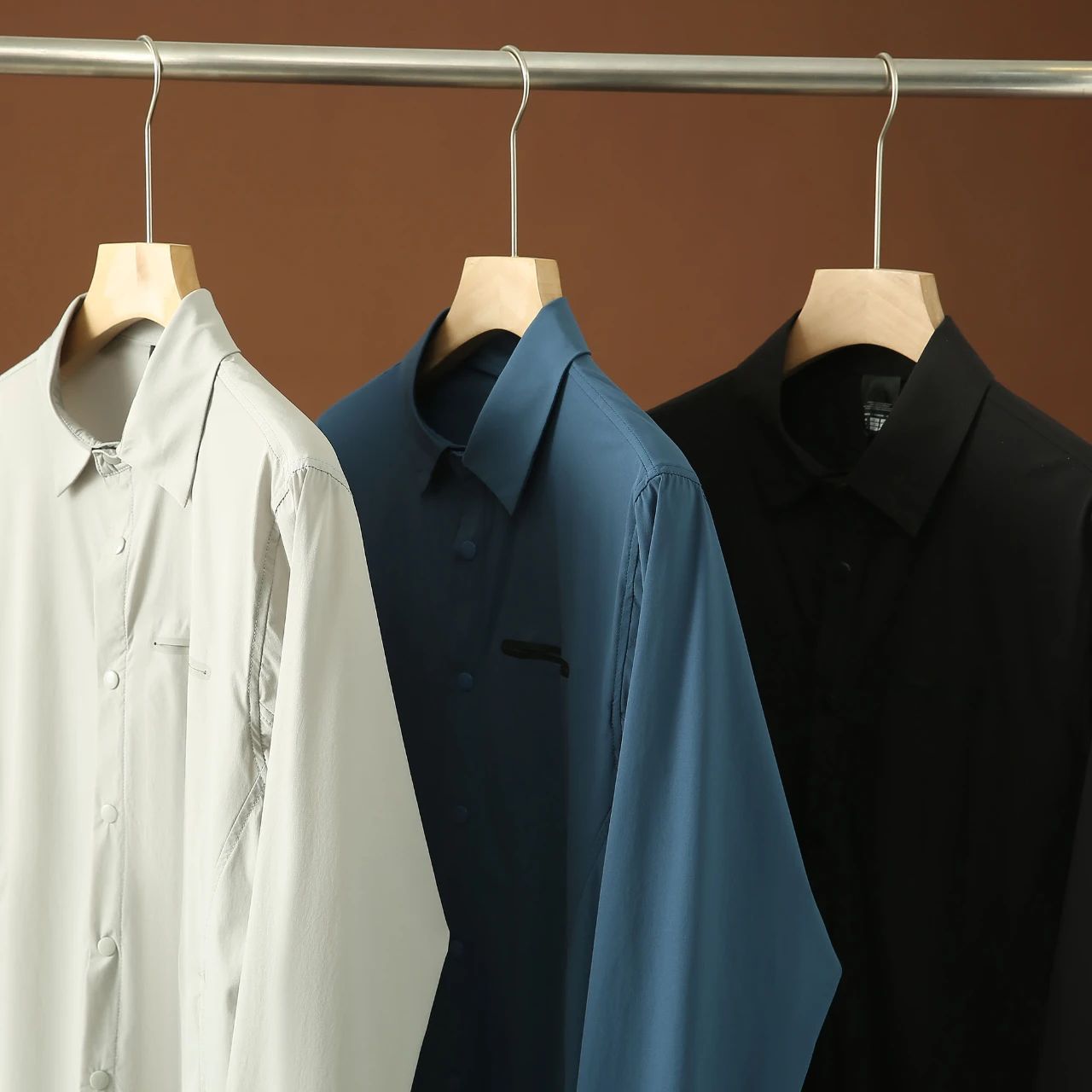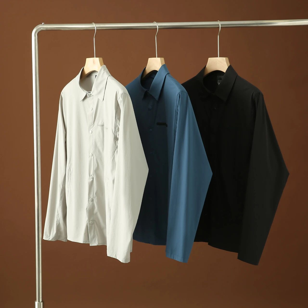 都市日常与商务出行穿着的长袖衬衫。