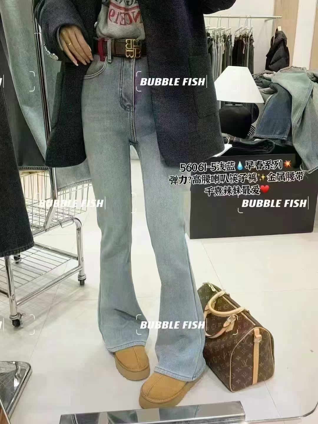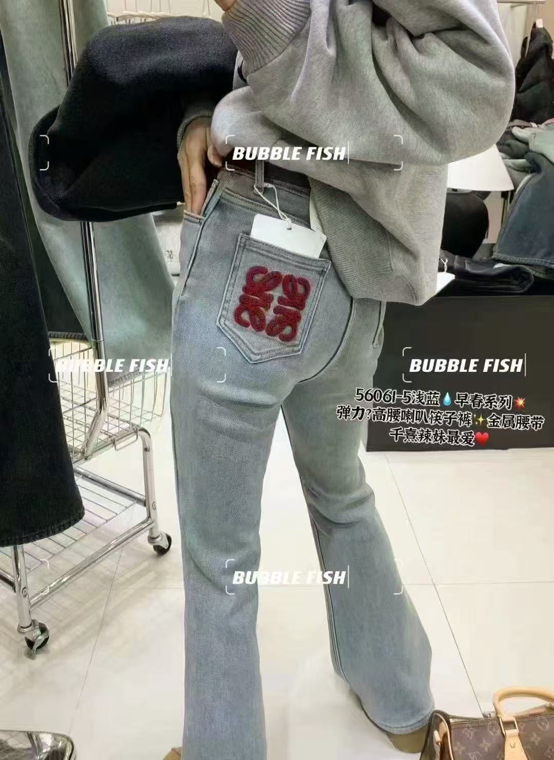 中秋大力度清仓~(不支持退)送腰带【牛仔系】春-D弹力中国结刺绣爆款显瘦微喇裤筷子裤-56061-喜出