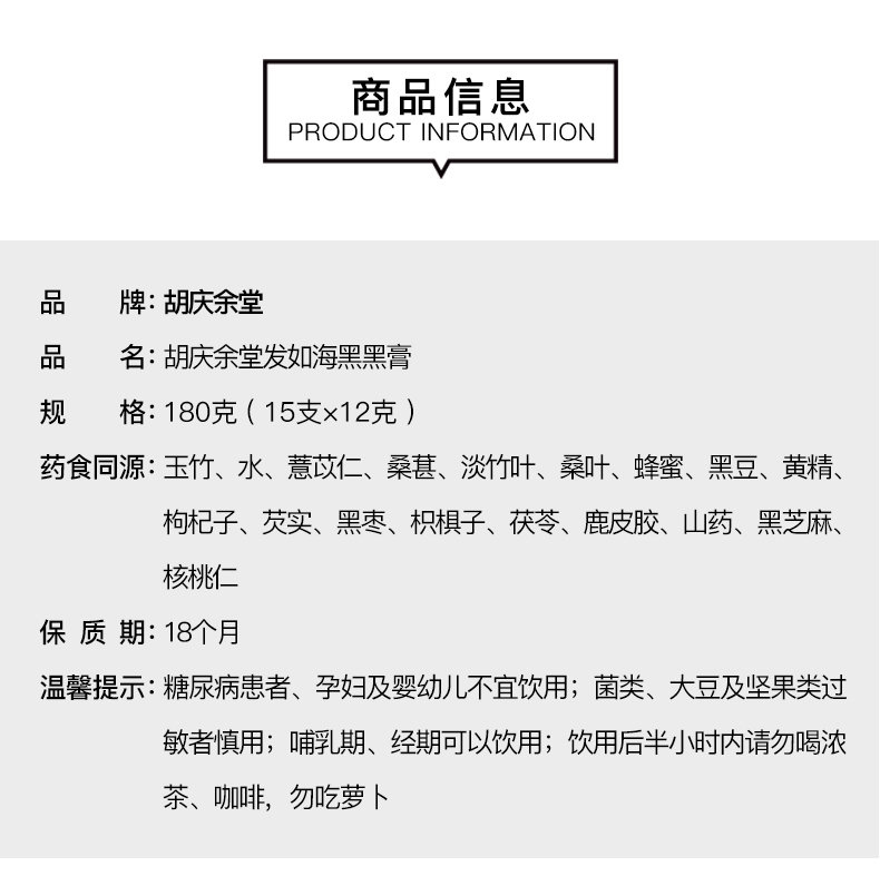 胡庆余堂 发如海黑黑膏 15支/盒 商品图4
