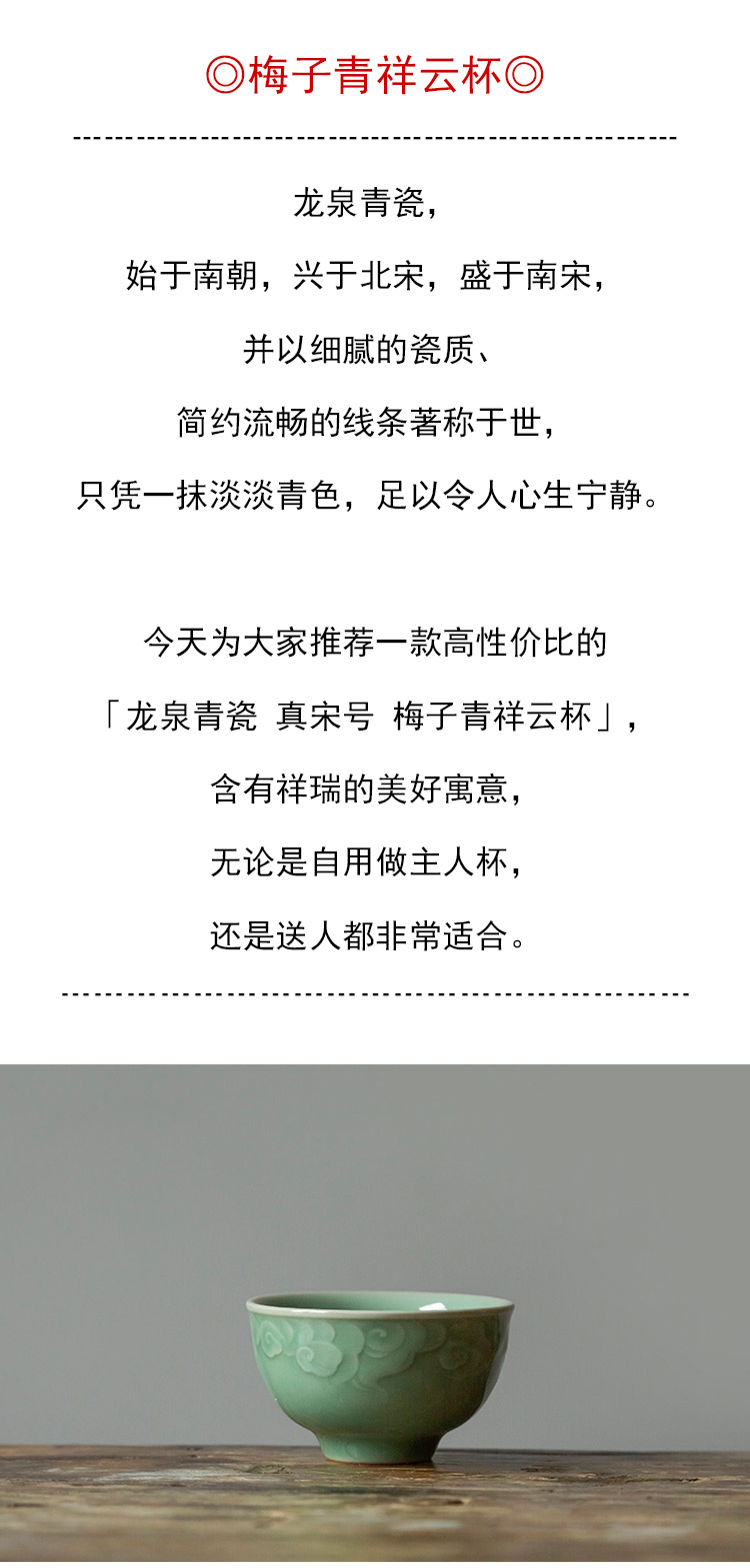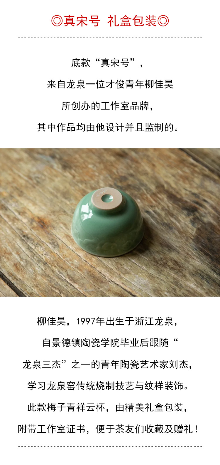 茶香记 真宋号 梅子青祥云杯 青碧盈润 寓意祥瑞 礼盒包装