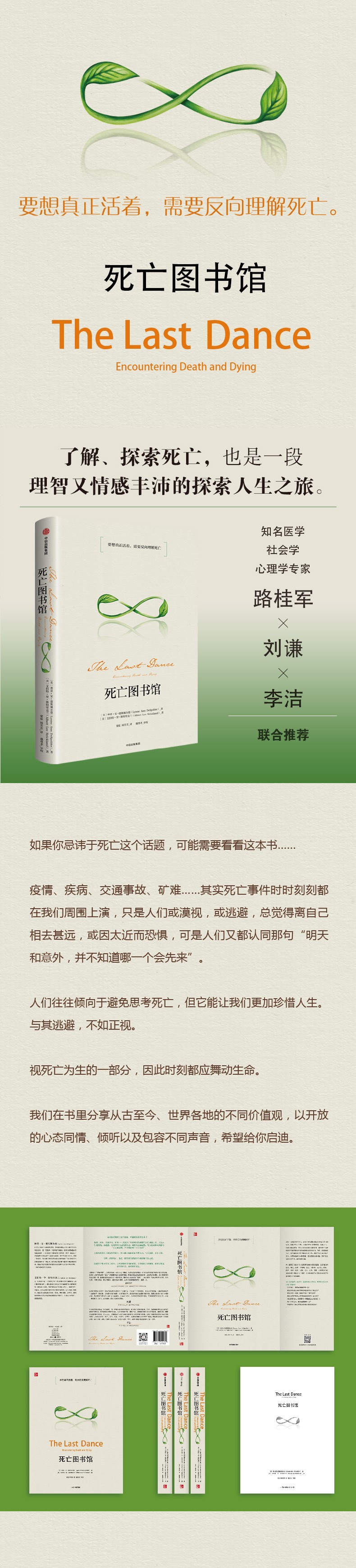 这是一本死亡百科全书,它有几乎你想知道的关于死亡的一切知识。是至今为止完整、全面论述死亡的教科书,没有之一。但我们把它作为一本关于生与死的人生科普书,因为每个人都需要在生命的旅程中或早或晚地读懂这本书。当然,你越早读完它,越早地获益于你的人生之旅。我们在这里分享从古至今、世界各地的不同价值观,以开放的心态同情、倾听以及包容不同声音,希望给你启迪。