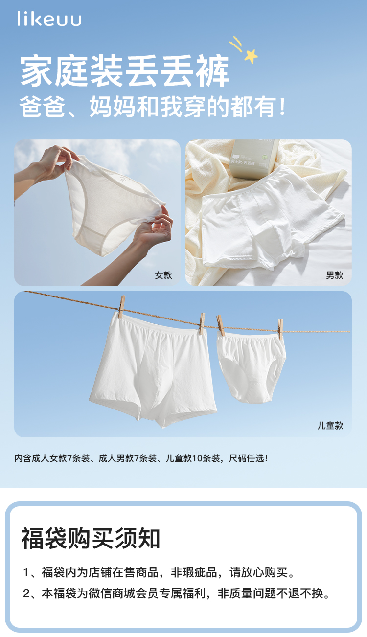 likeuu是专注于为6~15岁的青少年创造柔软、无束缚的成长体验,以好奇心为灵感的成长发育期贴身衣物品牌。likeuu的产品覆盖内衣、内裤、保暖衣、家居服、运动等品类。